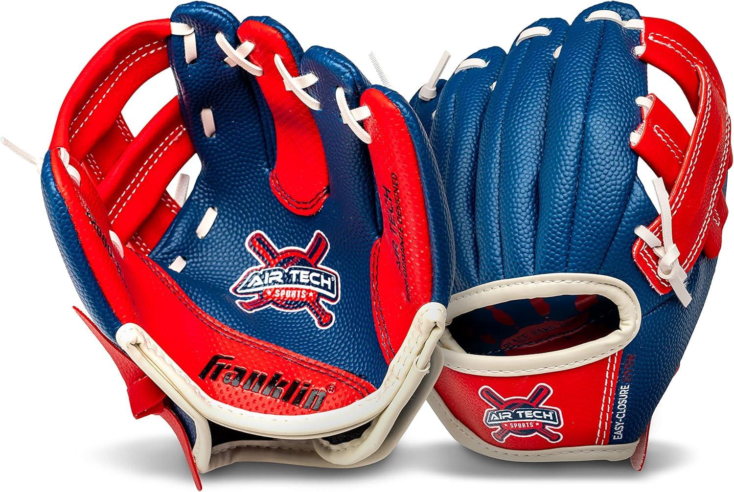 Franklin Sports Air Tech Baseball Glove with Ball – Tee Ball – Soft Air Tech Foam(Navy/Red)
