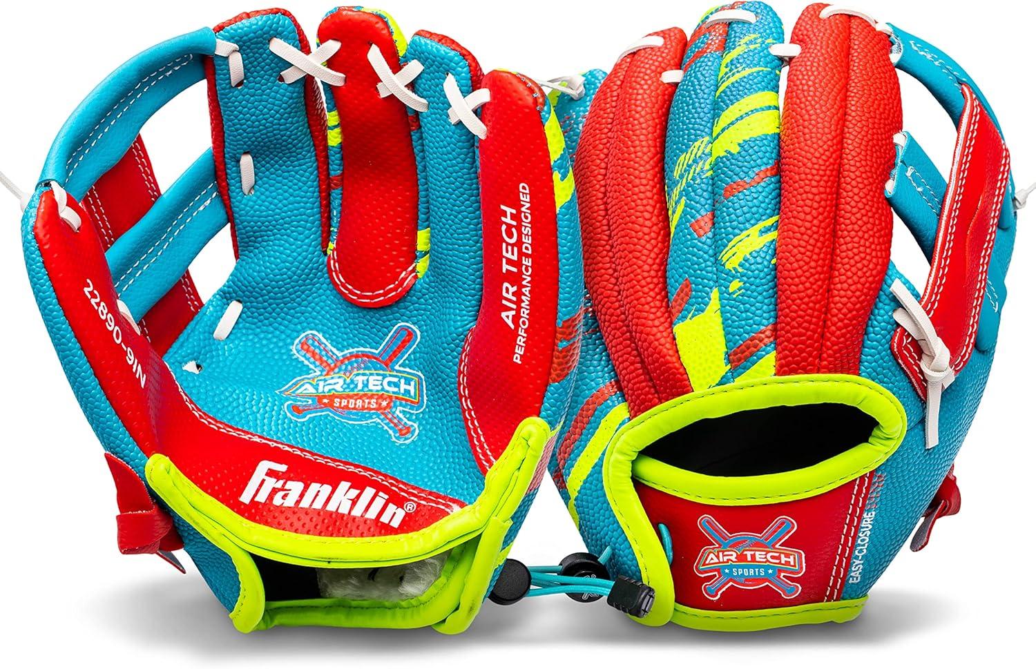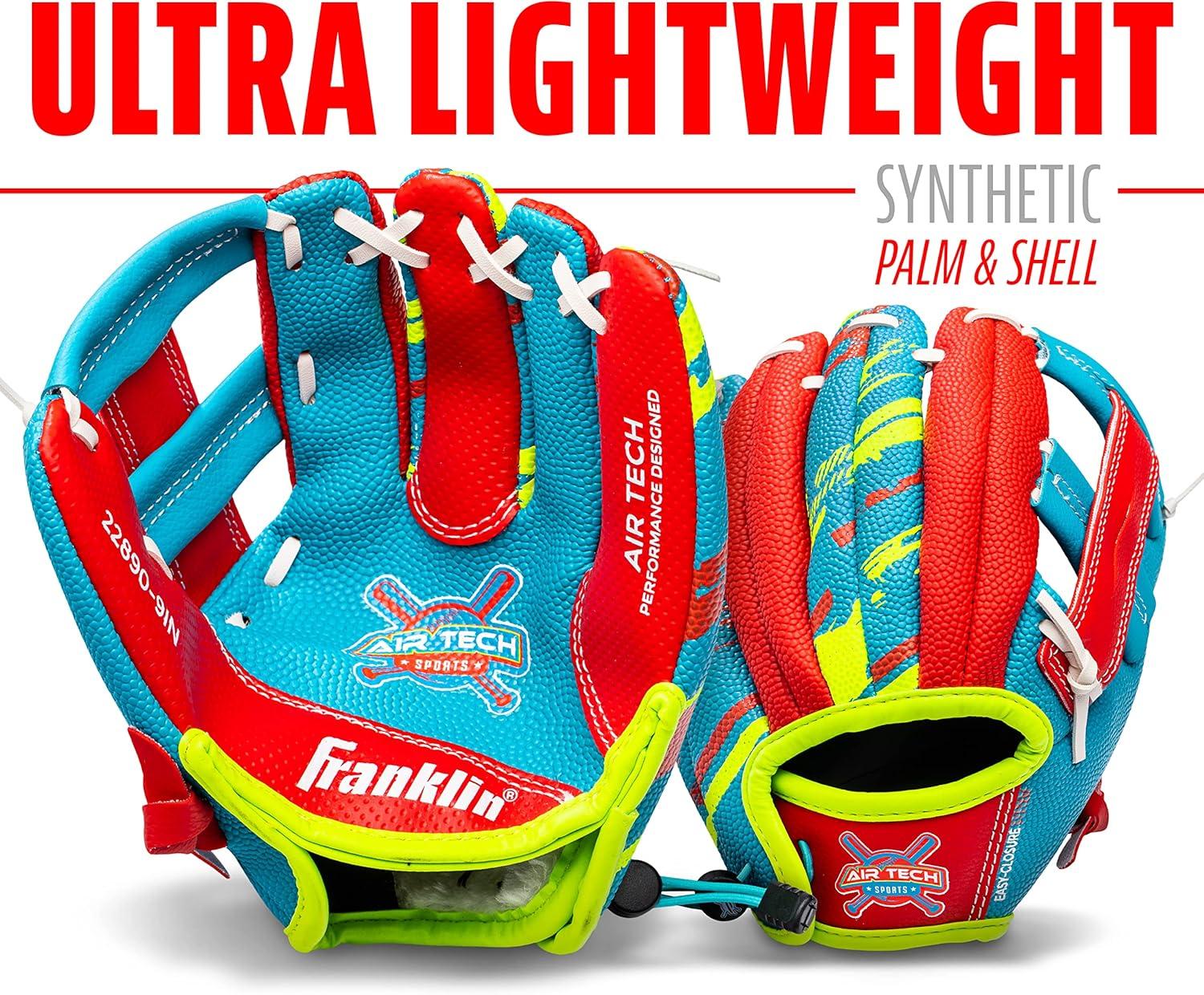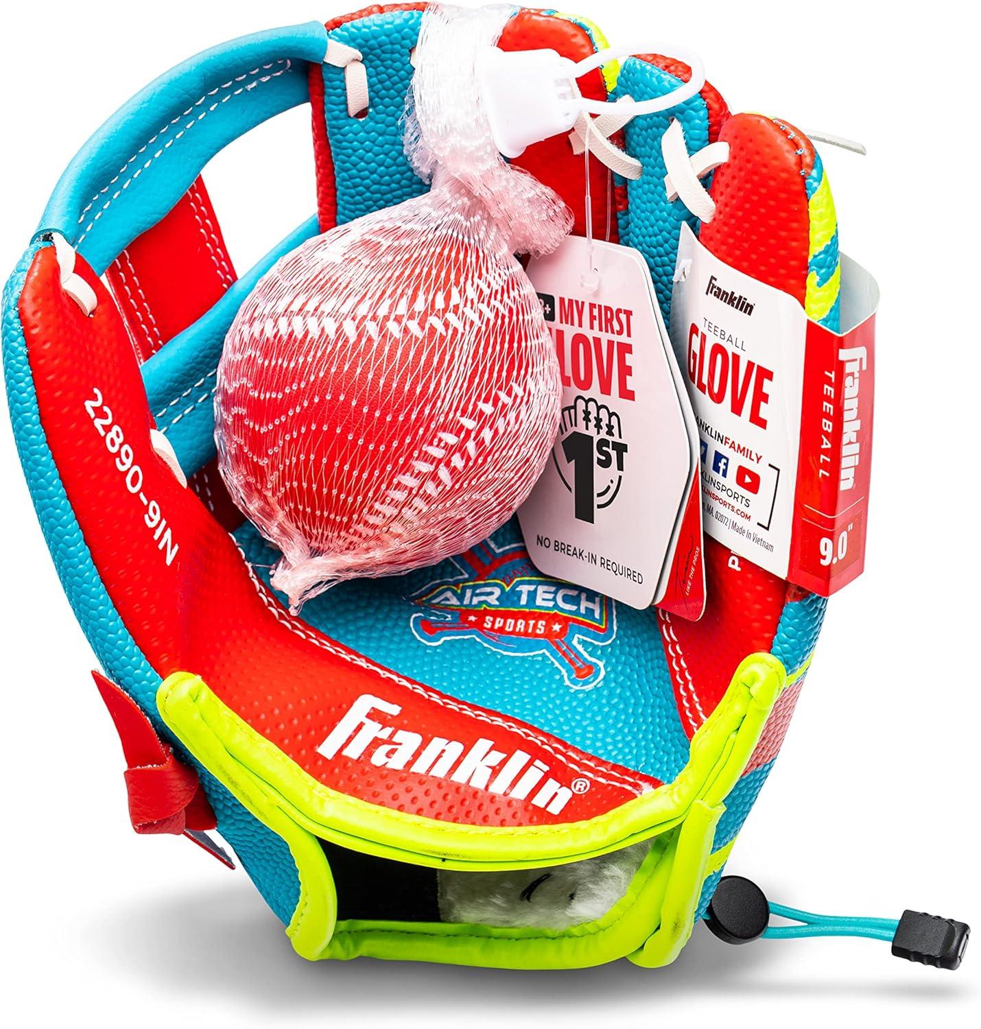 Franklin Sports Air Tech Baseball Glove with Ball – Tee Ball – Soft Air Tech Foam(Royal/Red)