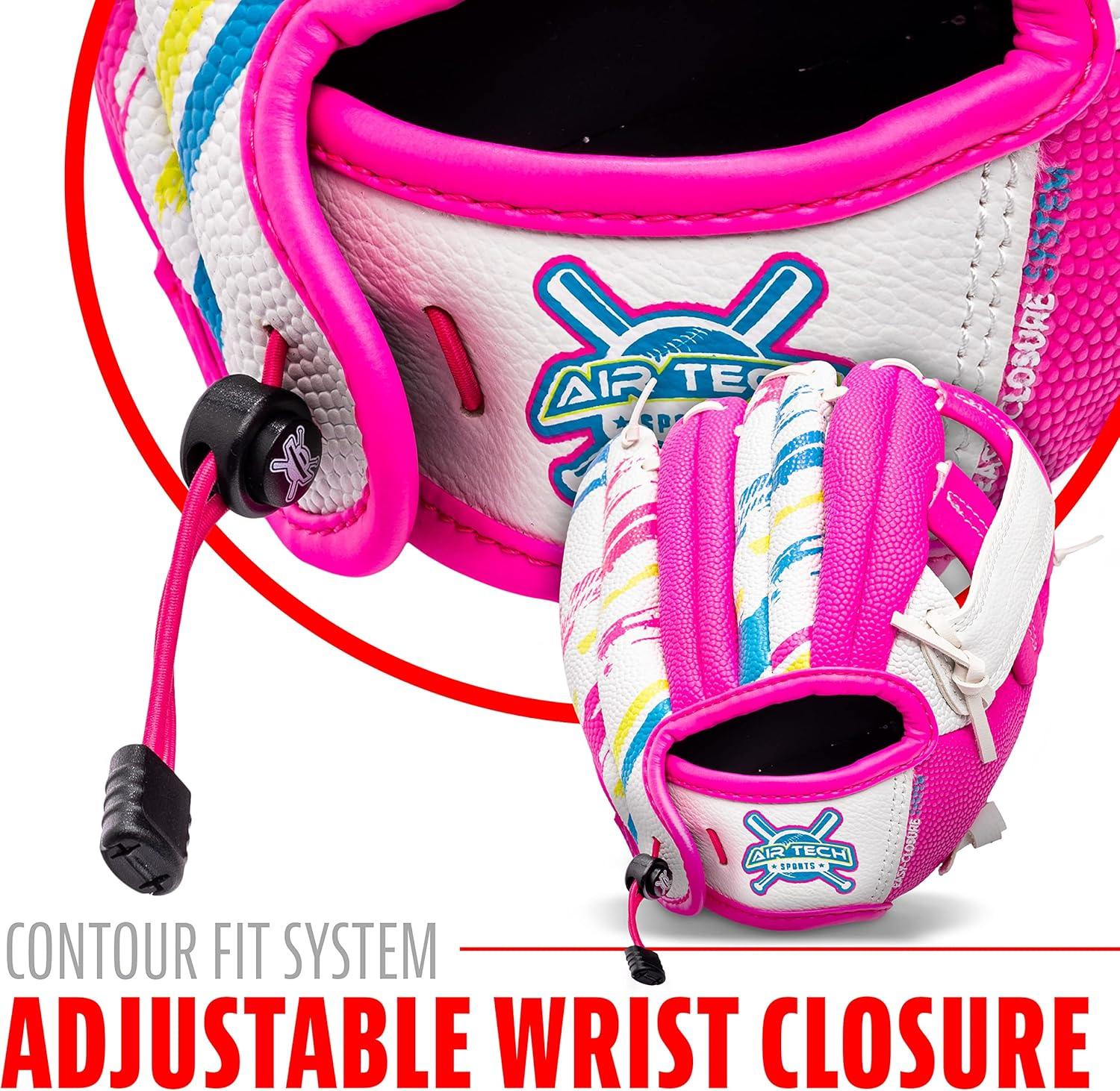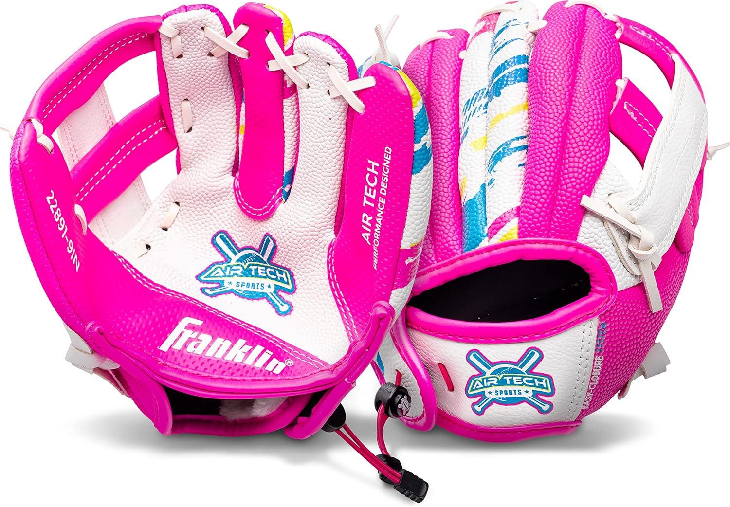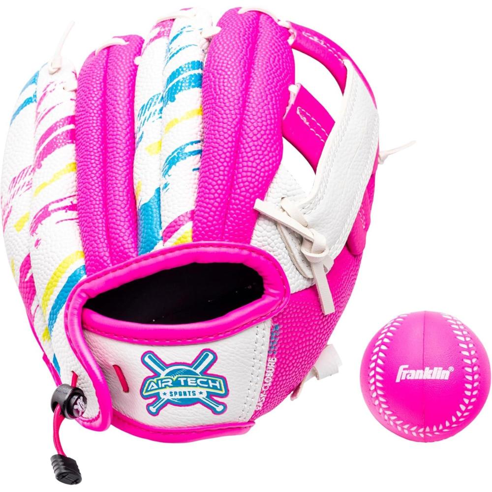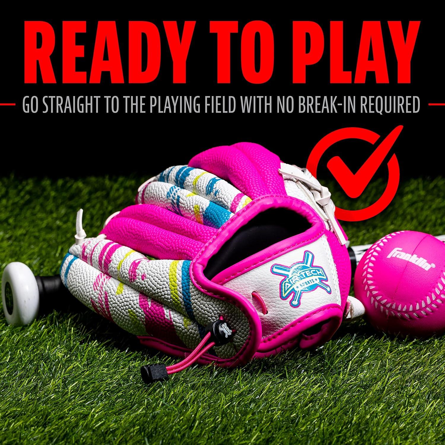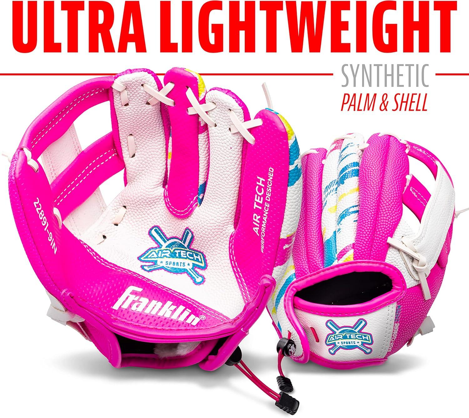 Franklin Sports Air Tech Baseball Glove with Ball – Tee Ball – Soft Air Tech Foam(White/Pink)