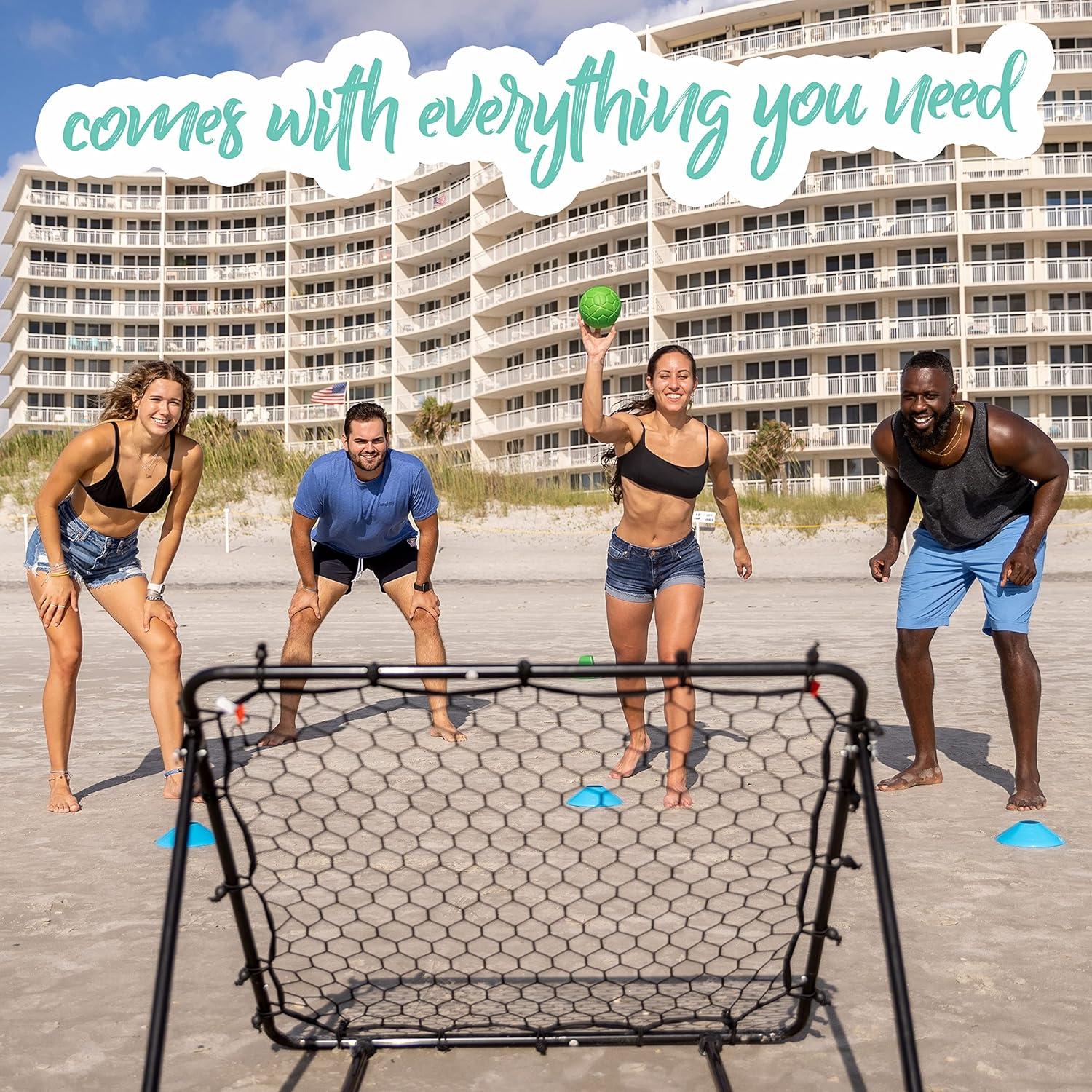 FUN OUTDOOR GAME: Backlash is an all new, super-fun outdoor game that is designed to bring some active fun to any get together! HOW TO PLAY: This game is played in teams of 2 or 3 where one team serves and one team defends. The serving team serves the ball off of the target net and into the boundary zone. If it bounces in the zone, they score a point. If the defense intercepts, they get a chance to serve. Only the serving team can score a point, and the first team to 21 points wins! FULL SET: This game set comes with everything you need to play: (1) target net, (1) mini ball, boundary cones, and a portable carry bag PORTABLE: This portable game set comes with a convenient carry bag included so you can take the game to the backyard, the beach, the tailgate or anywhere the fun takes you! OUTDOOR FUN: This all-new outdoor lawn game is a great way to get your friends together for some active outdoor fun and create memories that last a lifetime!