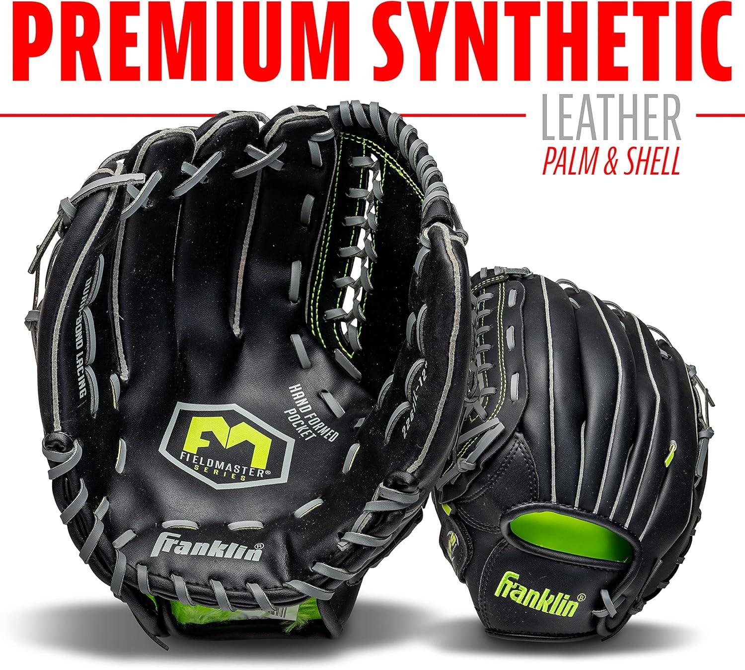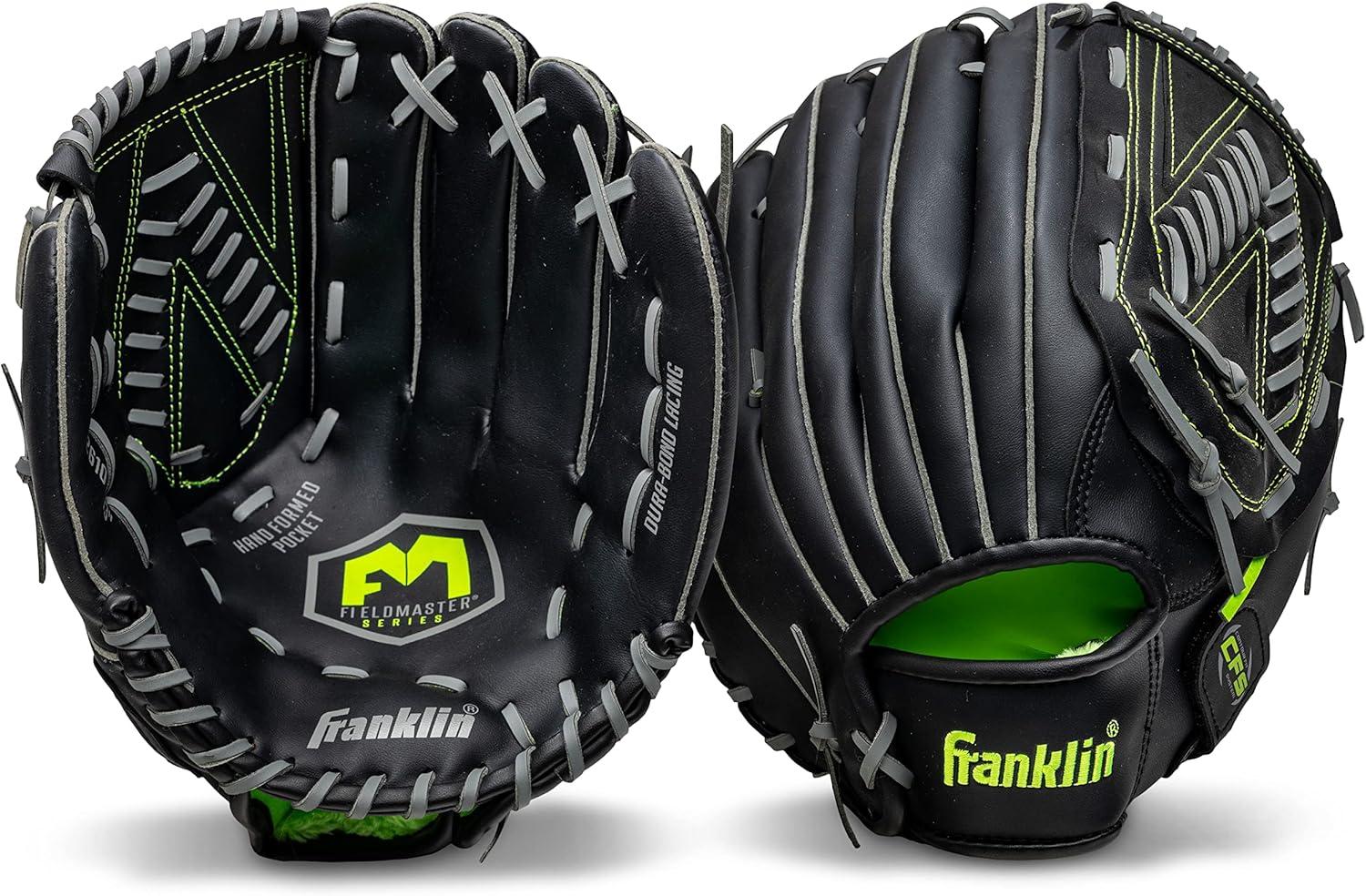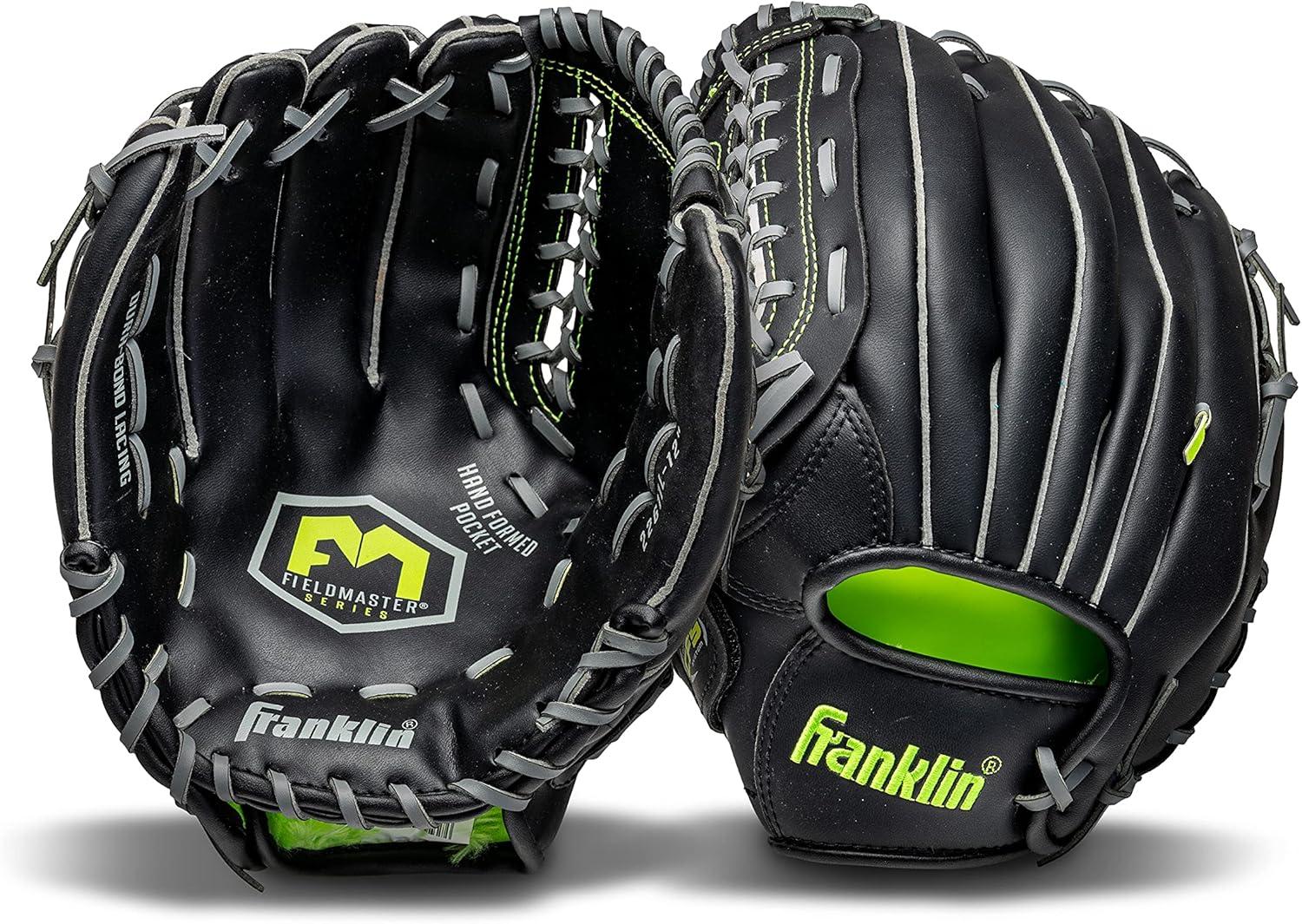 Franklin Sports Baseball and Softball Glove – Fieldmaster Adult + Youth Baseball Gloves – Men’s + Women’s Infield + Outfield Mitt(Black)