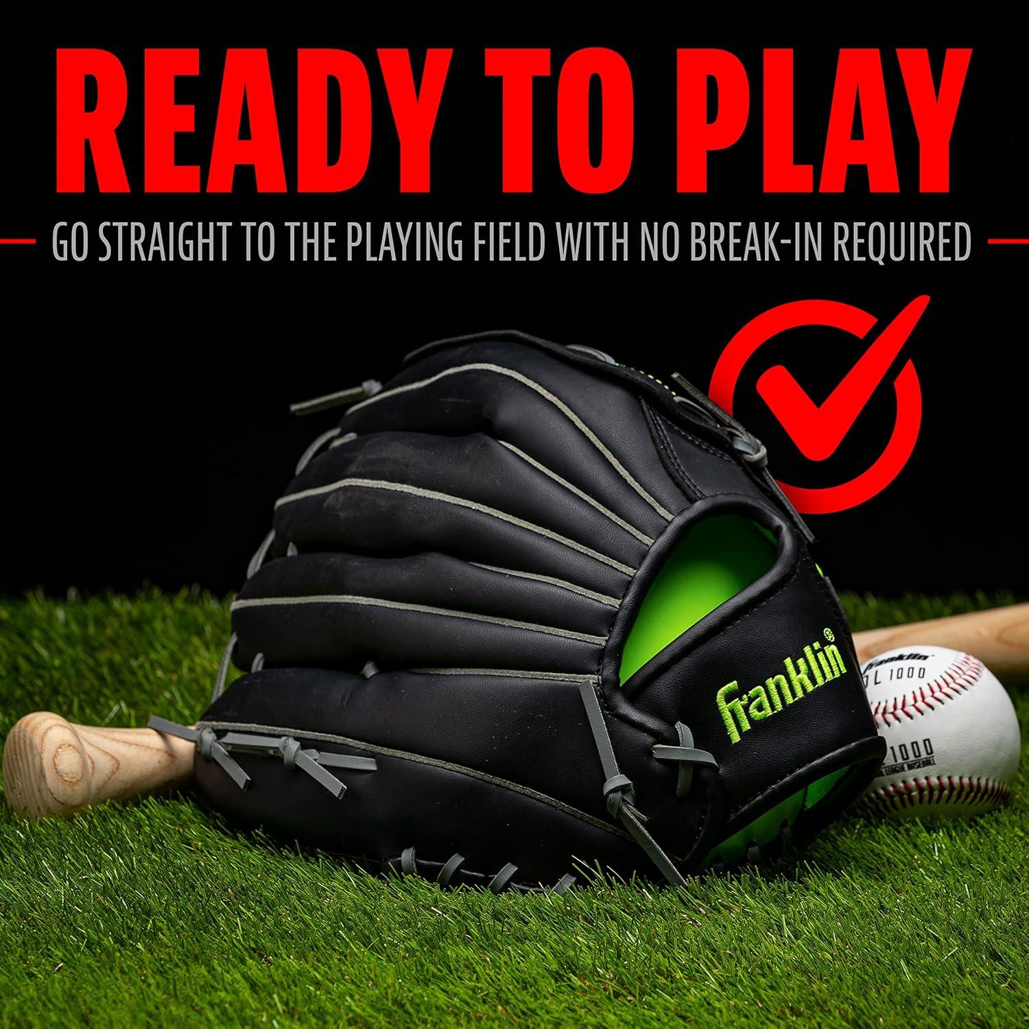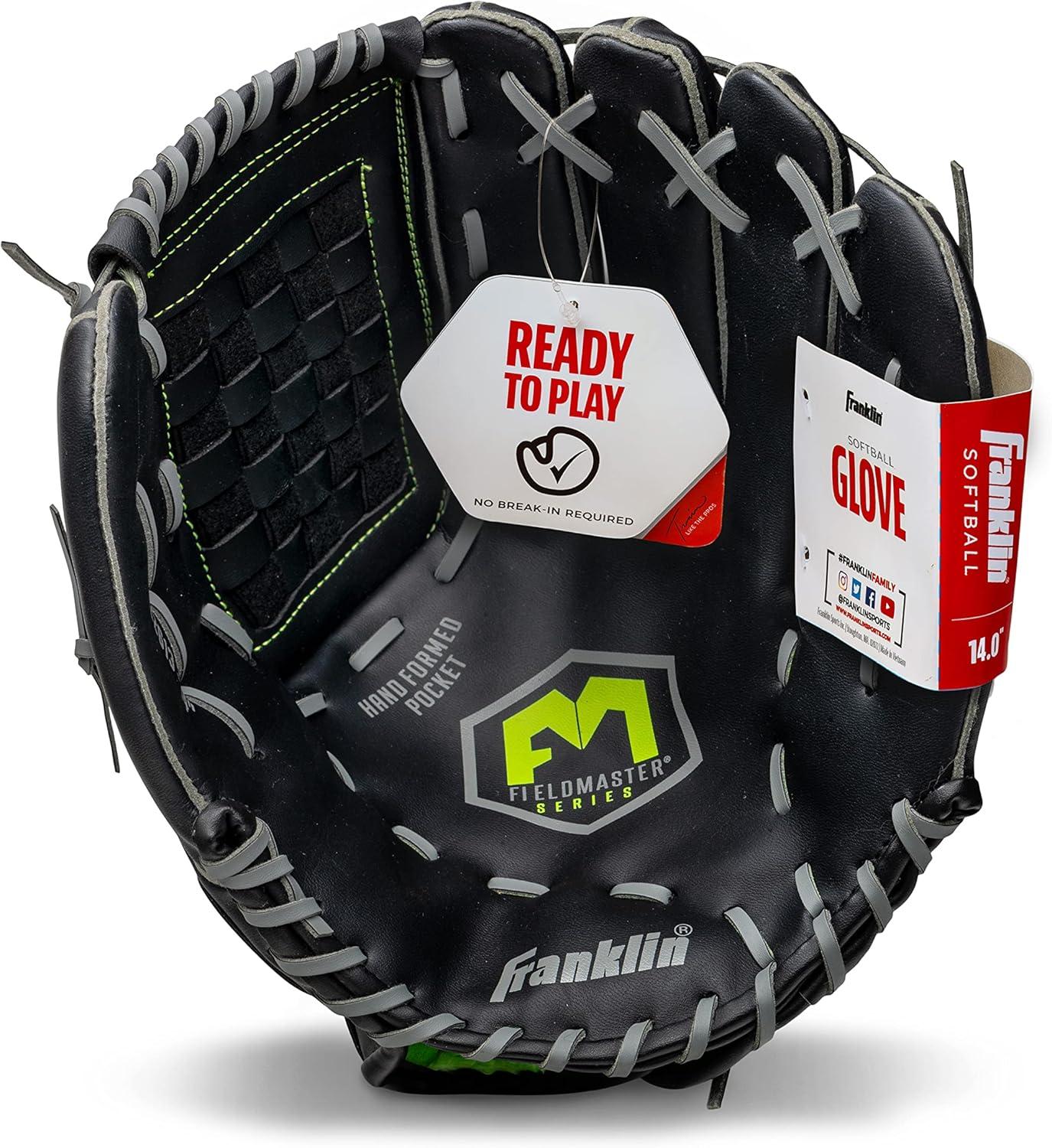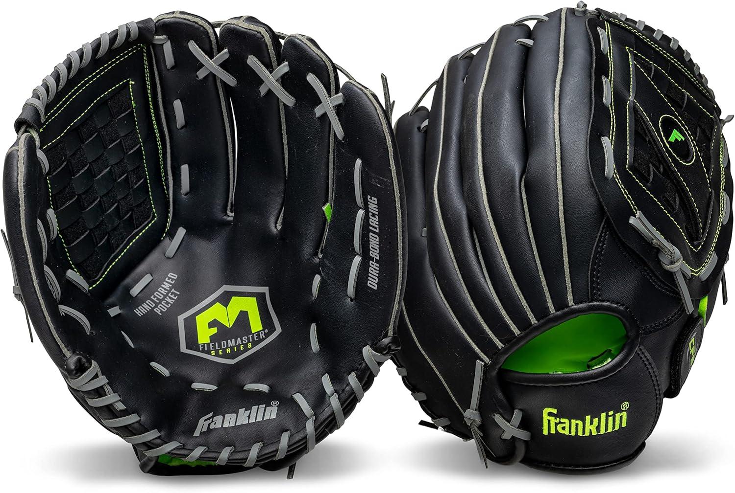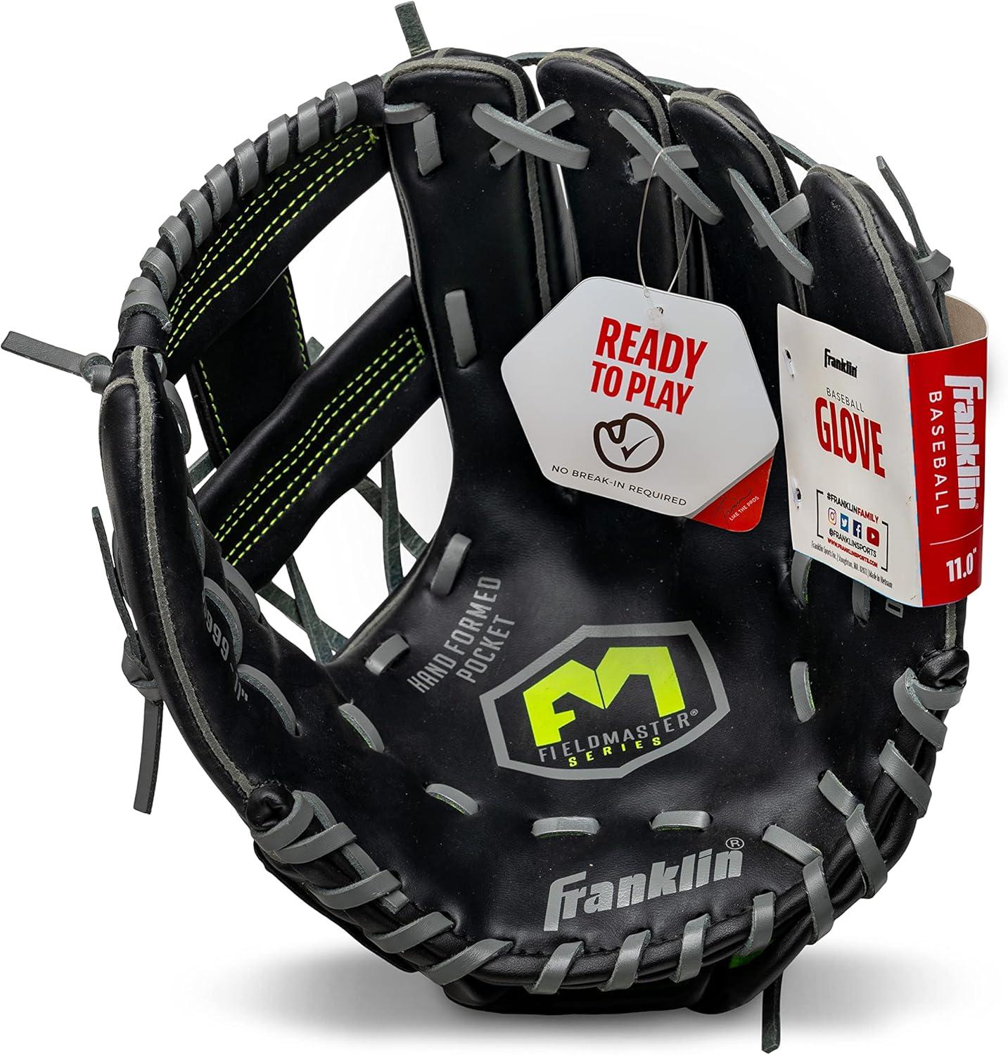 Franklin Sports Baseball and Softball Glove – Fieldmaster Adult + Youth Baseball Gloves – Men’s + Women’s Infield + Outfield Mitt(Black)