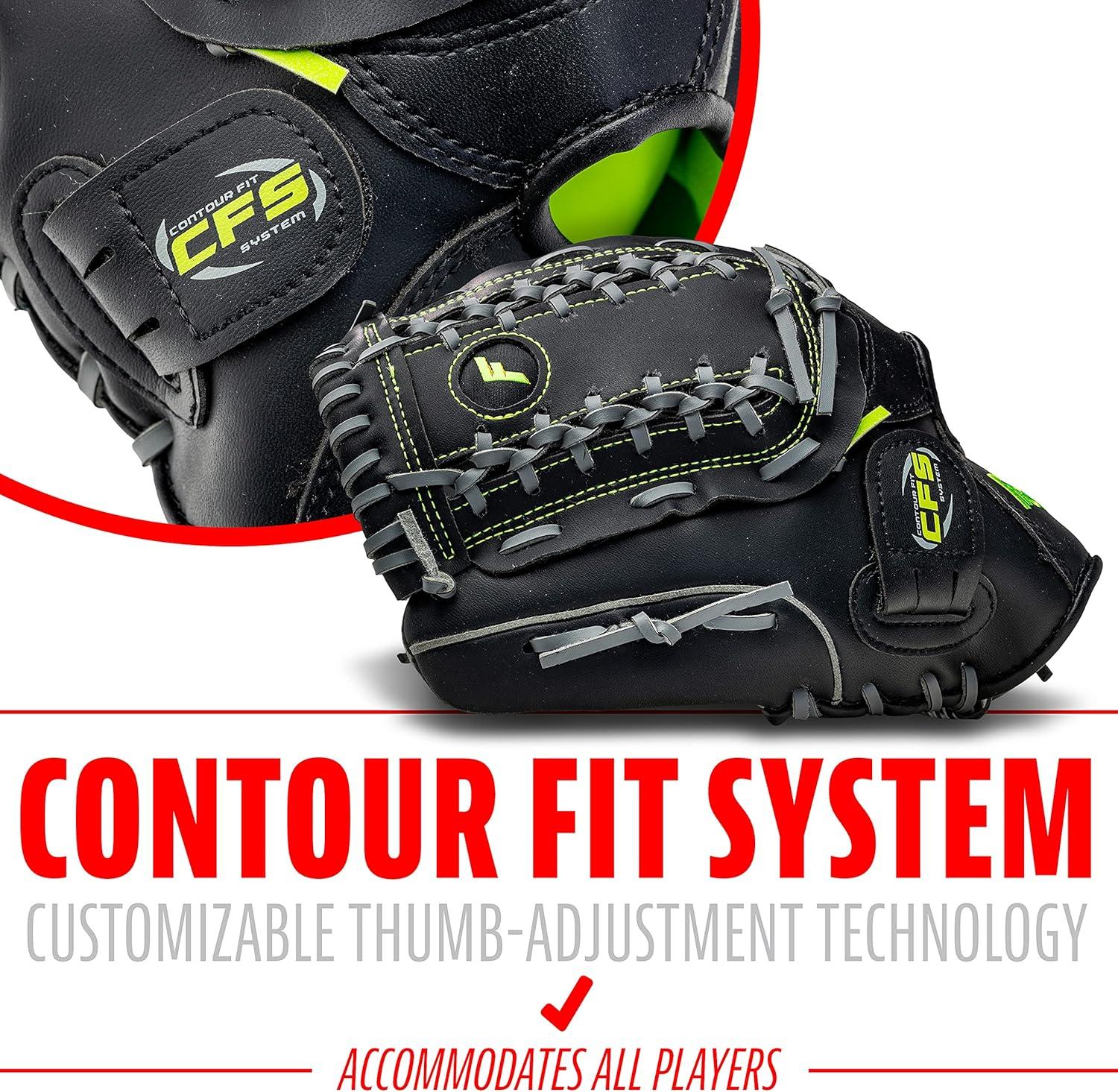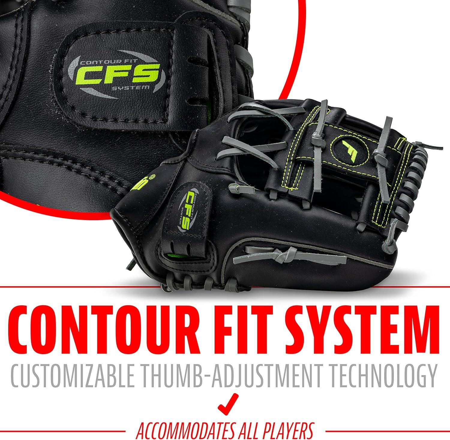 CONTOUR FIT SYSTEM: Customizable thumb-adjustment technology engineered to expand or tighten to help achieve the perfect snug fit to accommodate all players