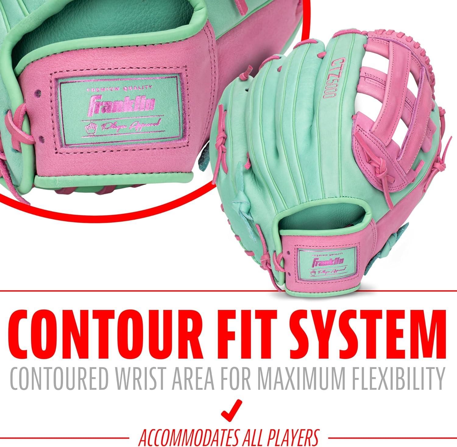 Franklin Sports Baseball Fielding Glove – Men’s Adult and Youth Baseball Glove – CTZ5000 Cowhide Infield and Outfield Baseball Gloves(Mint/Pink)