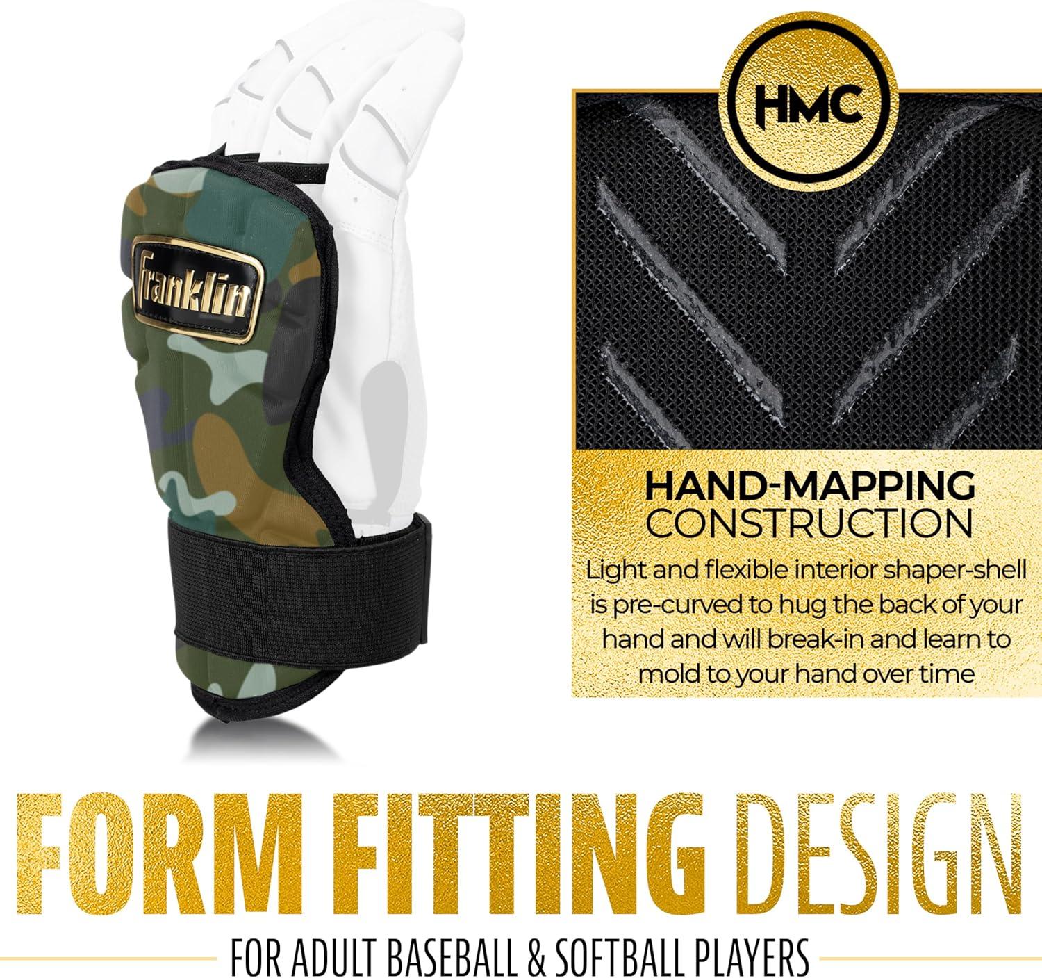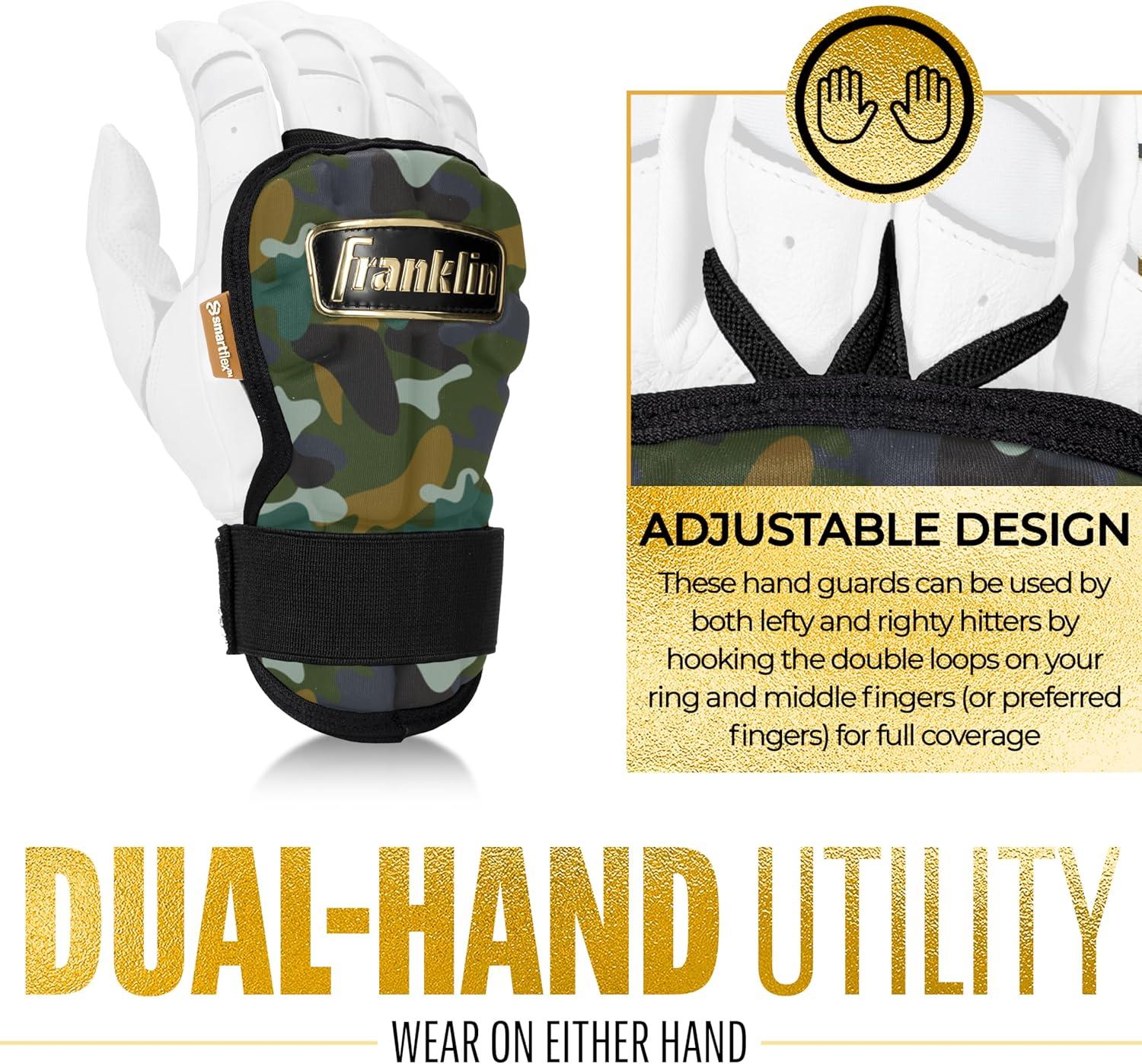 Franklin Sports Baseball Hand and Wrist Guard – PRT LG Series Adult Protector for Batting – Protective Shield for Right and Left Hand Hitters – One Size – Adult(Camo/Gold)