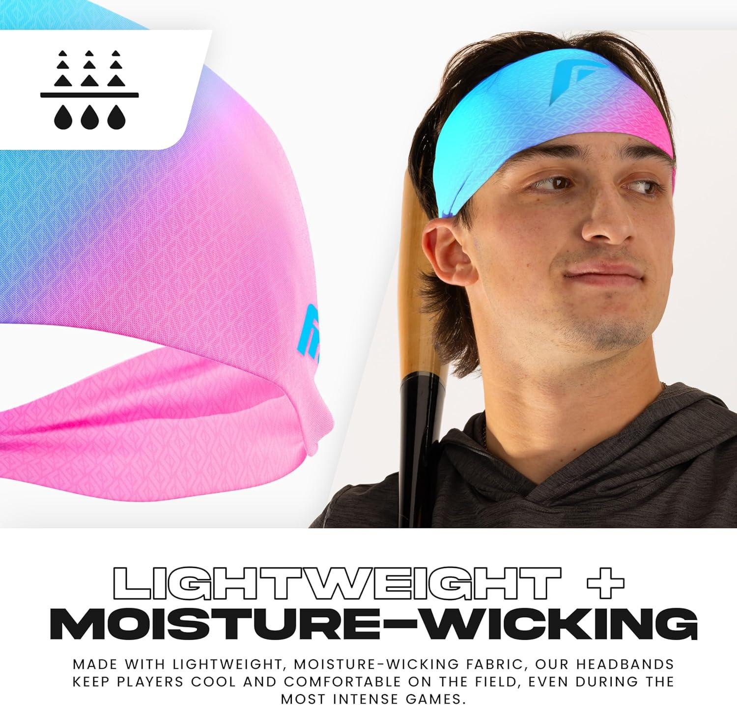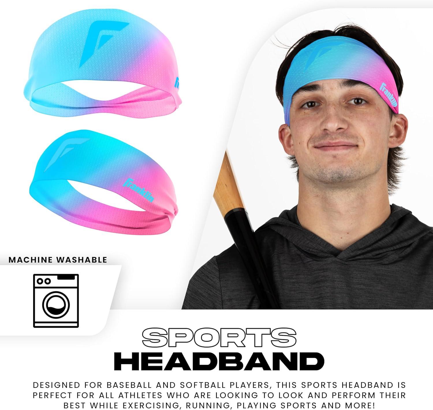 Franklin Sports Baseball + Softball Headband – Workout + Athletic Headbands for Men + Women – Sweat Wicking for Running + Exercise – One Size Fits Most(Cotton Candy)