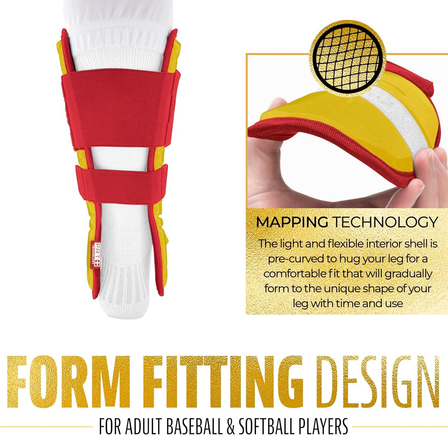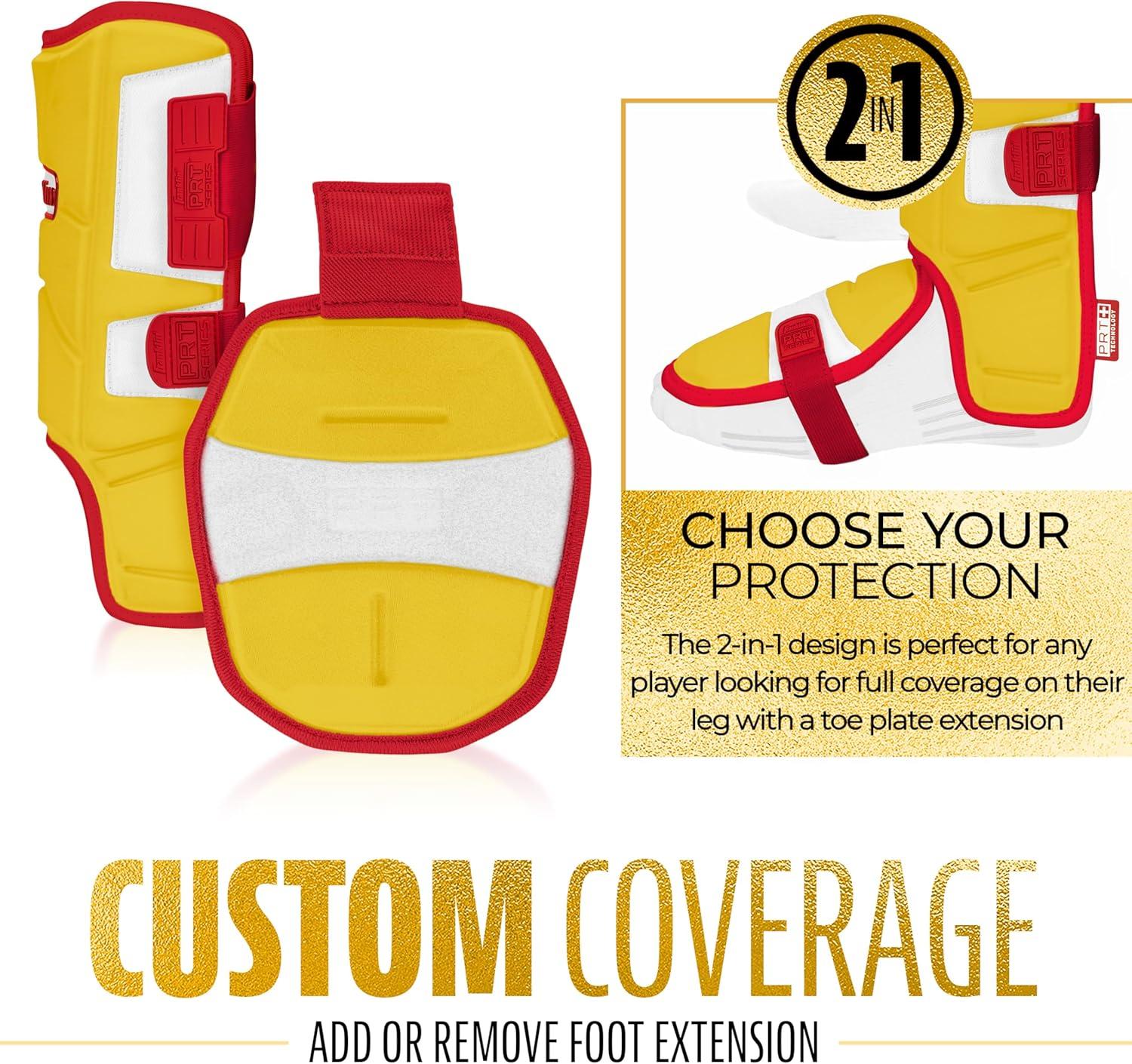 Franklin Sports Baseball + Softball Leg Guard – PRT Series Adult and Youth Shin + Foot Shield for Batting – Protective – One Size(Yellow/Red)