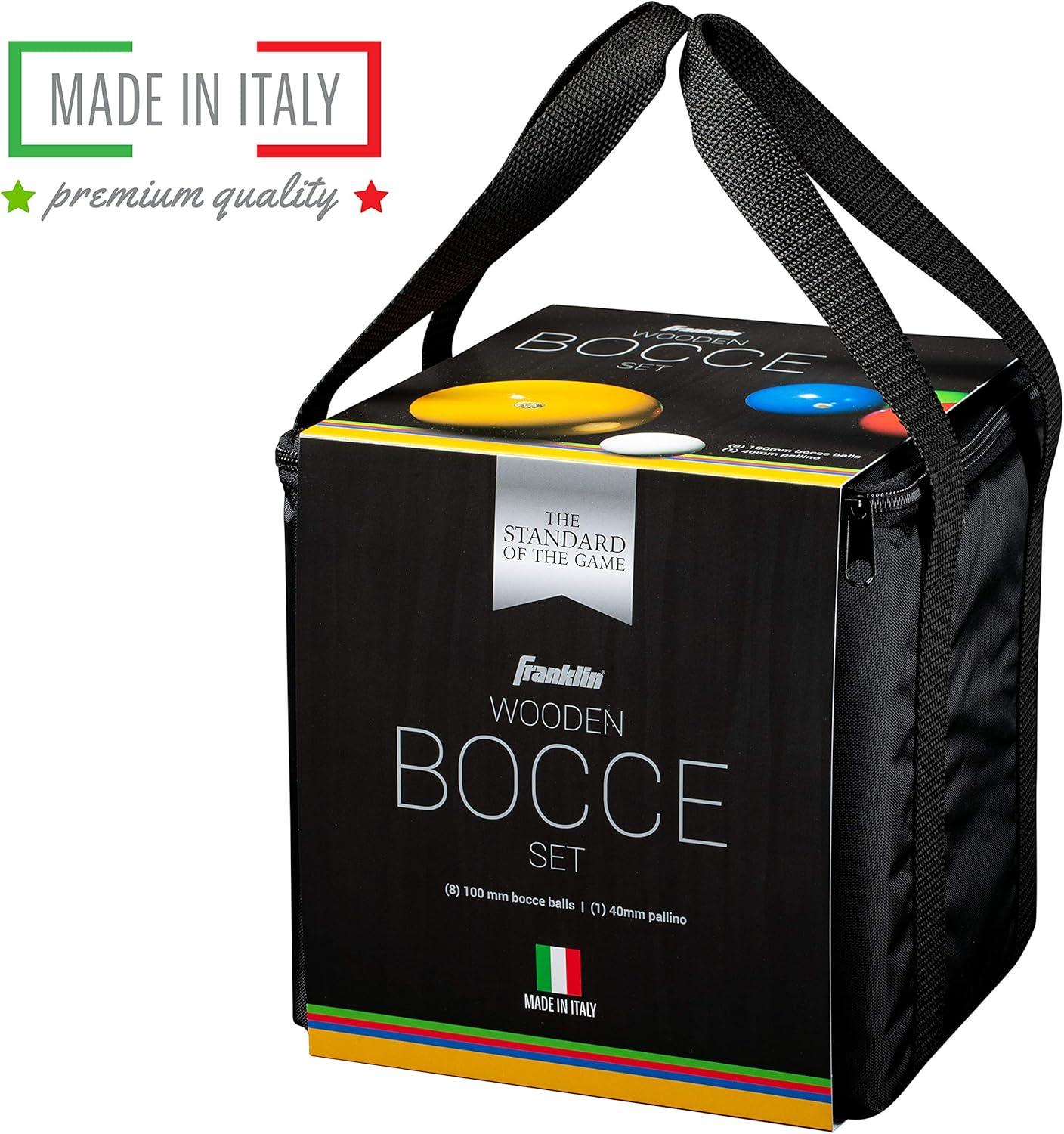 Franklin Sports Bocce Ball Set — 8 Wooden Bocce Balls and 1 Pallino — Beach, Backyard Lawn or Outdoor Party Game – Made in Italy(100mm)