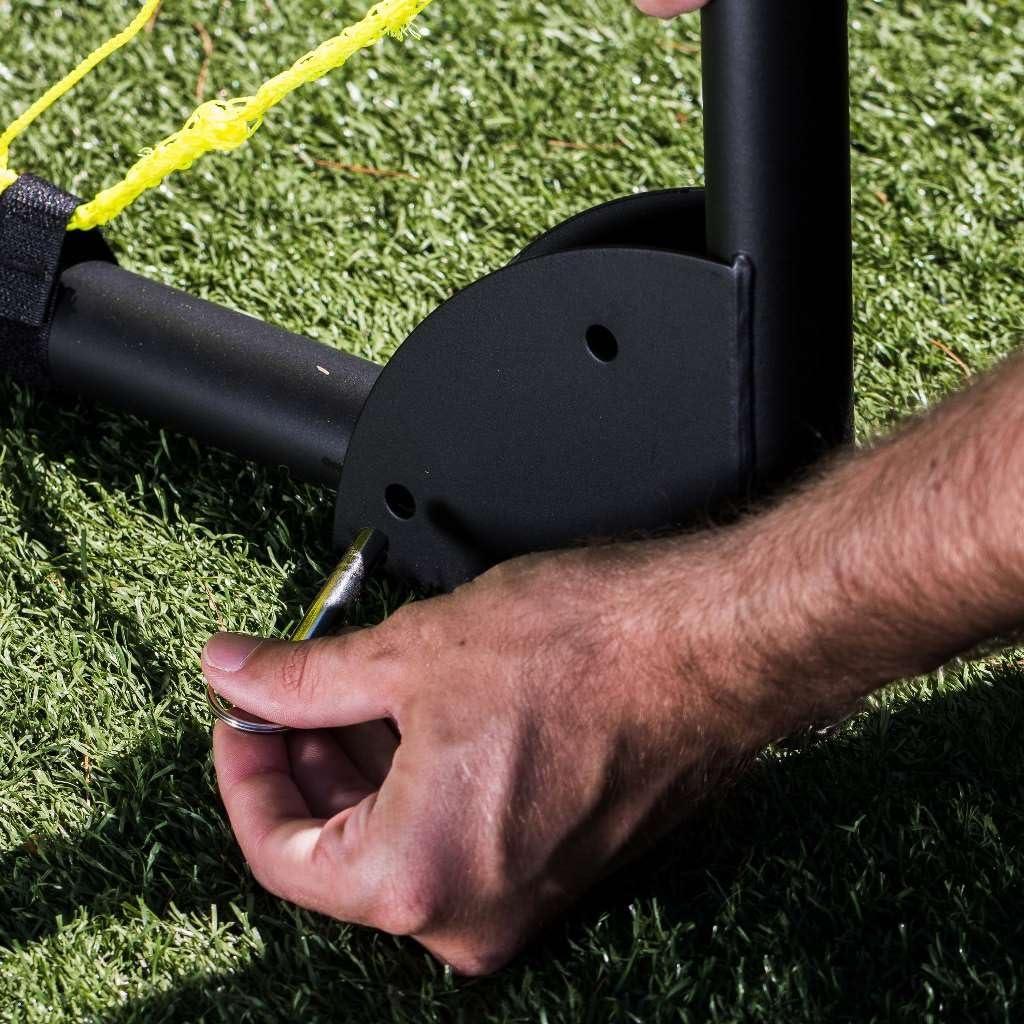 EASY ASSEMBLY: The precision fit poles snap together to build the frame in no time, then simply attach the net with self-stick straps to get the game going!
