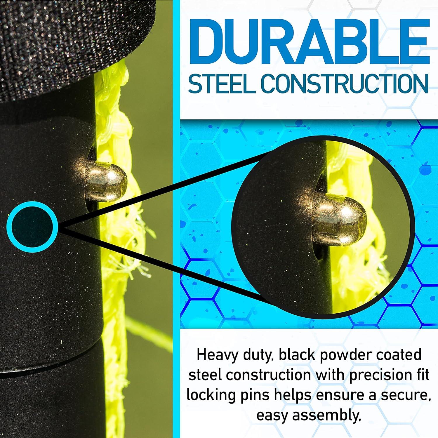 DURABLE CONSTRUCTION: These goals are built with galvanized steel posts, an all-weather nylon net, and include (4) metal ground stakes for premium, reliable performance season after season
