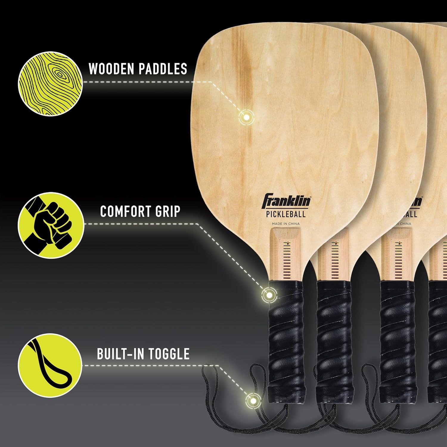 Franklin Sports Complete Half Court Size Pickleball Net Set – Includes 10ft Net, (2) Paddles, and (2) X-40 USA Pickleball Approved Balls(4 Paddle & 6 Ball Set)