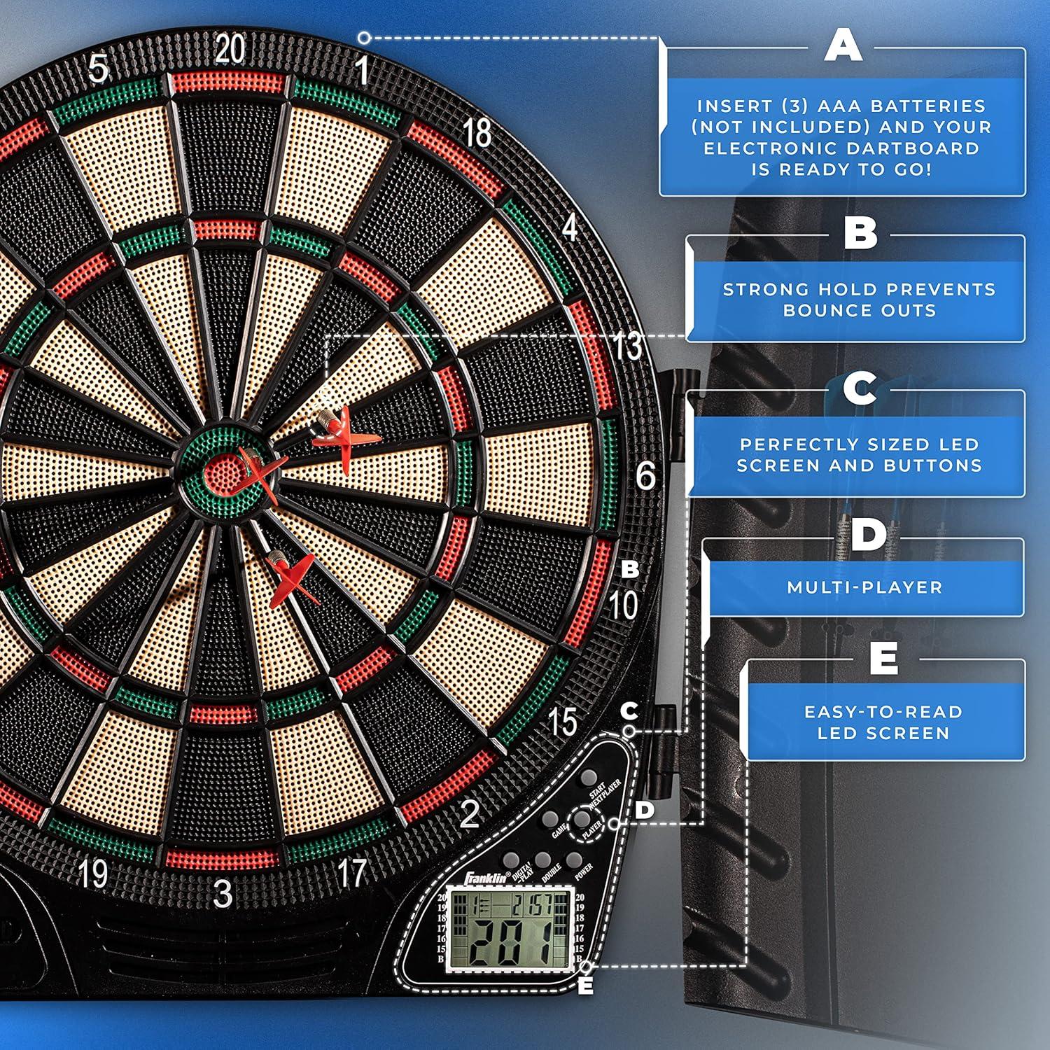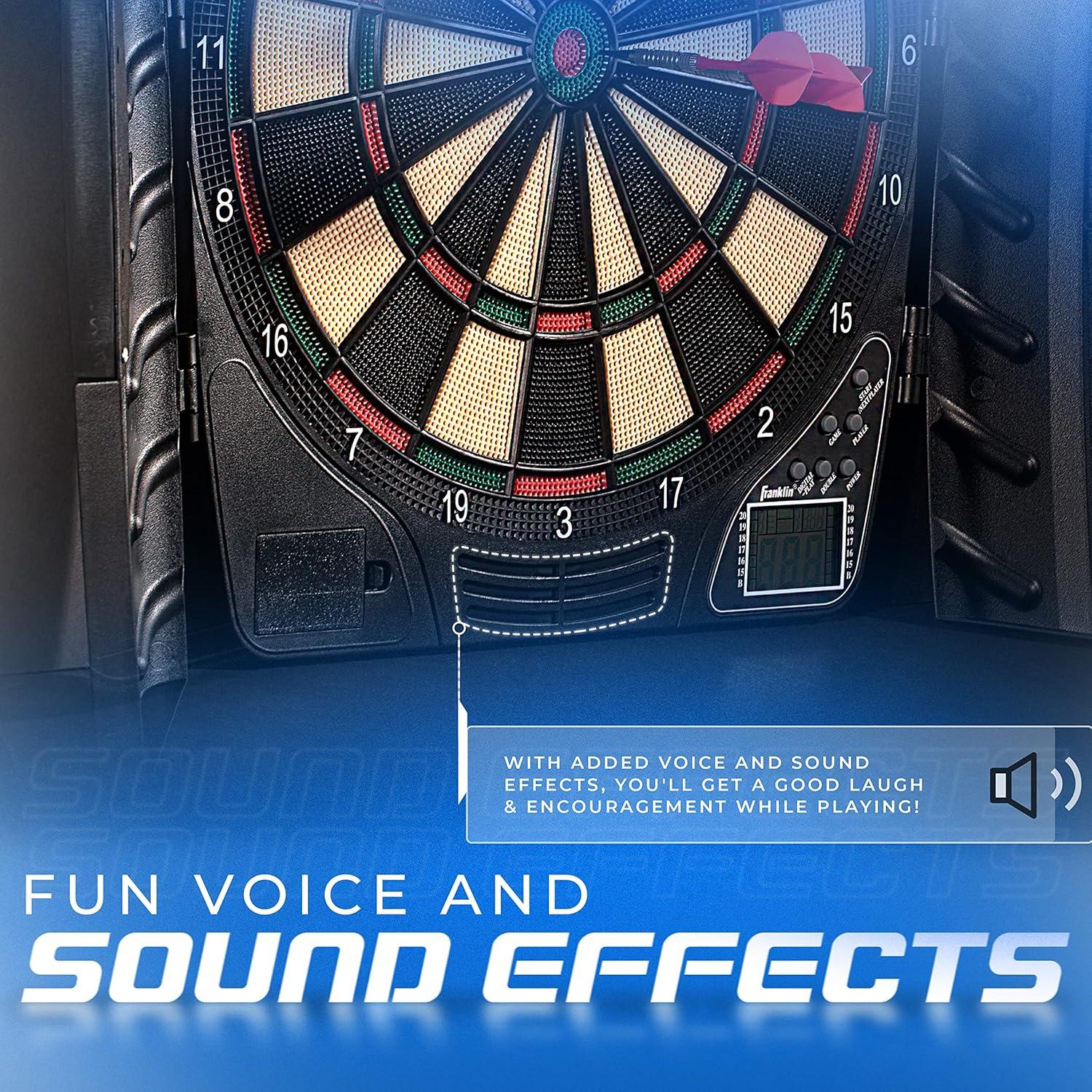 Franklin Sports Electronic Dart Board Sets – Soft Tip Electric Dartboard with Digital Scoreboard – (6) Darts Included(Dartboard w/ Cabinet)