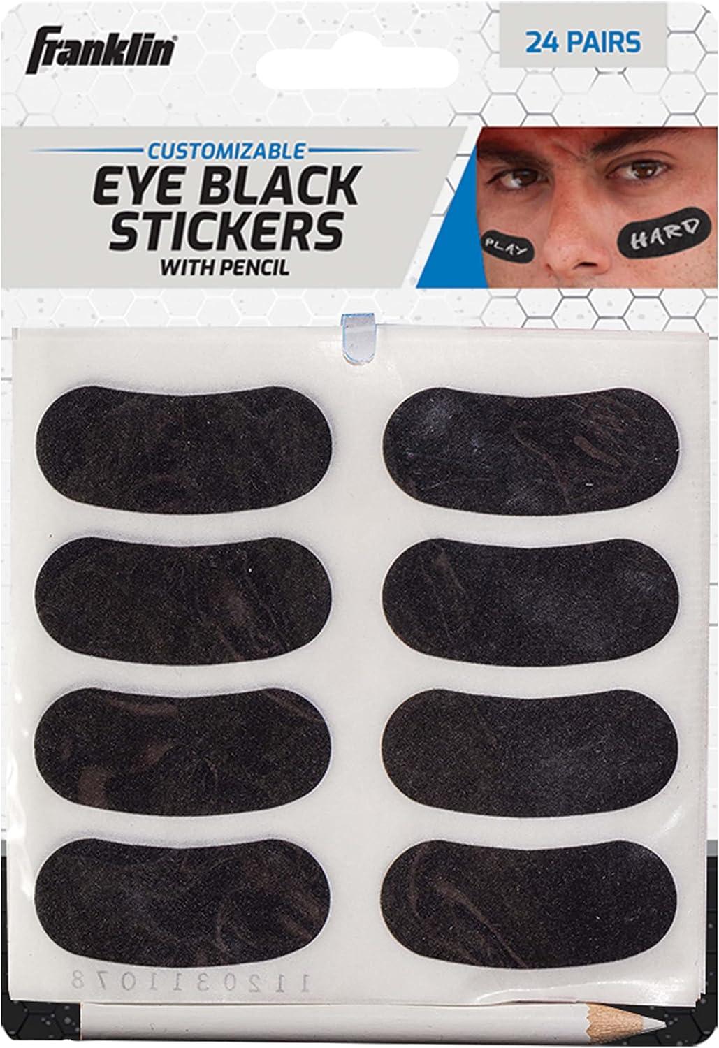 Franklin Sports Eye Black Stickers for Kids – Customizable Lettering Baseball and Football Eye Black Stickers – White Pencil Included – Includes 24 Pairs(Black)