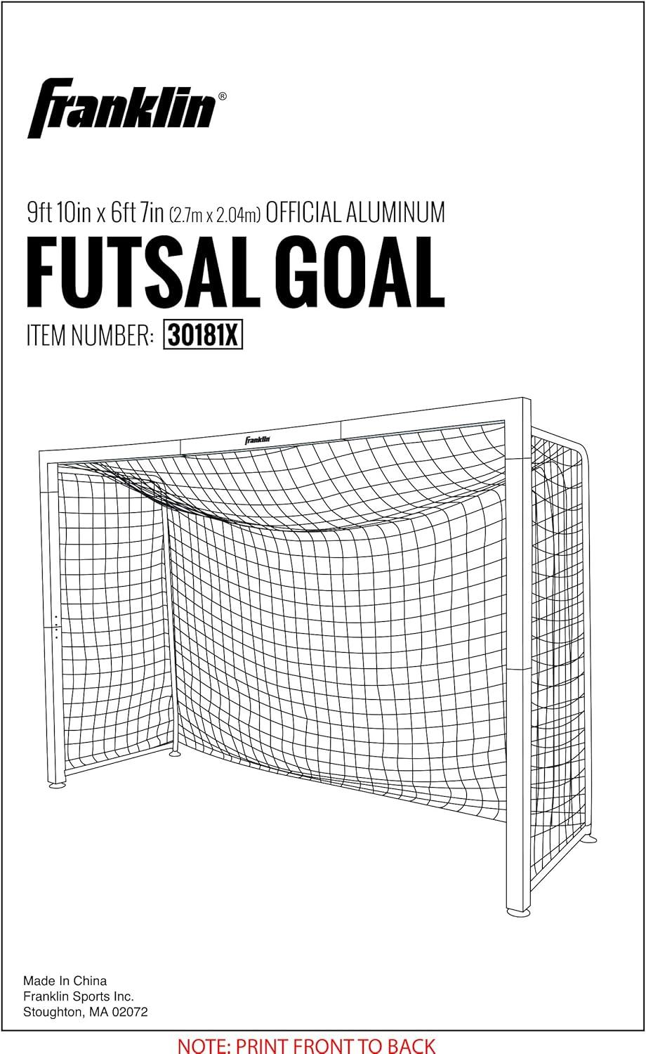 Franklin Sports Futsal Goal – Aluminum Official Size Goal – Indoor Soccer Net – Folding, Portable Futsal + Soccer Net – 9′ 10″ x 6’7″