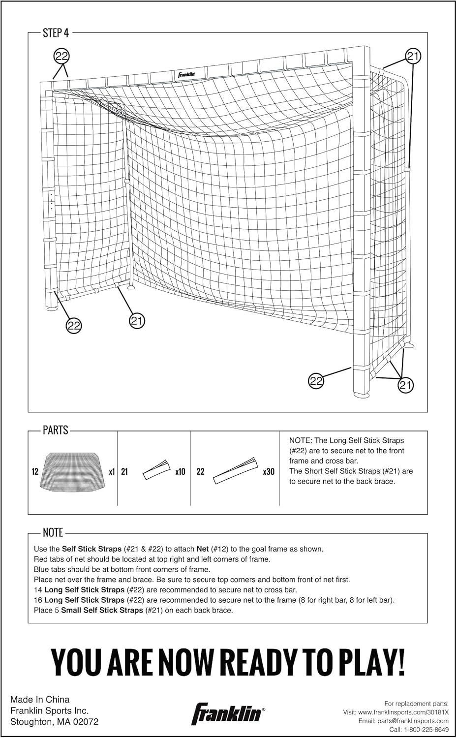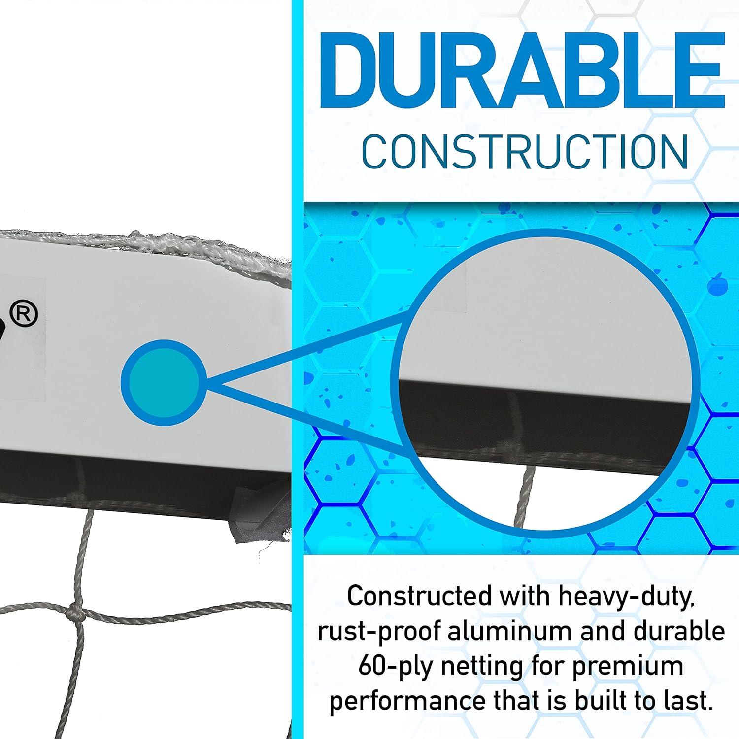 The Franklin Official Size Aluminum Futsal Goal 9’10” x 6'7″ offers a superior quality and convenient foldable design that makes this goal portable. With its all-aluminum 3” x 3” square front frame, this versatile indoor goal is one of the best Futsal goals available. A noteworthy feature of this goal is use of non-marking floor suction pads strategically located on each of the four contact points with the floor. Easy to screw in place, the use of these pads ensures that the goal will remain in place and will not mark up the surface when used indoors. This heavy duty 60 ply netting is easy to attaches using self-stick straps and will withstand the rigors of futsal.