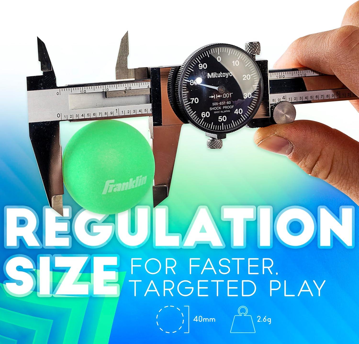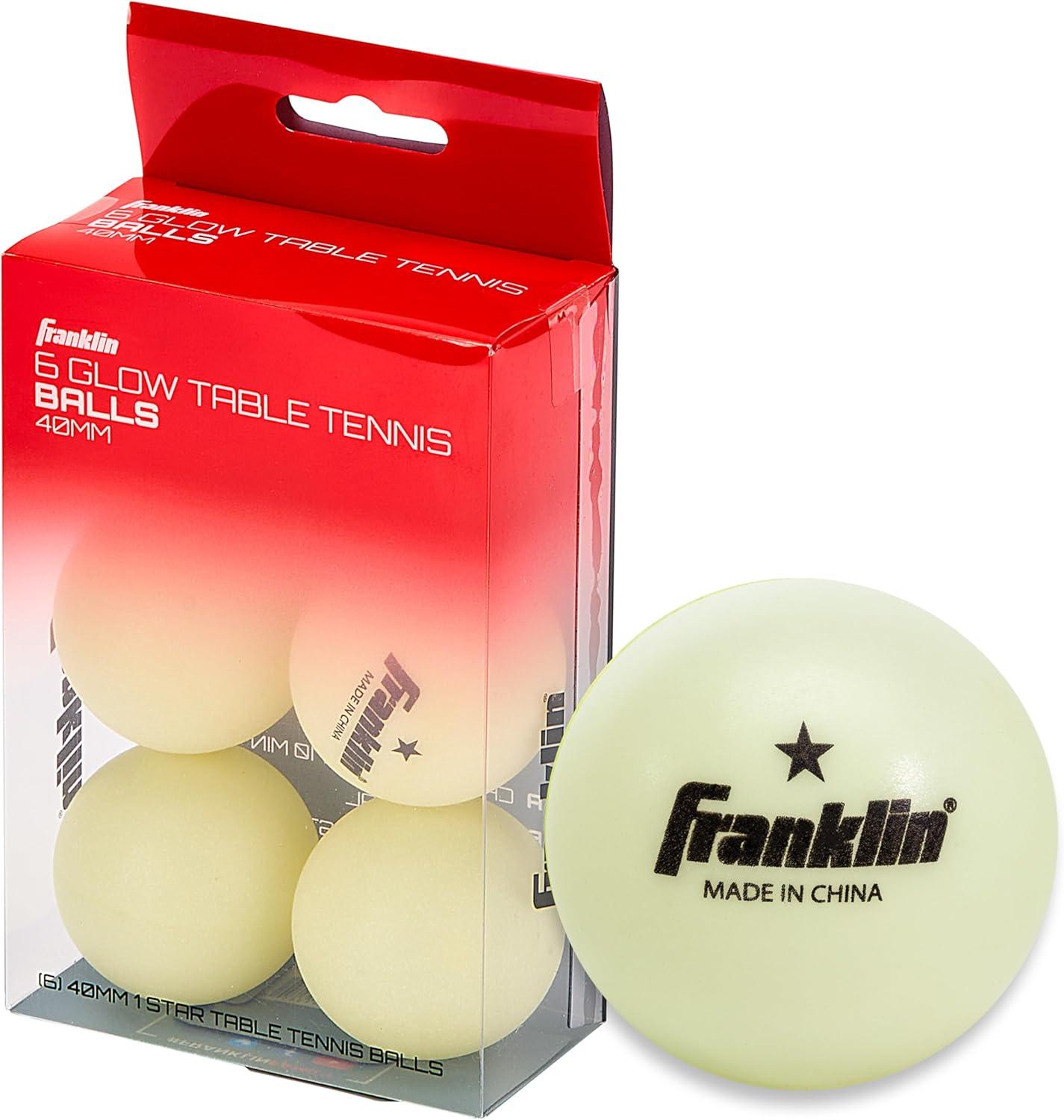 Franklin Sports Glow in The Dark Ping Pong Balls – Official Size + Weight 40mm Table Tennis Balls – One Star Glow in The Dark Ping Pong – Durable High Performance – Green – 6 Pack(40mm)