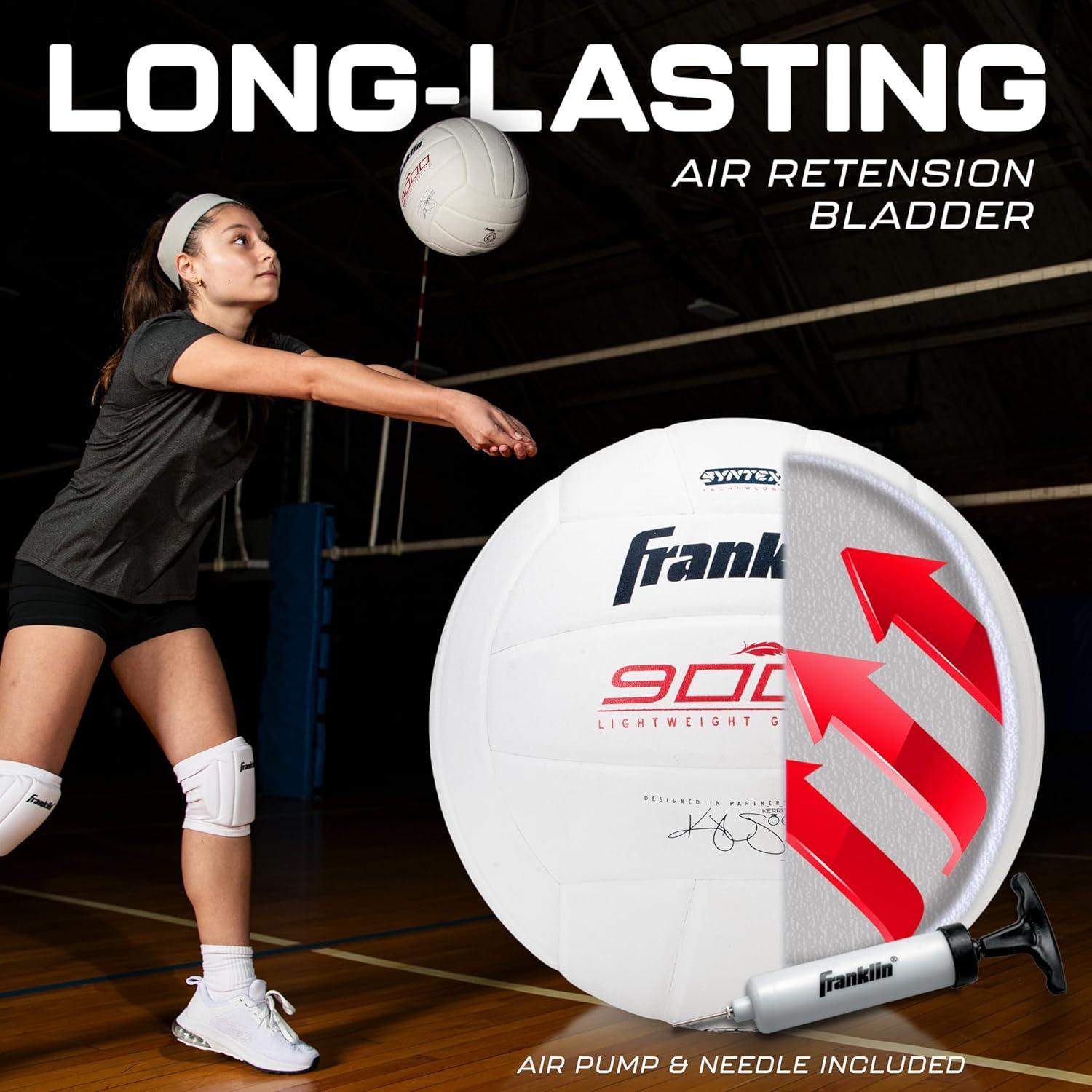 Franklin Sports Indoor Training + Match Volleyballs – Premium 9000 + 6000 Official Size Adult + Youth Volleyballs – Composite Cover Indoor Volleyballs for Games + Practices – Ball + Air Pump Included(Lightweight Volleyball)