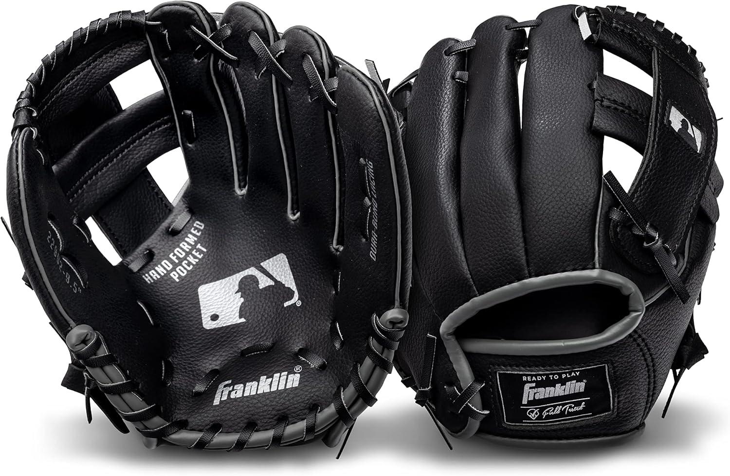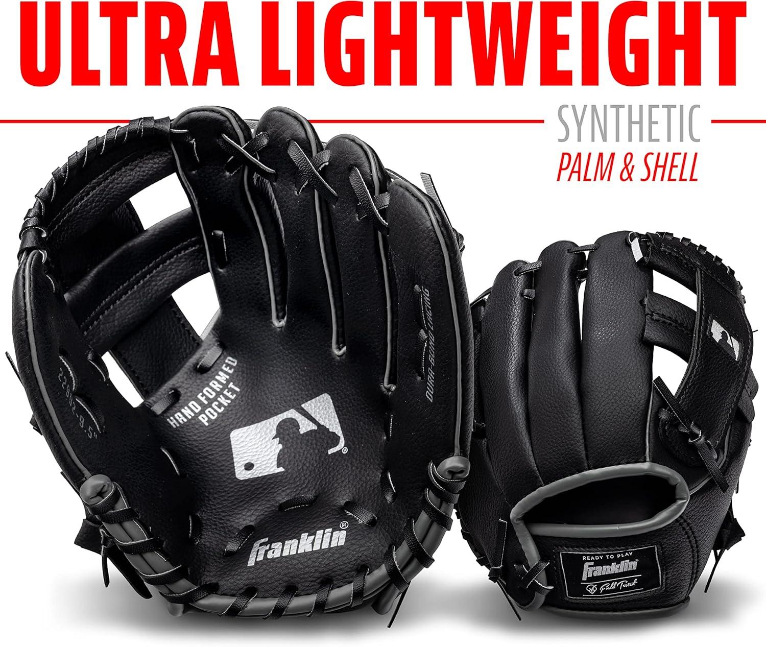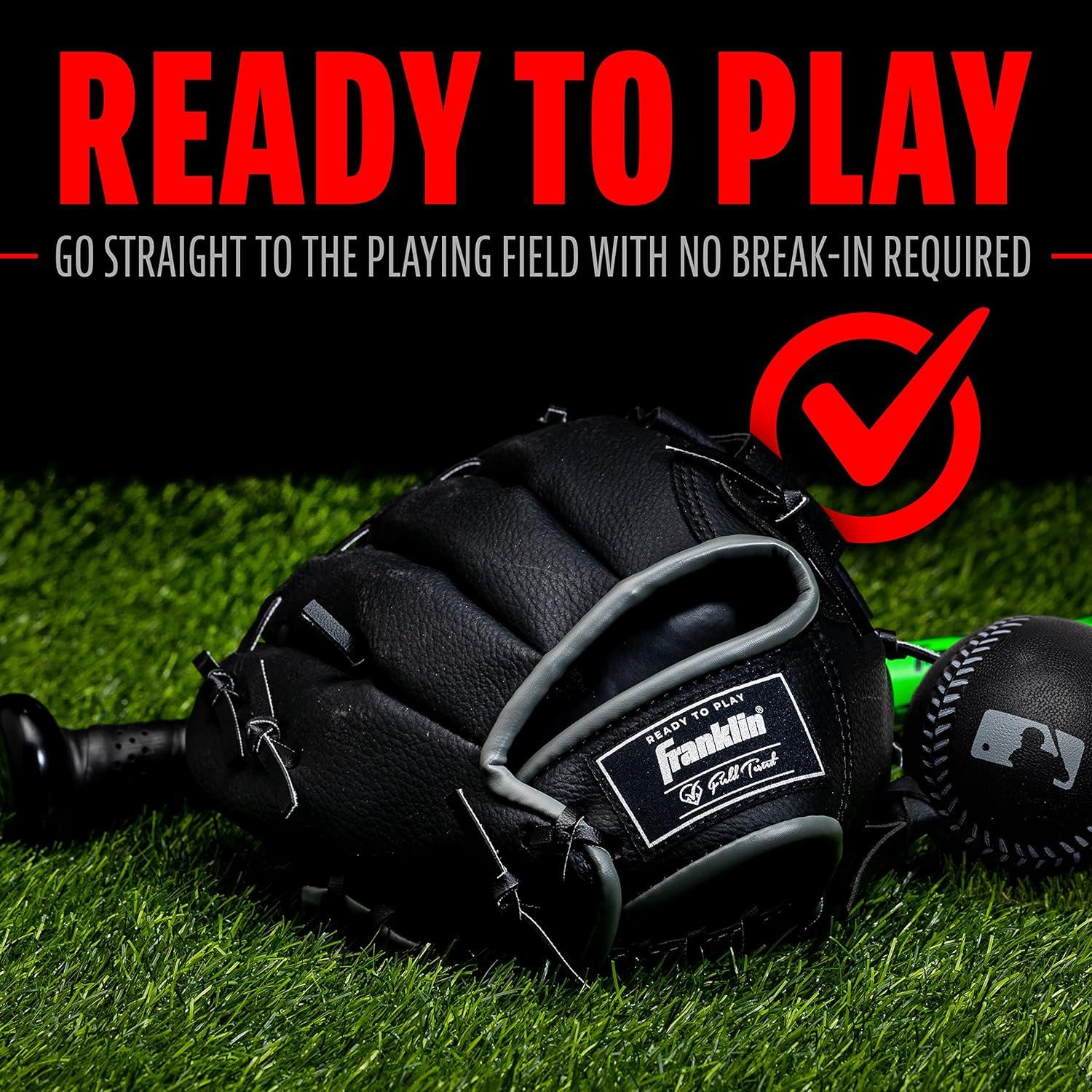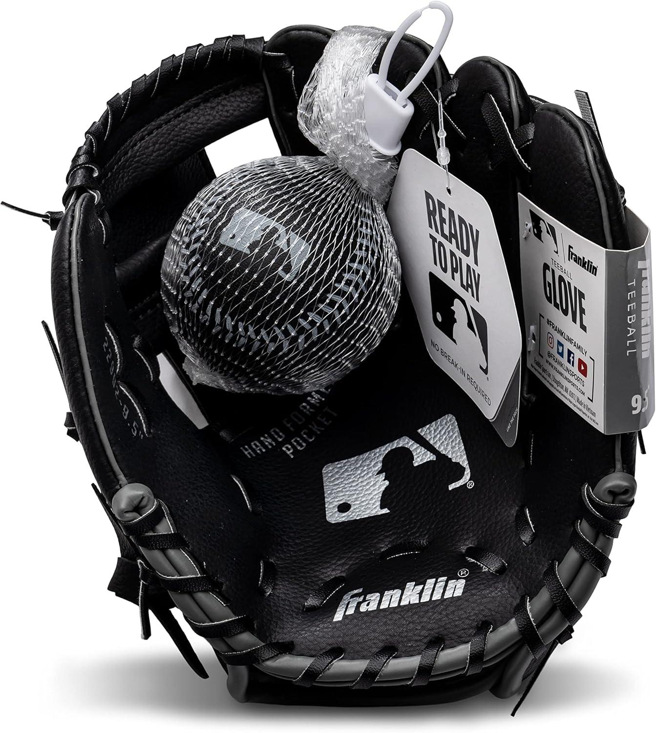 Franklin Sports Kids Baseball Gloves – RTP Youth Teeball Glove + Ball Set – Boys + Girls Teeball Mitt Set – Kids + Toddlers – 9.5″(Black/Silver)