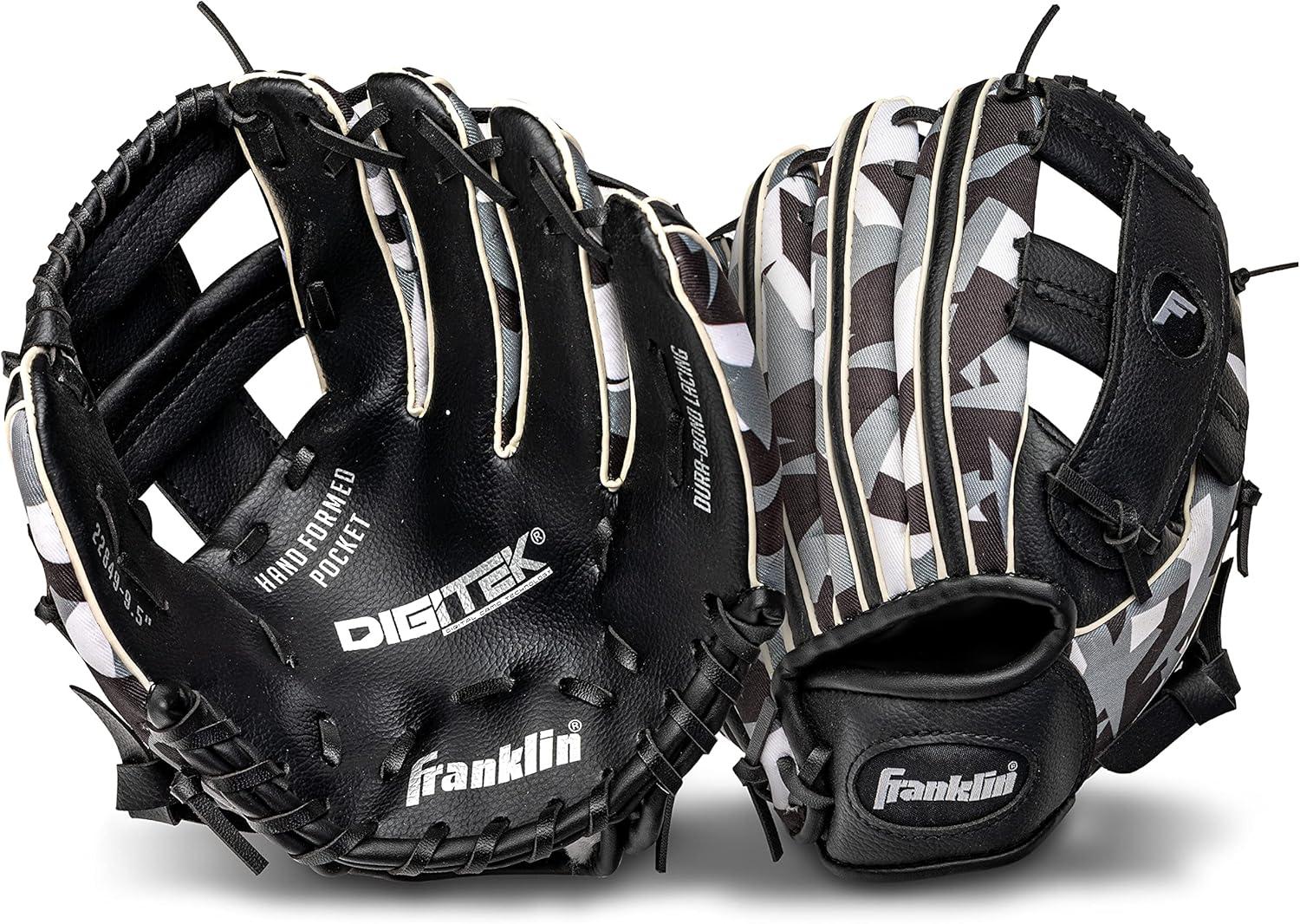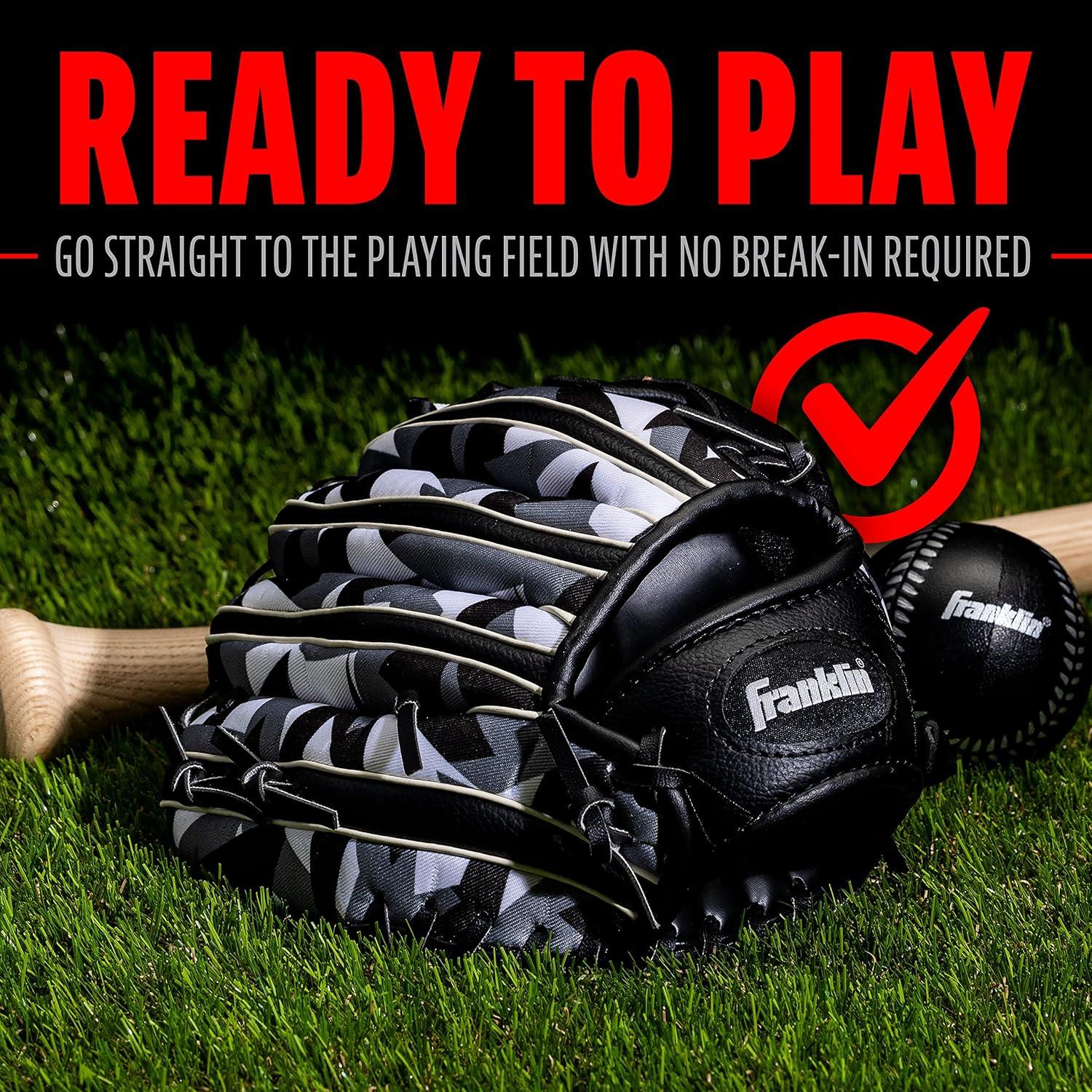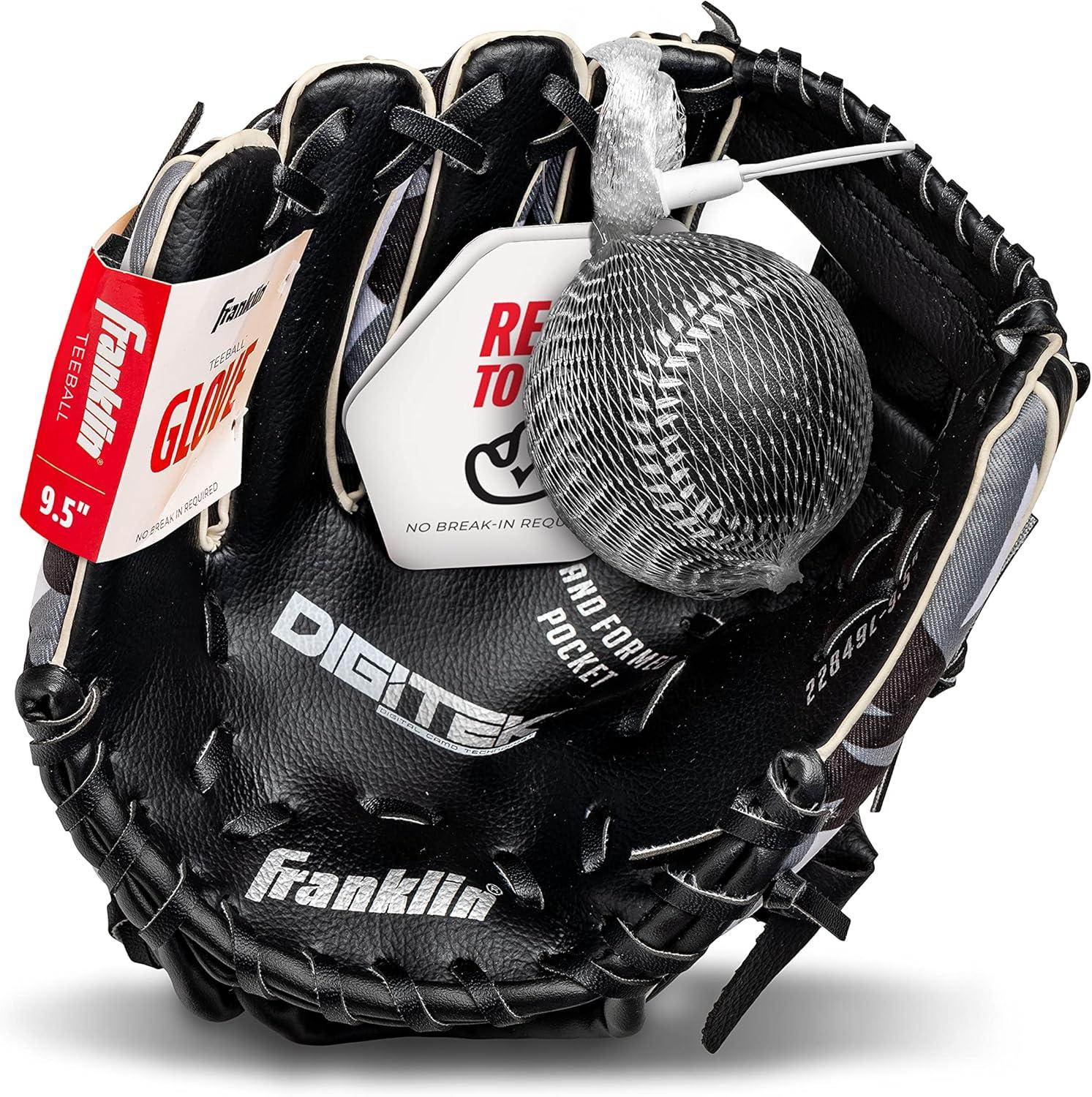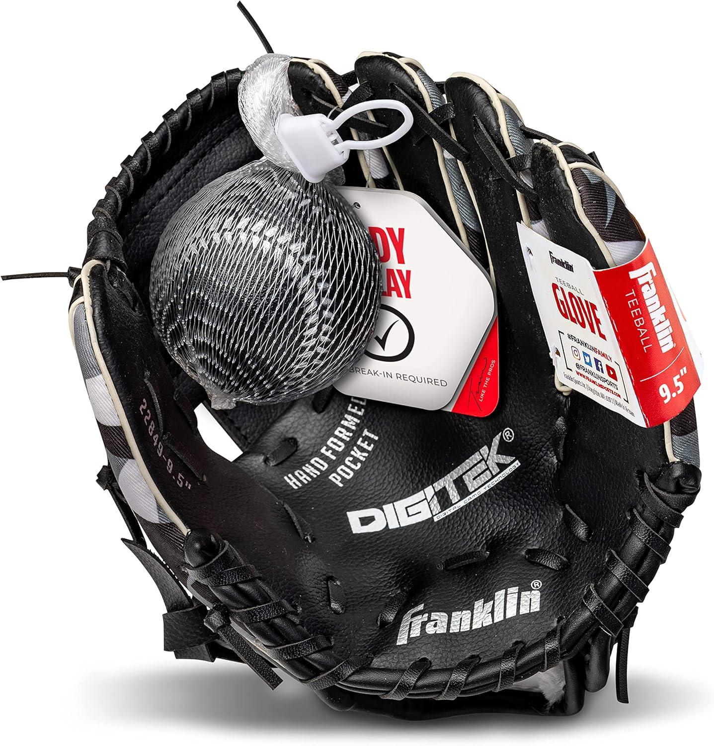 Franklin Sports Kids Baseball Gloves – RTP Youth Teeball Glove + Ball Set – Boys + Girls Teeball Mitt Set – Kids + Toddlers – 9.5″(Black/White)