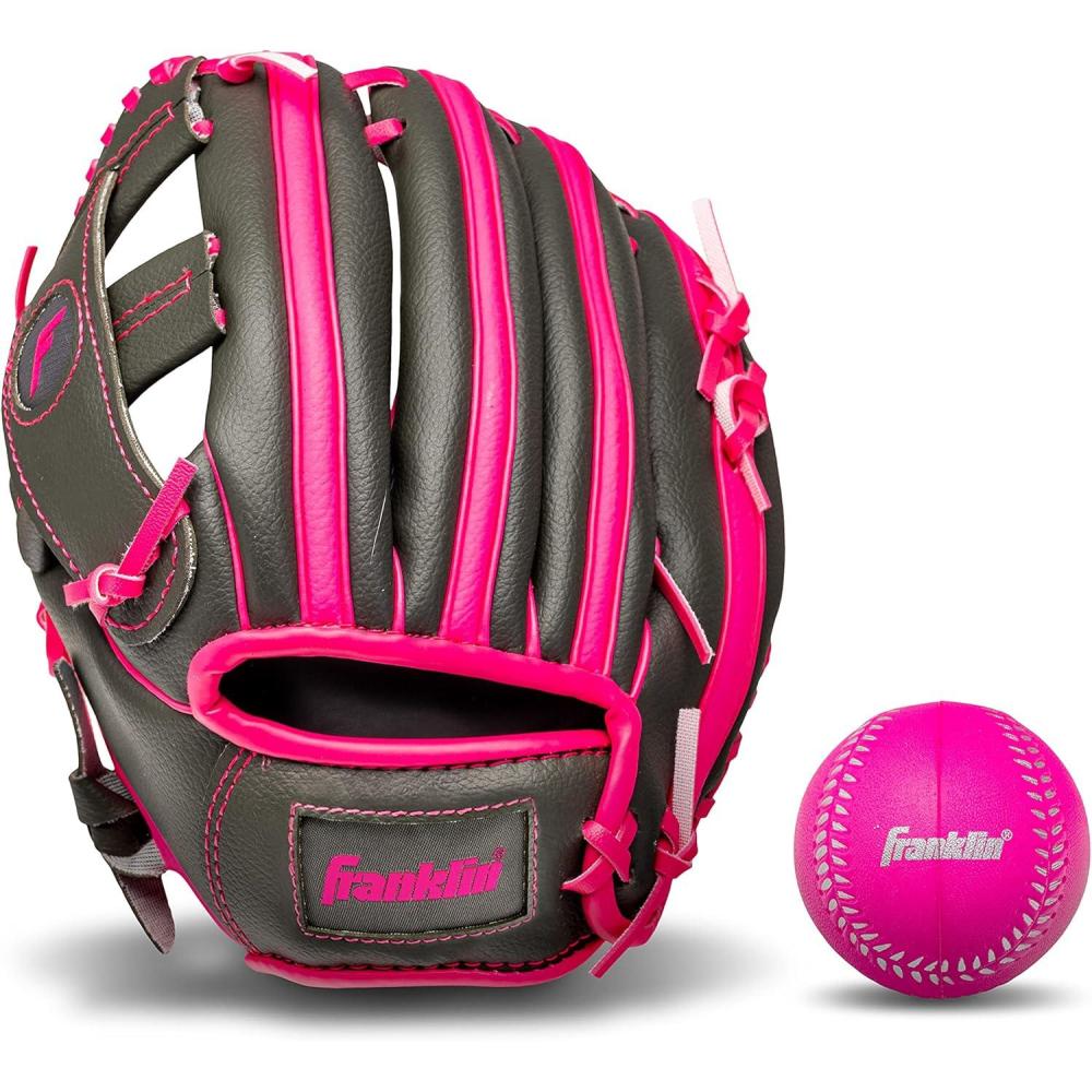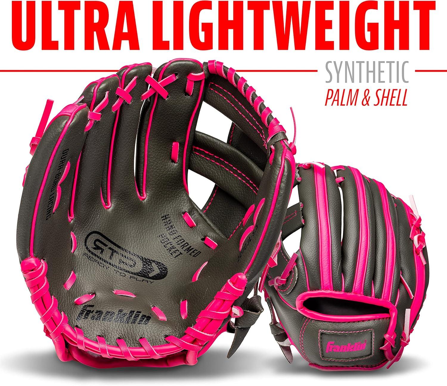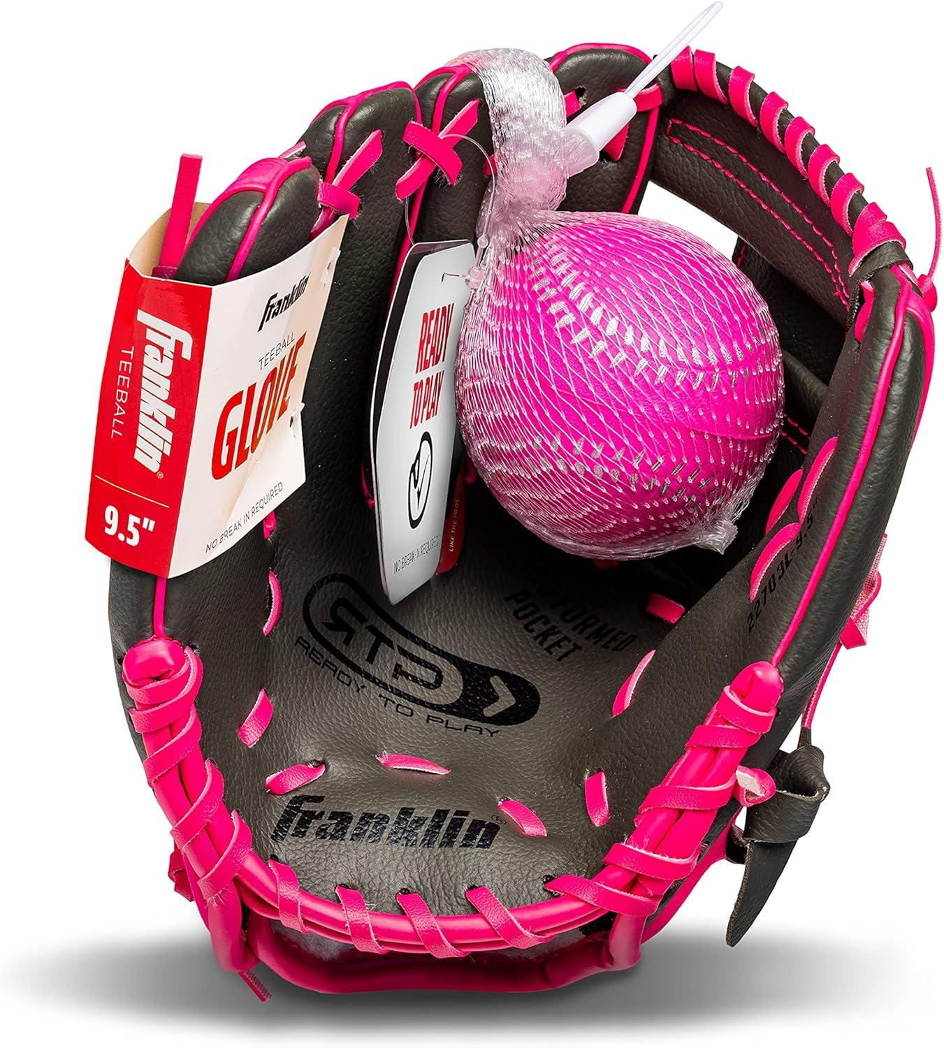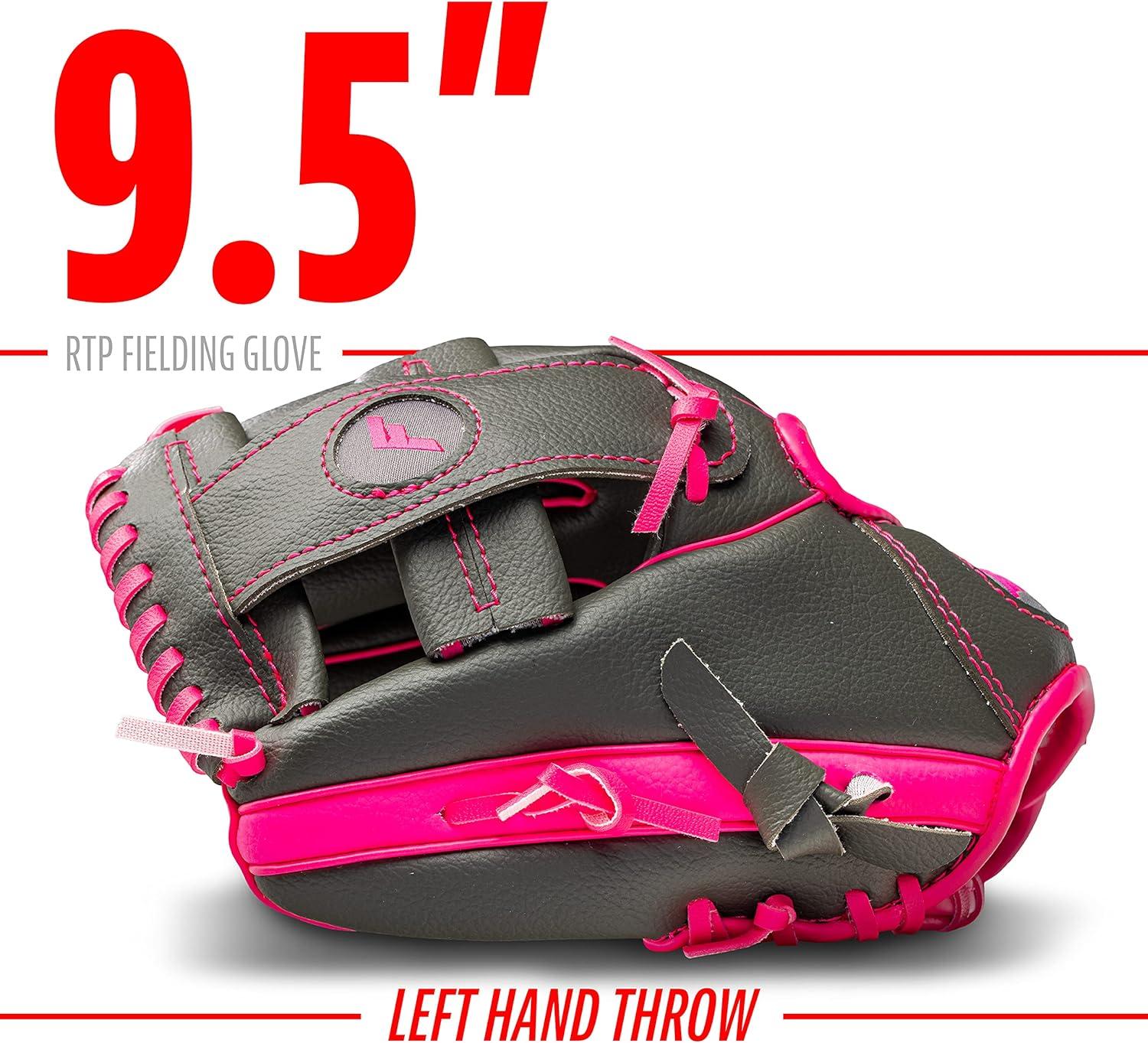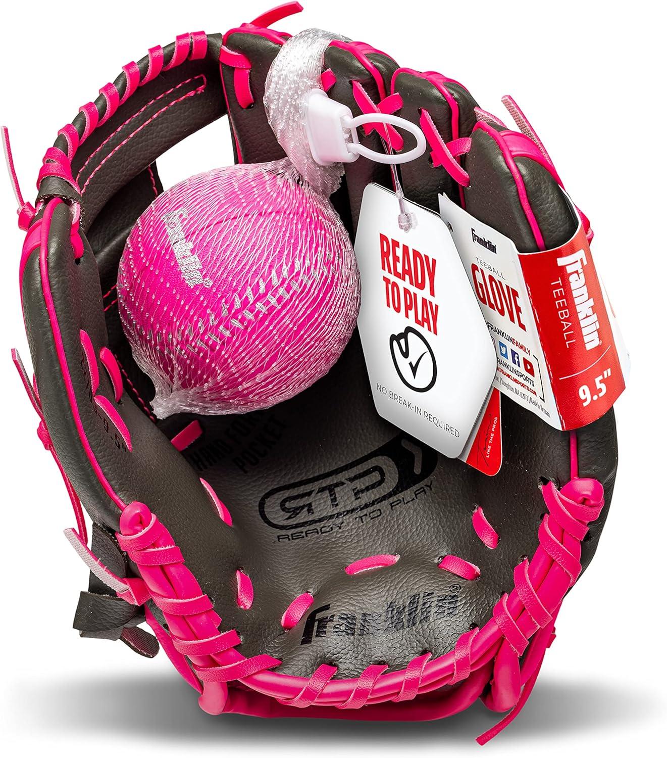 Franklin Sports Kids Baseball Gloves – RTP Youth Teeball Glove + Ball Set – Boys + Girls Teeball Mitt Set – Kids + Toddlers – 9.5″(Graphite/Pink)