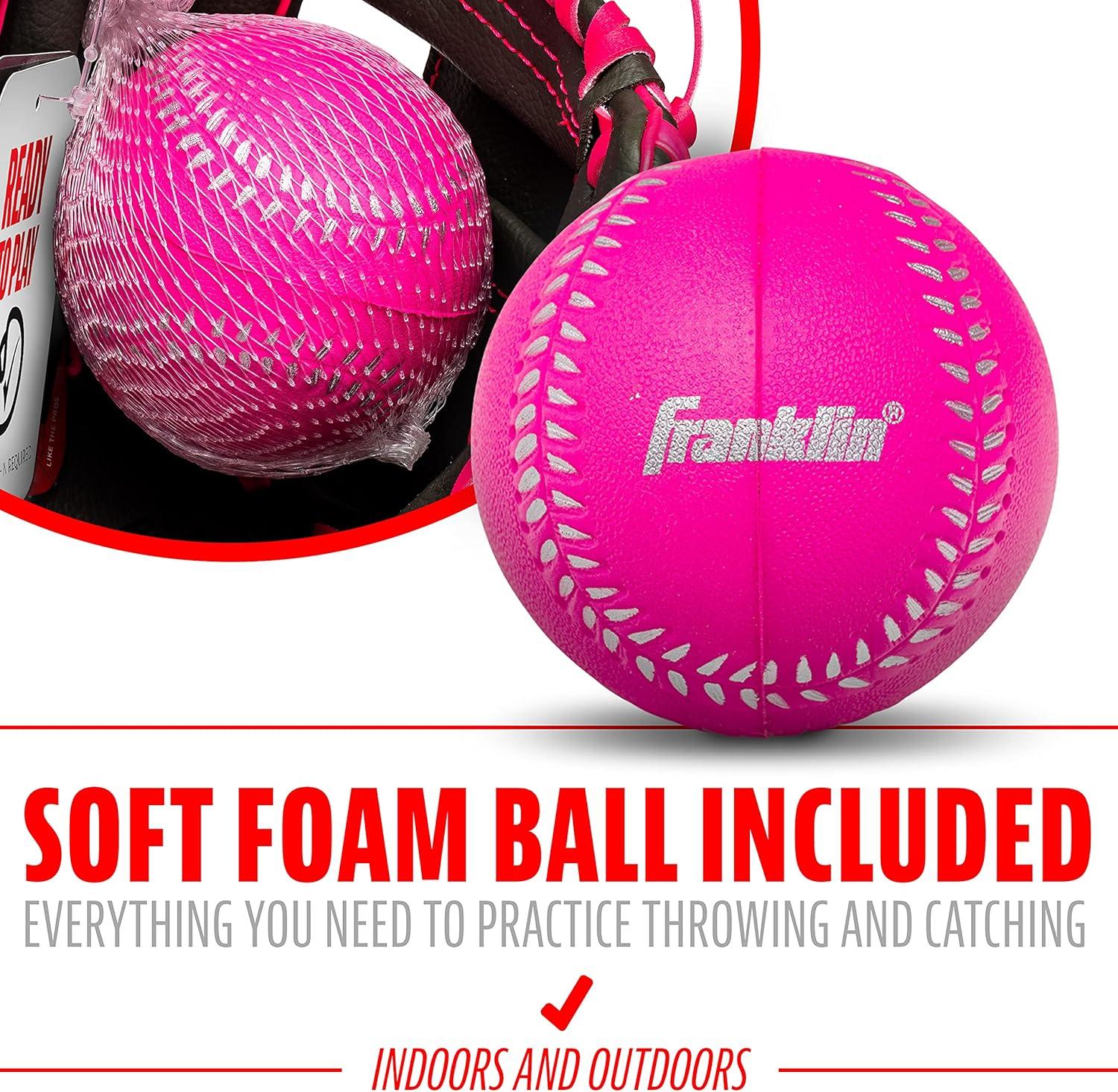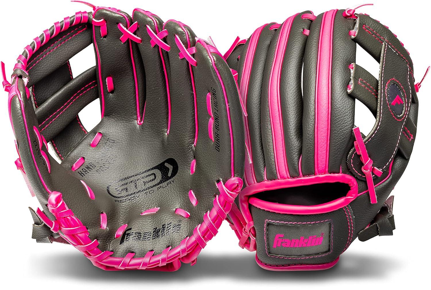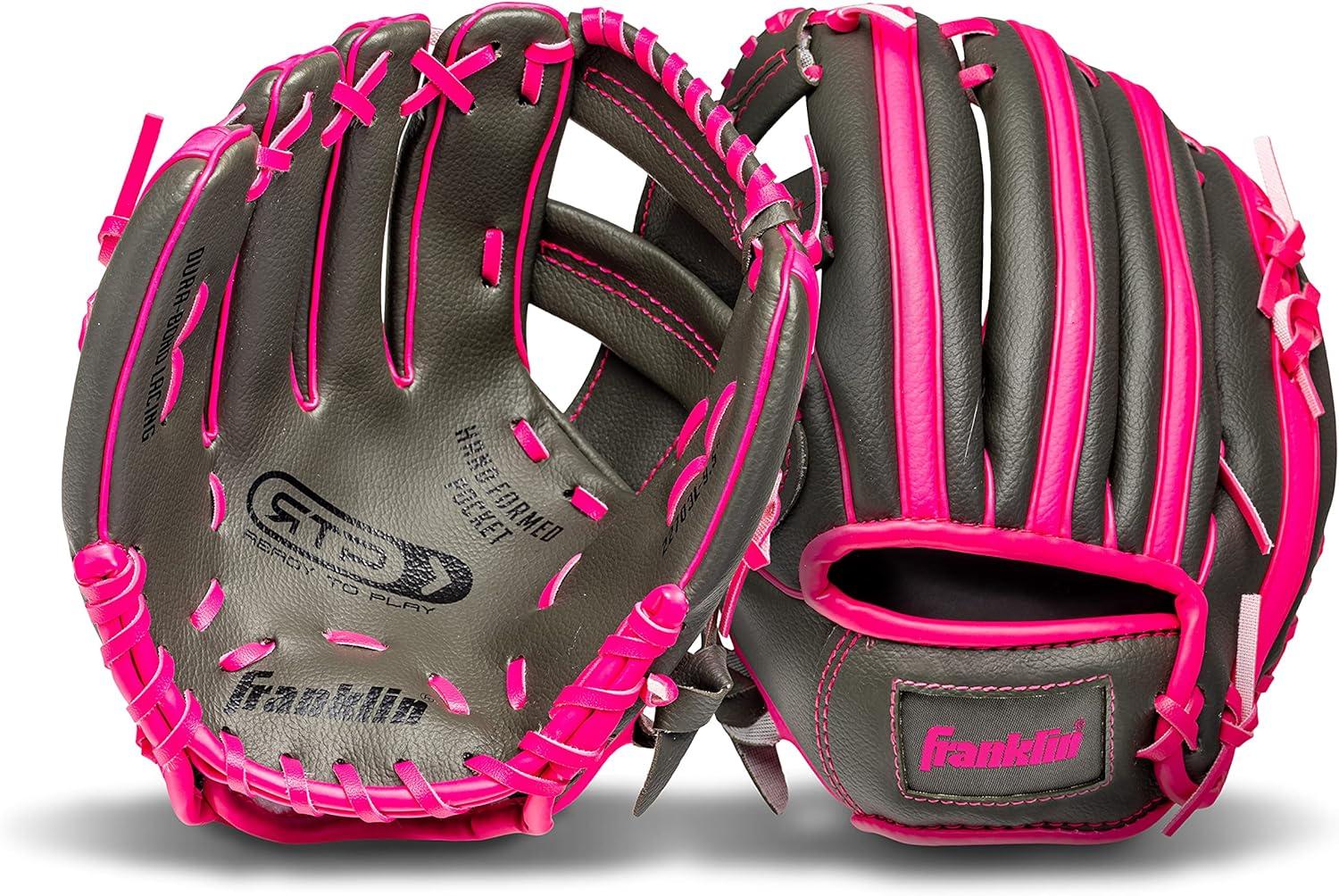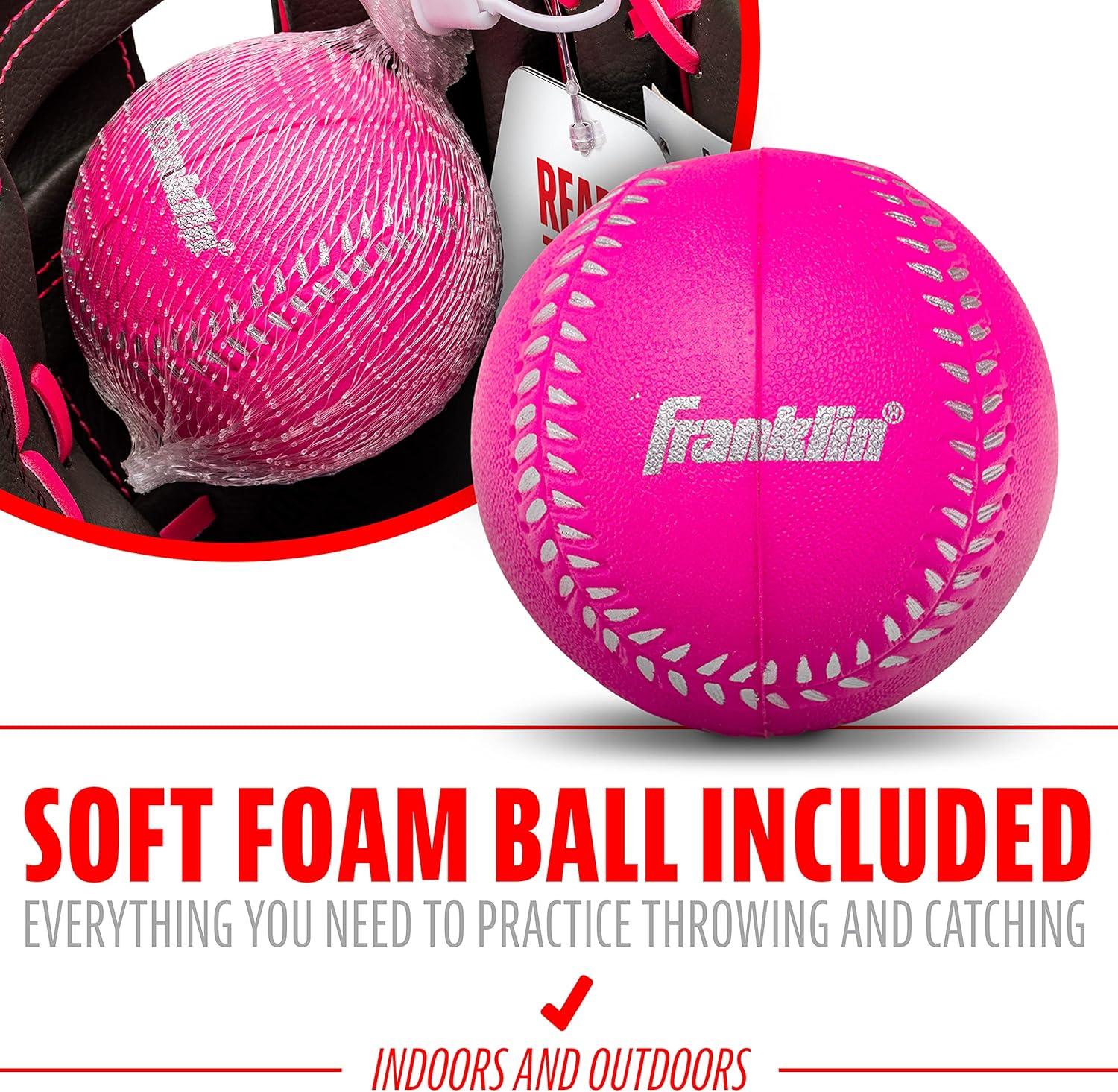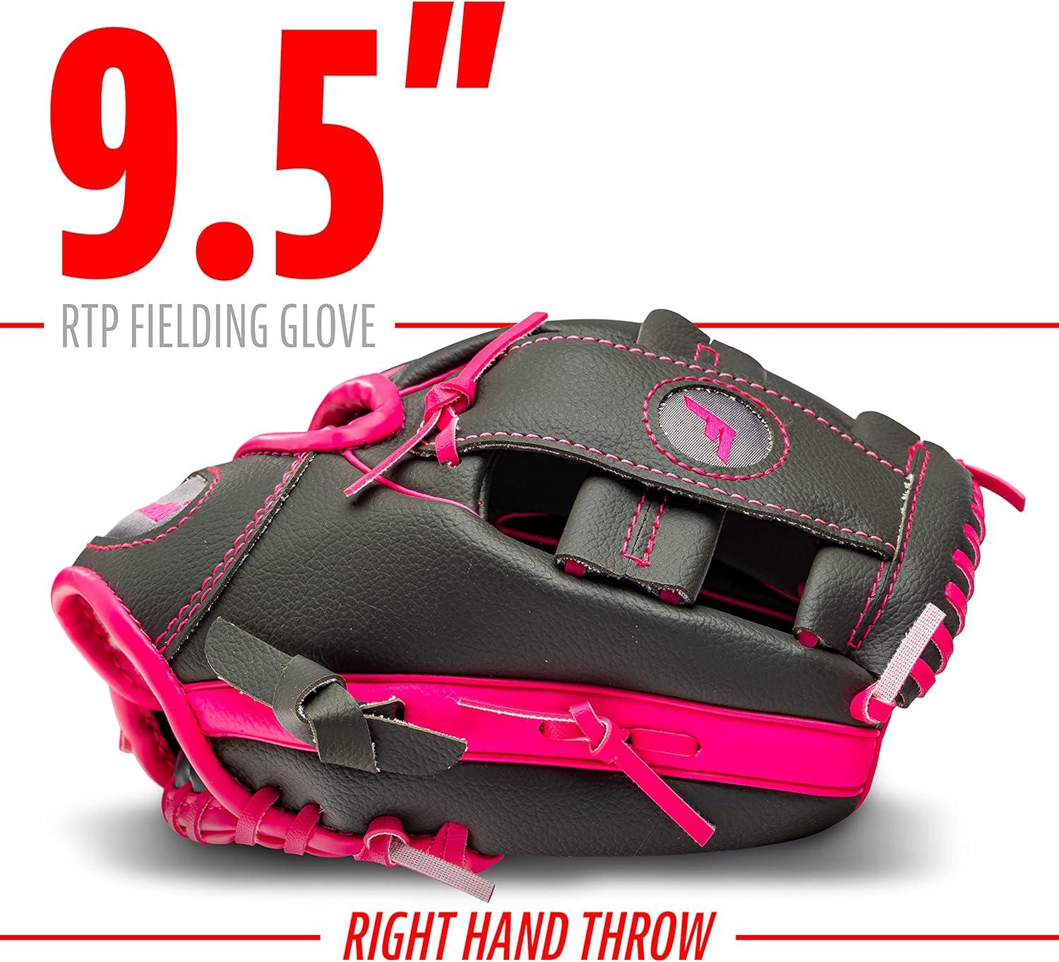 Franklin Sports Kids Baseball Gloves – RTP Youth Teeball Glove + Ball Set – Boys + Girls Teeball Mitt Set – Kids + Toddlers – 9.5″(Graphite/Pink)