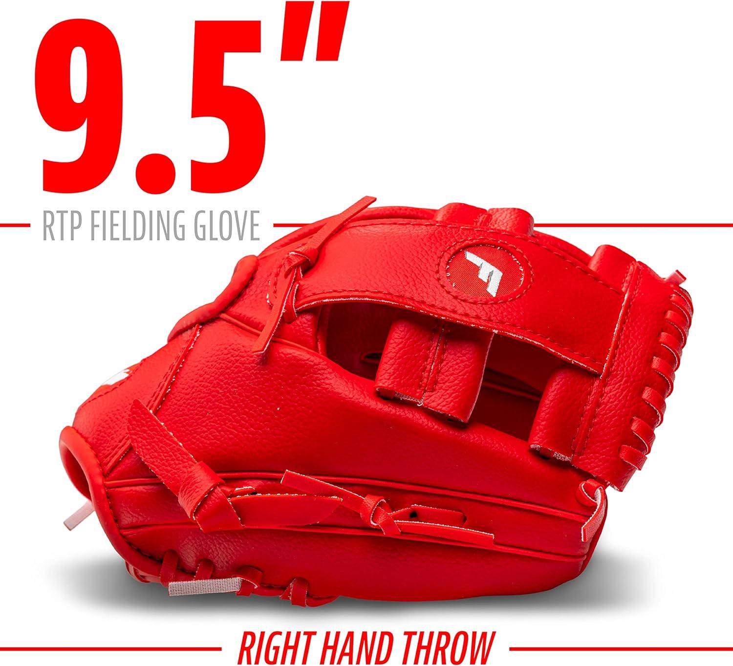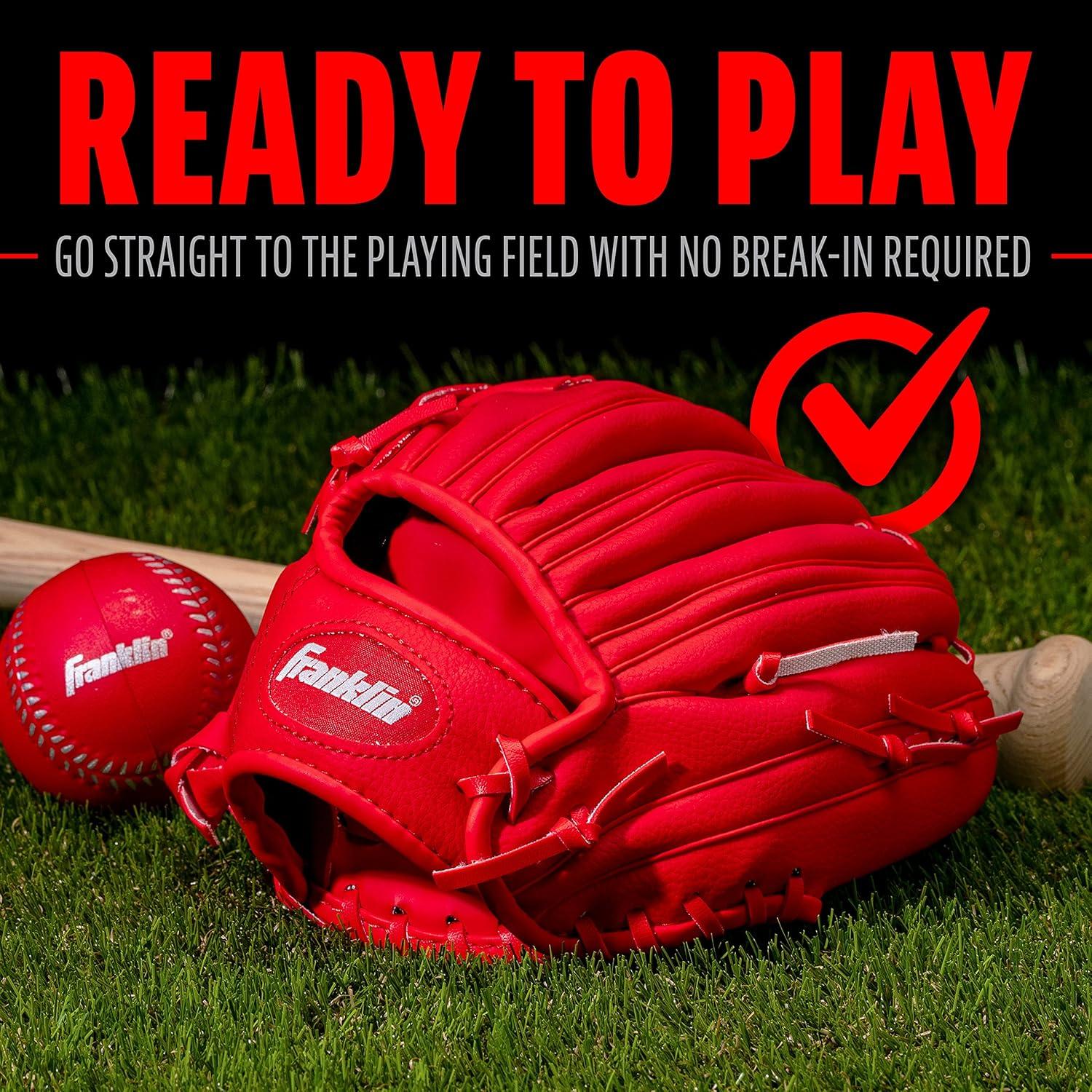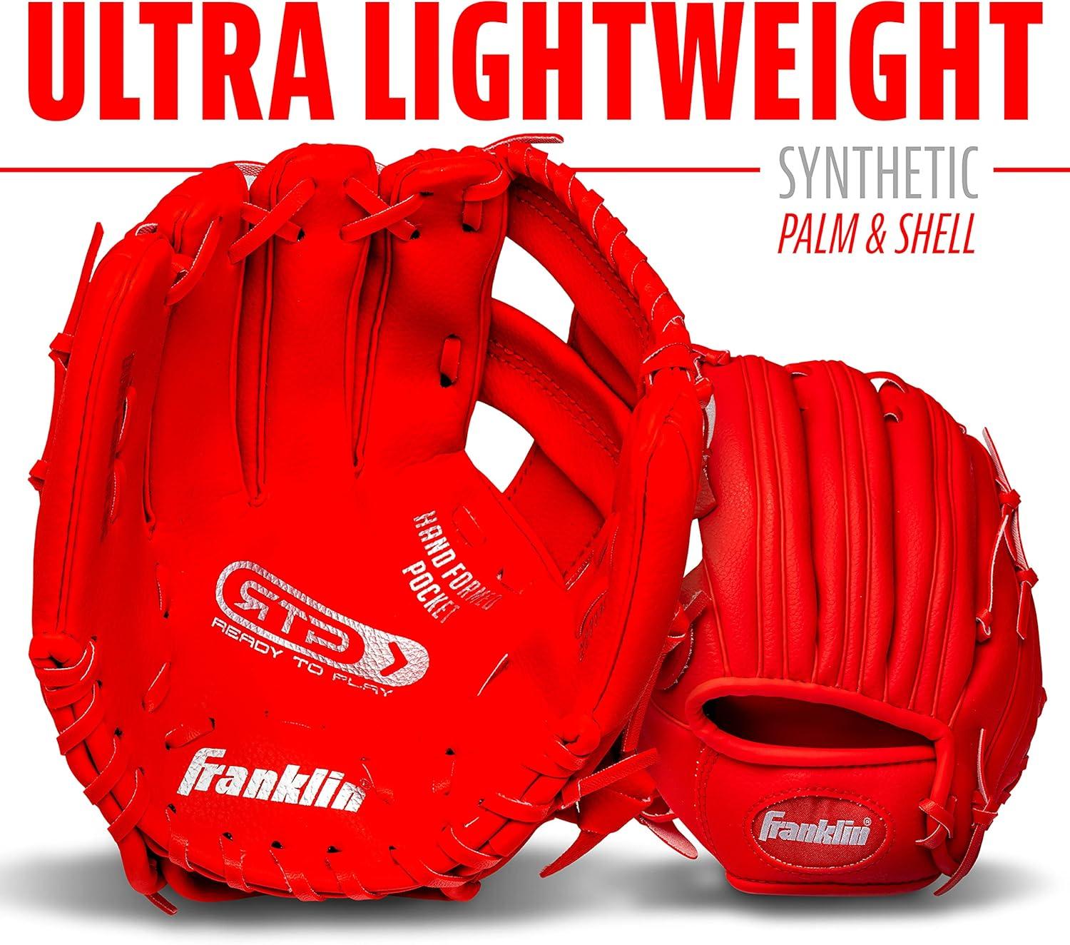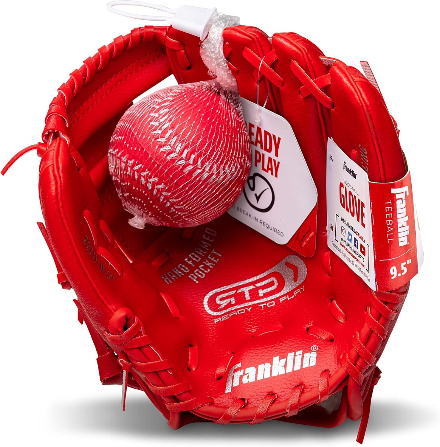 Franklin Sports Kids Baseball Gloves – RTP Youth Teeball Glove + Ball Set – Boys + Girls Teeball Mitt Set – Kids + Toddlers – 9.5″(Red)