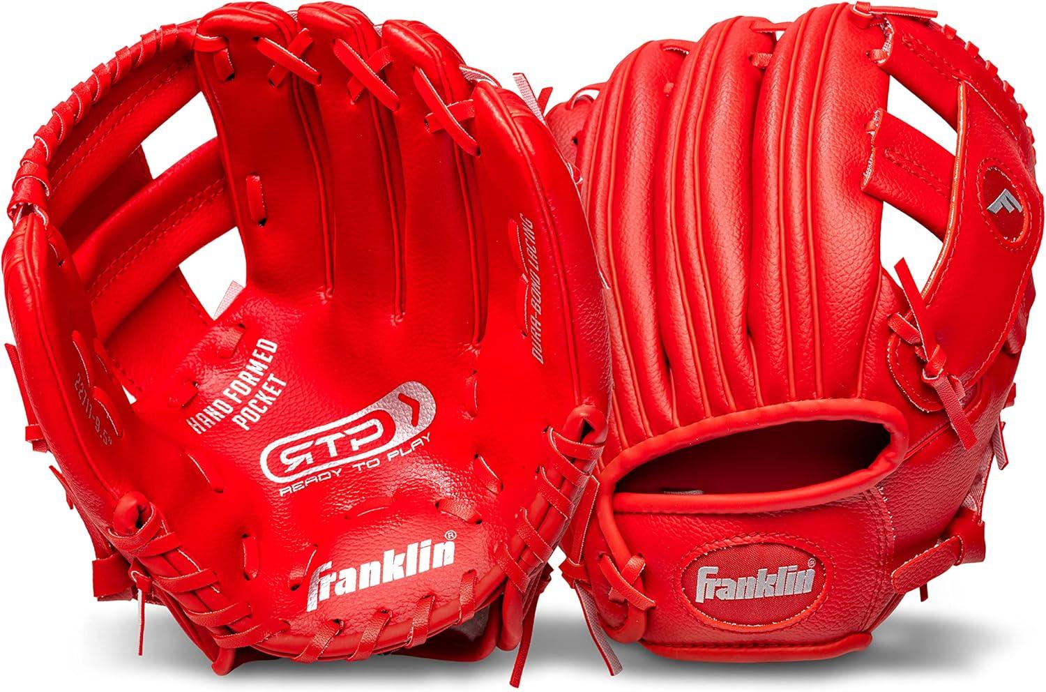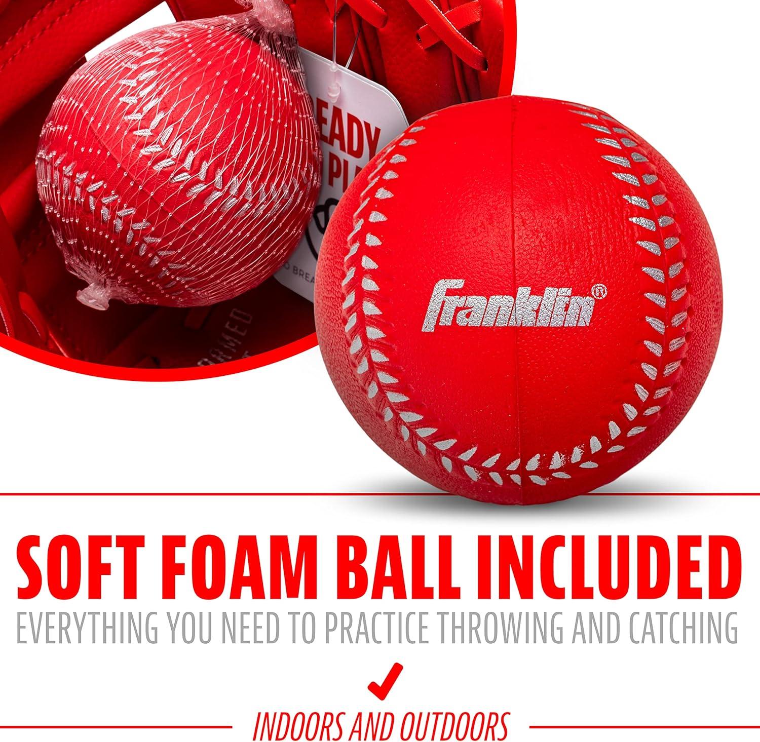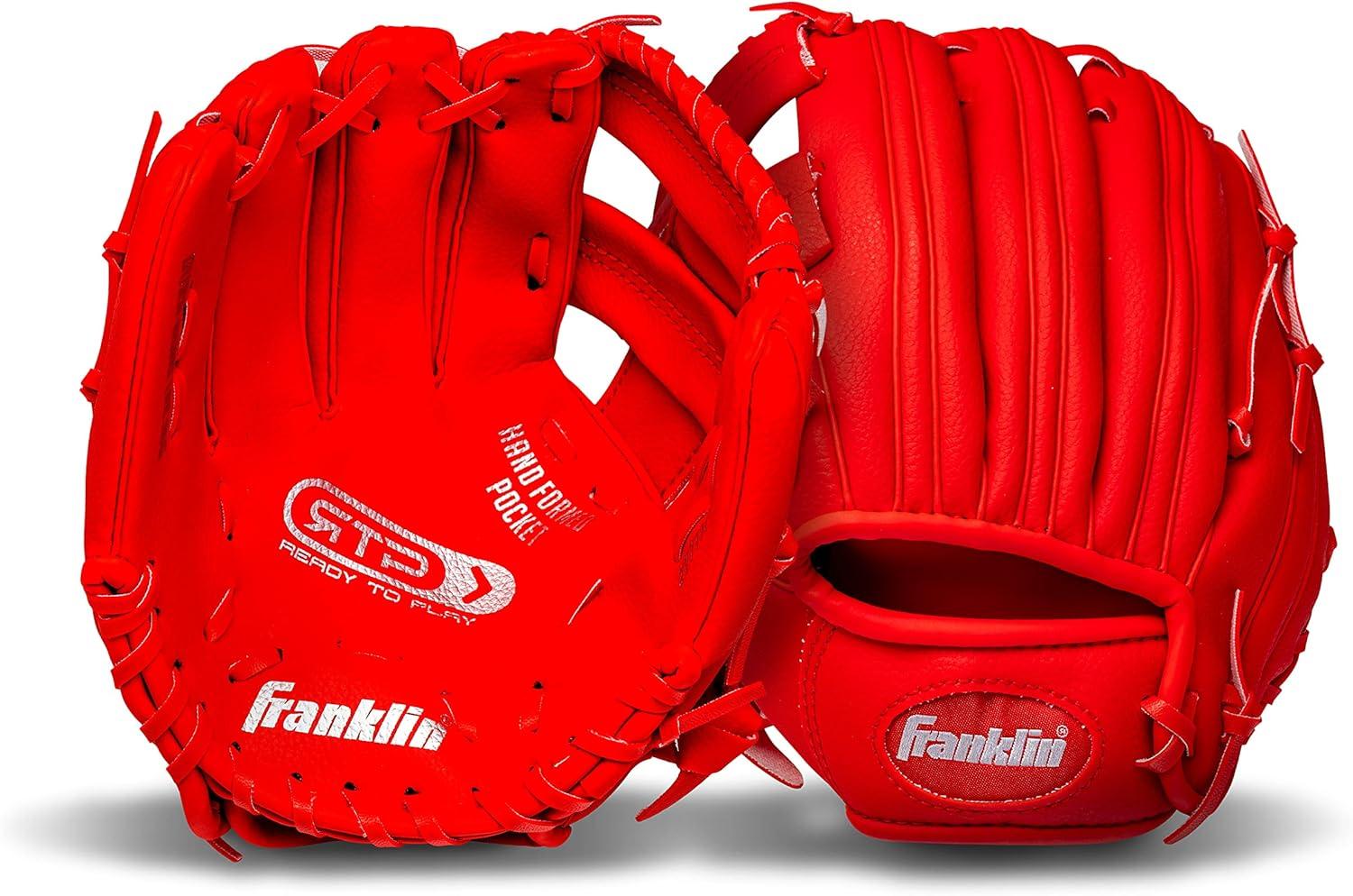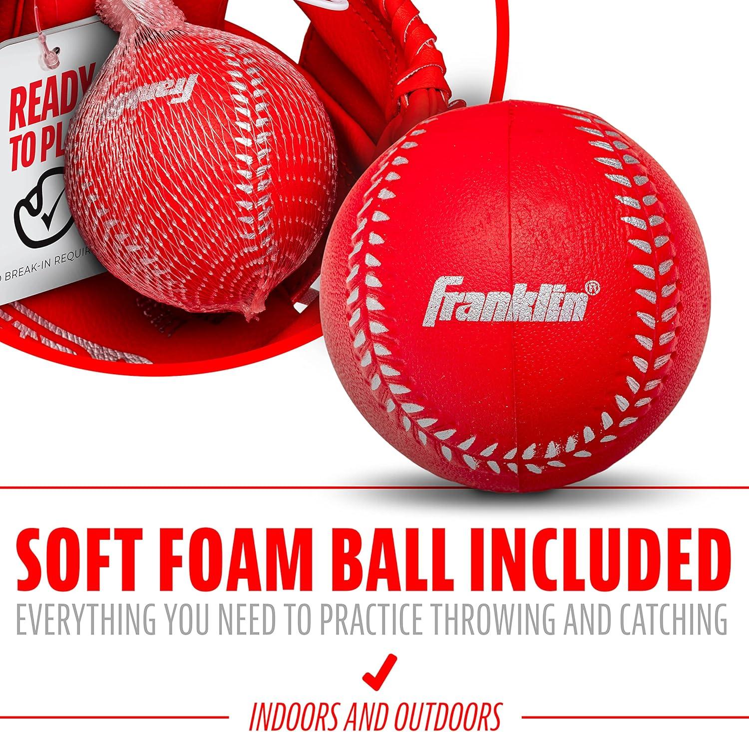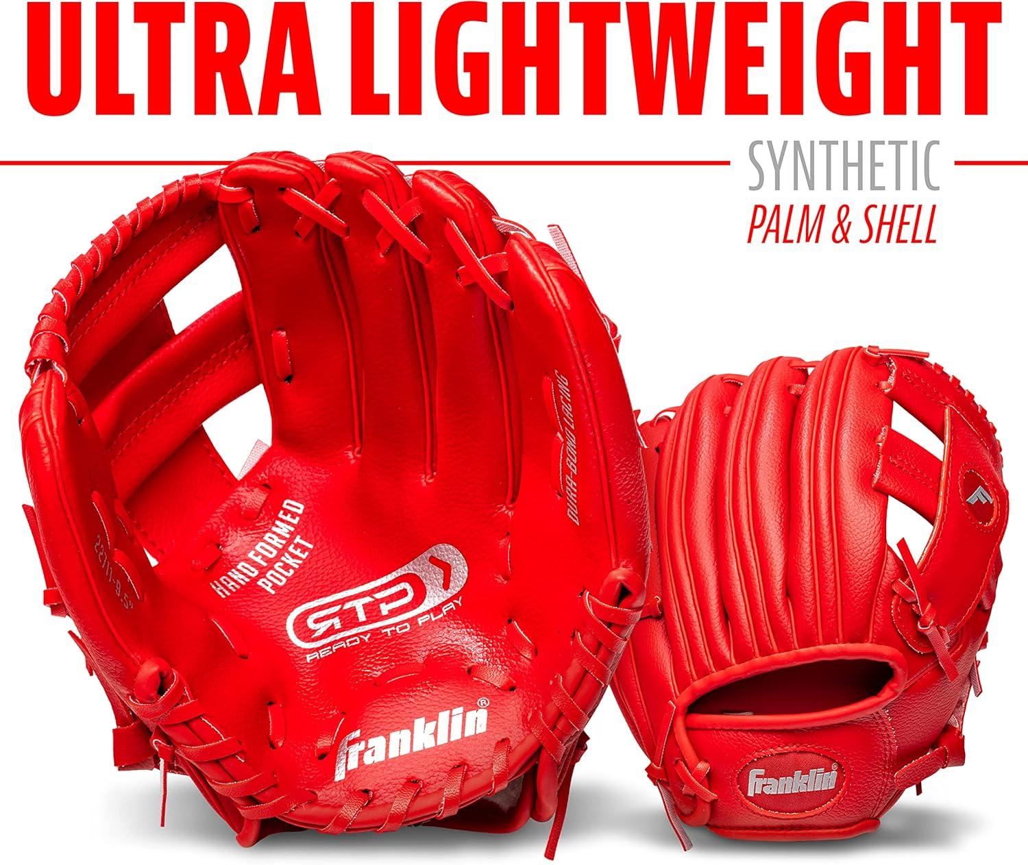 Franklin Sports Kids Baseball Gloves – RTP Youth Teeball Glove + Ball Set – Boys + Girls Teeball Mitt Set – Kids + Toddlers – 9.5″(Red)