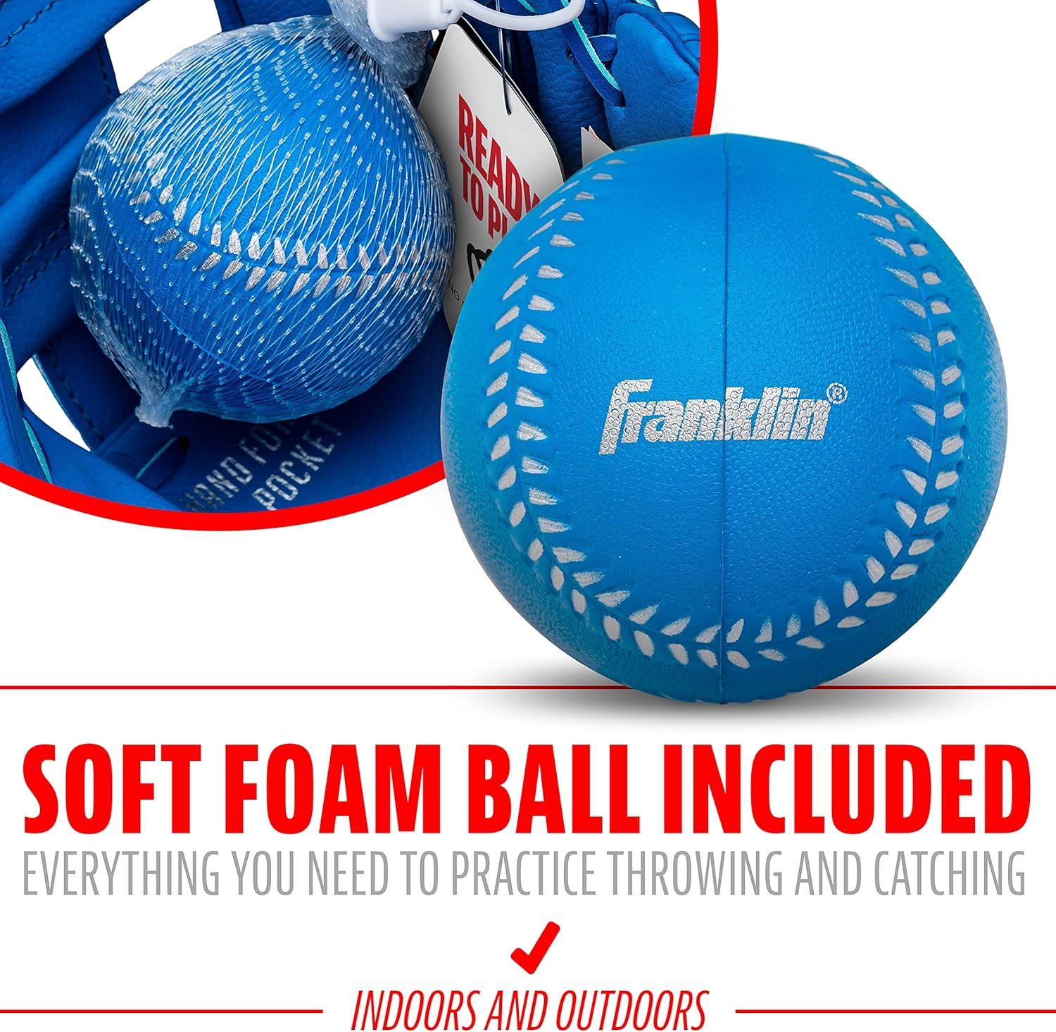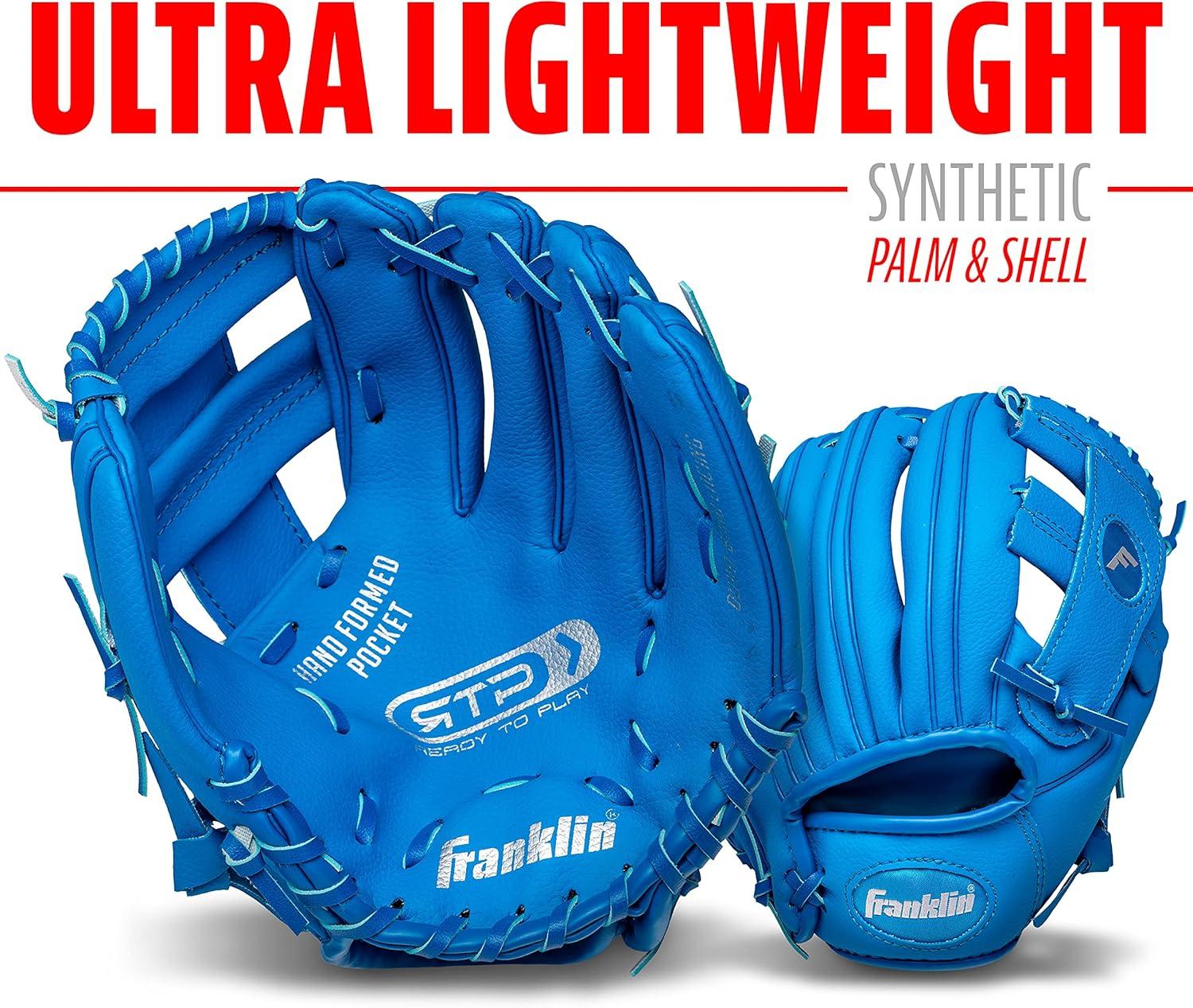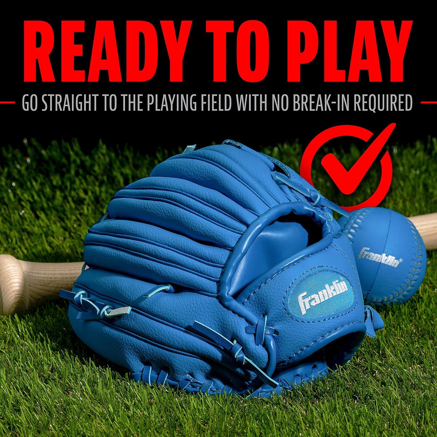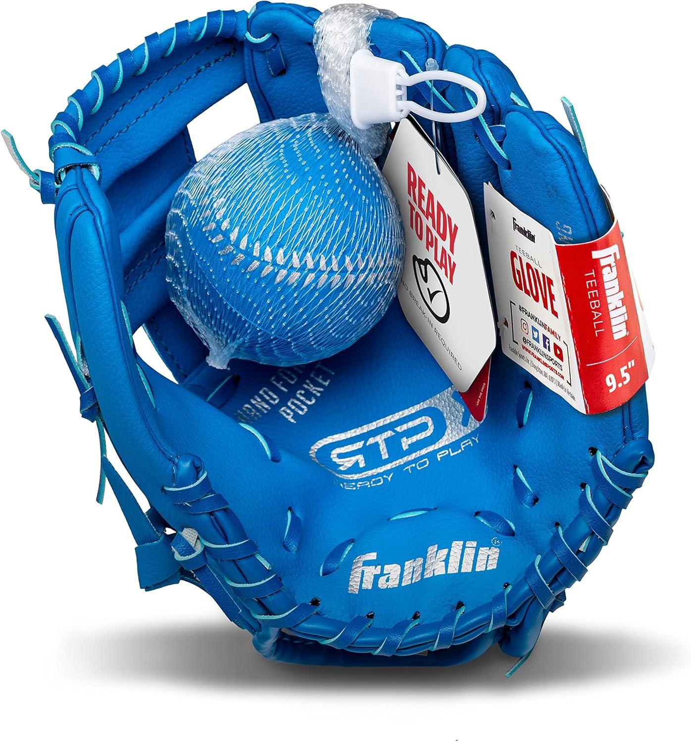 Franklin Sports Kids Baseball Gloves – RTP Youth Teeball Glove + Ball Set – Boys + Girls Teeball Mitt Set – Kids + Toddlers – 9.5″(Royal)