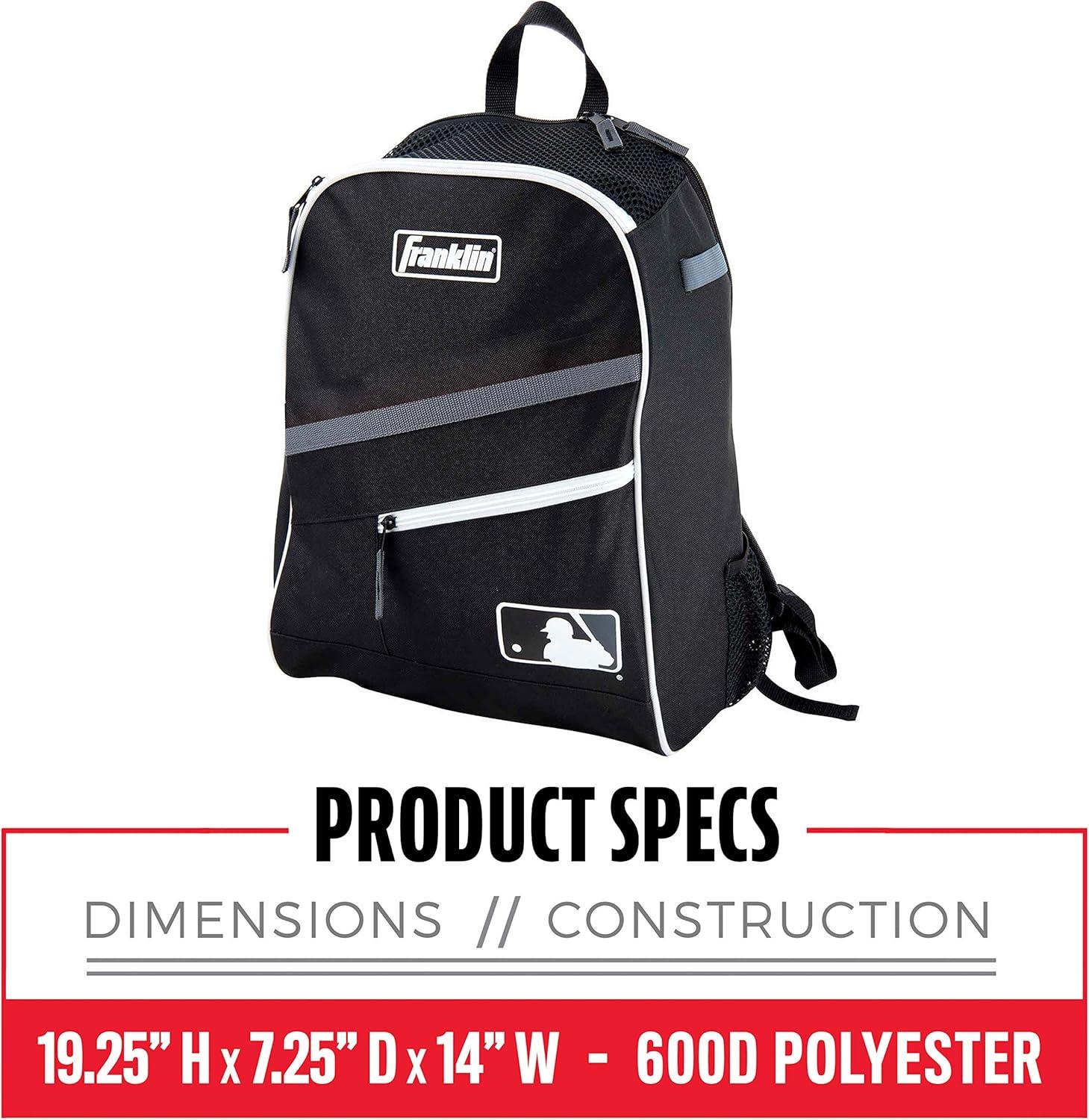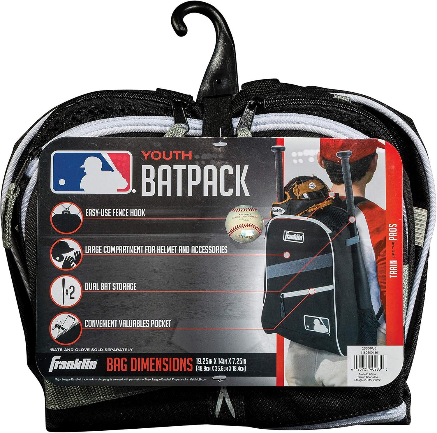 The Franklin Sports MLB Bat Pack is a durable batpack for transporting all your game or practice equipment in one package. Tough, lightweight nylon is added for durability. The soft backpack-style shoulder straps are designed for comfort and extended carrying time. The outer pockets let you carry up to two bats hands-free; and the zippered front pocket is ideal for keys, ID badges, and other small items.