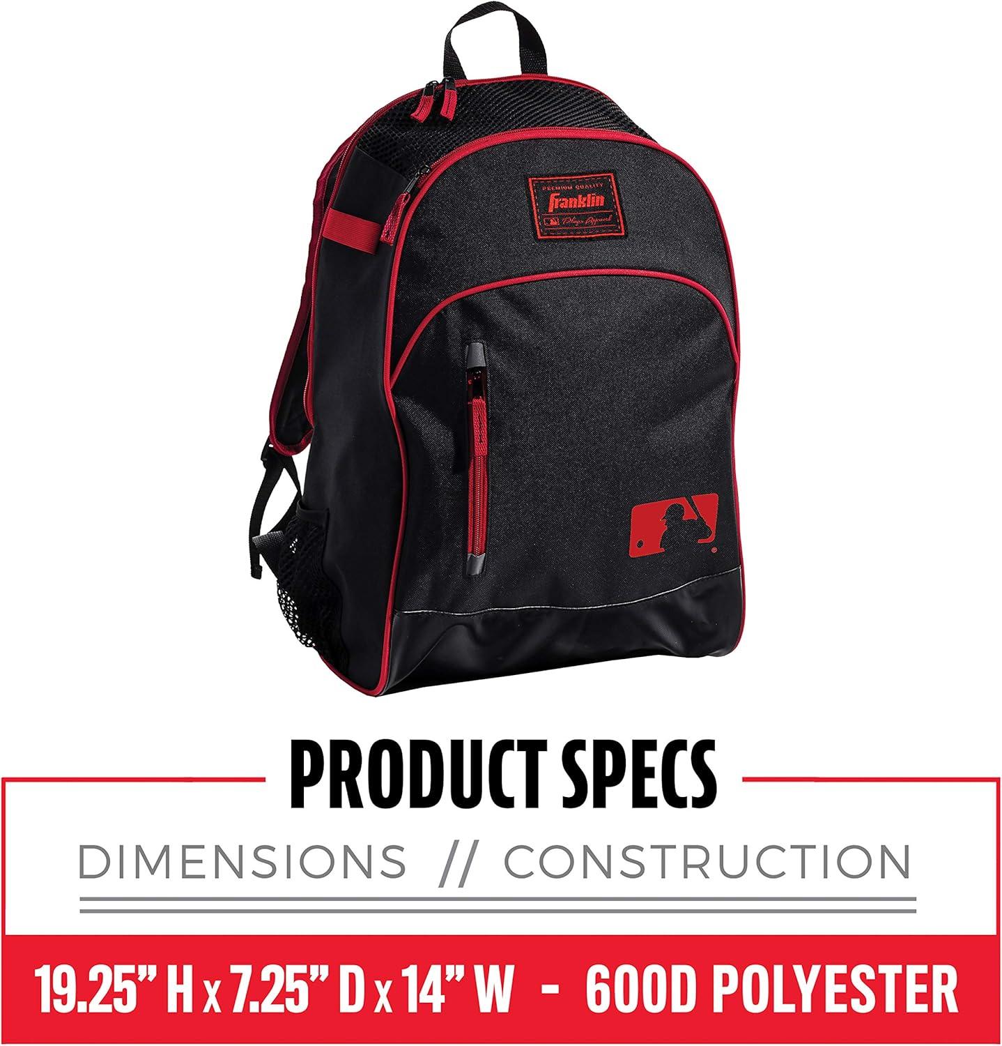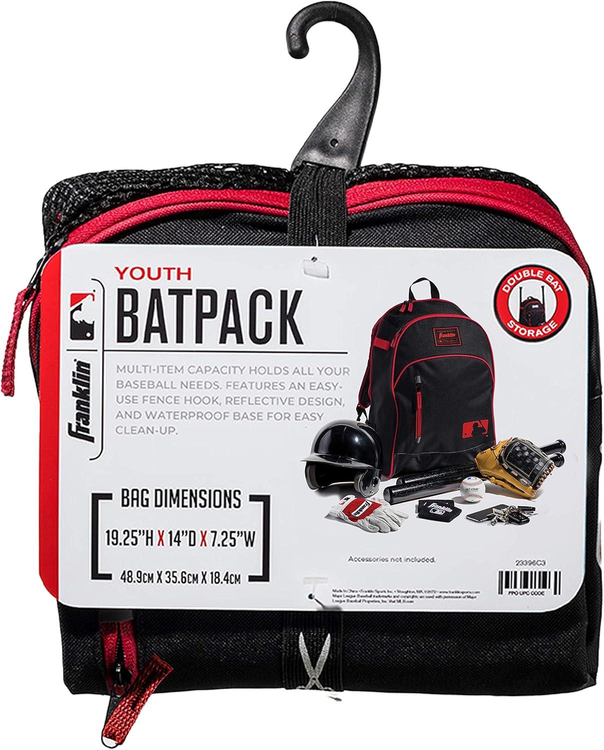 Franklin Sports Kids MLB Baseball Batpack Bag – Youth Baseball, Softball + Teeball Backpack – Sports Equipment Bag for Kids + Toddlers – Holds (2) Teeball + Baseball Bats + Includes Fence Hook(Black/Red)
