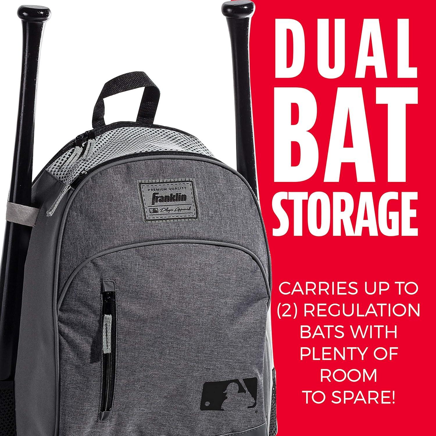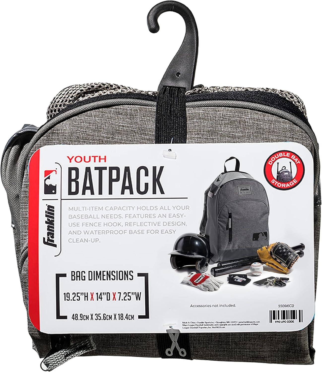 Franklin Sports Kids MLB Baseball Batpack Bag – Youth Baseball, Softball + Teeball Backpack – Sports Equipment Bag for Kids + Toddlers – Holds (2) Teeball + Baseball Bats + Includes Fence Hook(Gray)