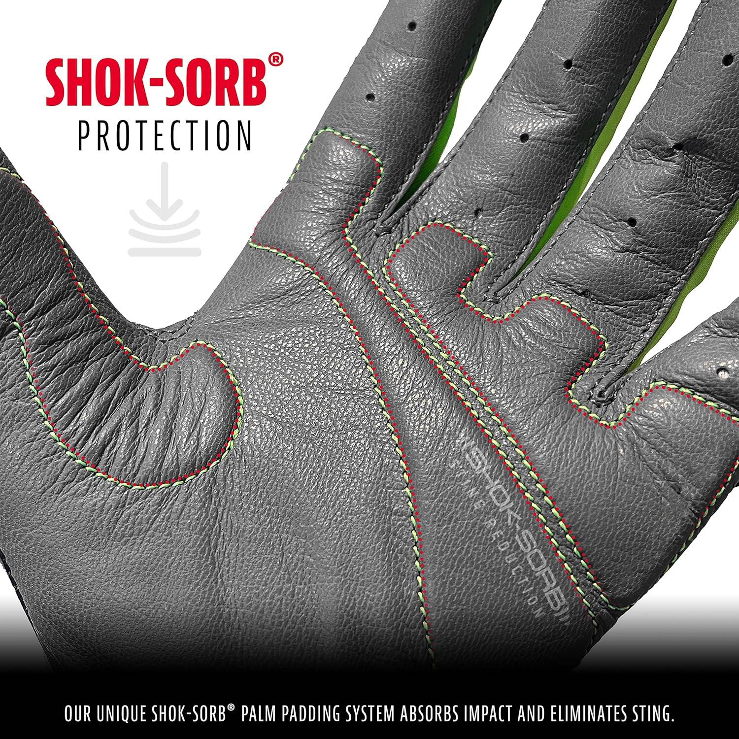 Take the pain out of your at bats and grab a pair of the padded Franklin Sports Shok-Sorb batting gloves today! These batting gloves are designed with extra palm padding to eliminate the sting from the bat in cold weather. Whether you're playing baseball or softball, the sting from the bat on a cold day can cripple a hitter's hands. These pro quality leather batting gloves are the perfect accessory for adult and youth hitters to protect their hands in every at bat. The high quality leather improves grip, and the mesh vents in the handback help your hands breathe for a cool comfortable fit. Plus, the Shok-Sorb batting gloves come in a variety of colors and adult and youth sizes, so every baseball and softball player can get the perfect pair of batting gloves for them. So grab yourself a pair of Shok-Sorb batting gloves and step to the plate today!