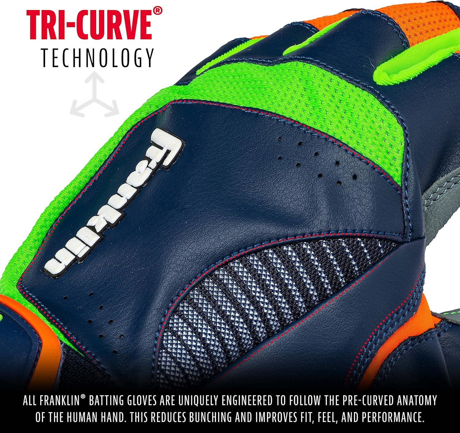 Franklin Sports MLB Baseball Batting Gloves – Shok-Sorb X Batting Gloves for Baseball + Softball – Adult + Youth Padded Non-Sting Batting Glove Pairs – Multiple Colors + Sizes(Gray/Navy/Lime)