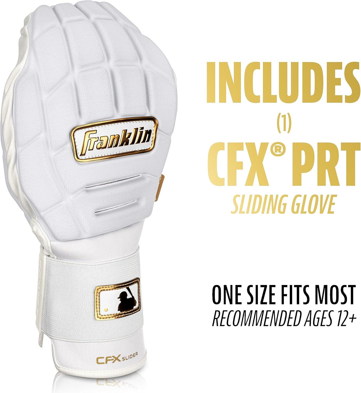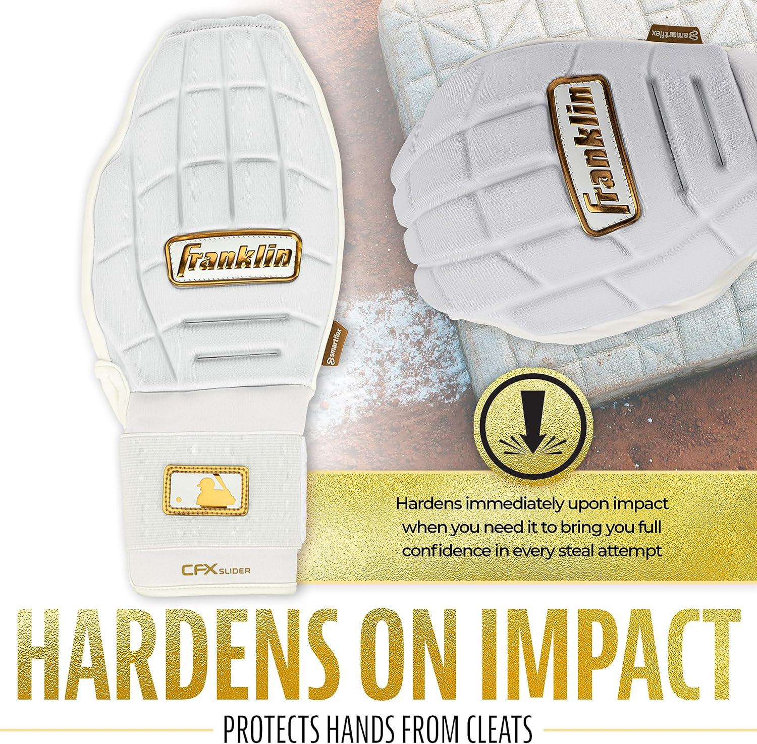 Franklin Sports MLB Baseball + Softball Sliding Mitt – CFX PRT Adult + Youth Protective Baserunning Sliding Gloves – Left + Right Hand Mitt – Hand + Wrist Protector for Running – Kids + Adults Sizes(White/Gold)