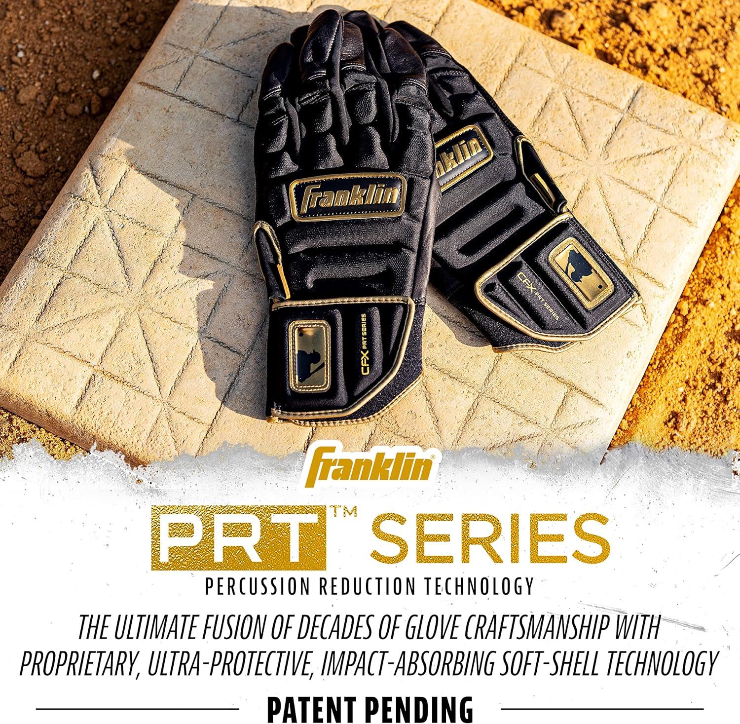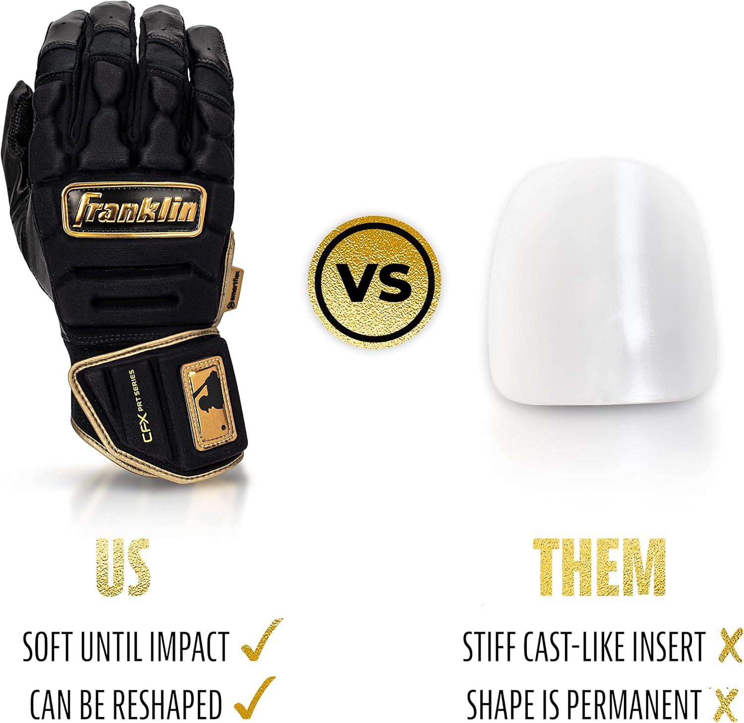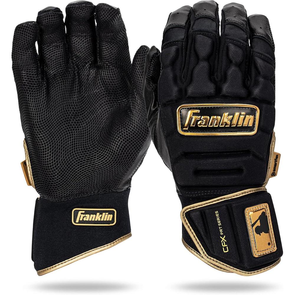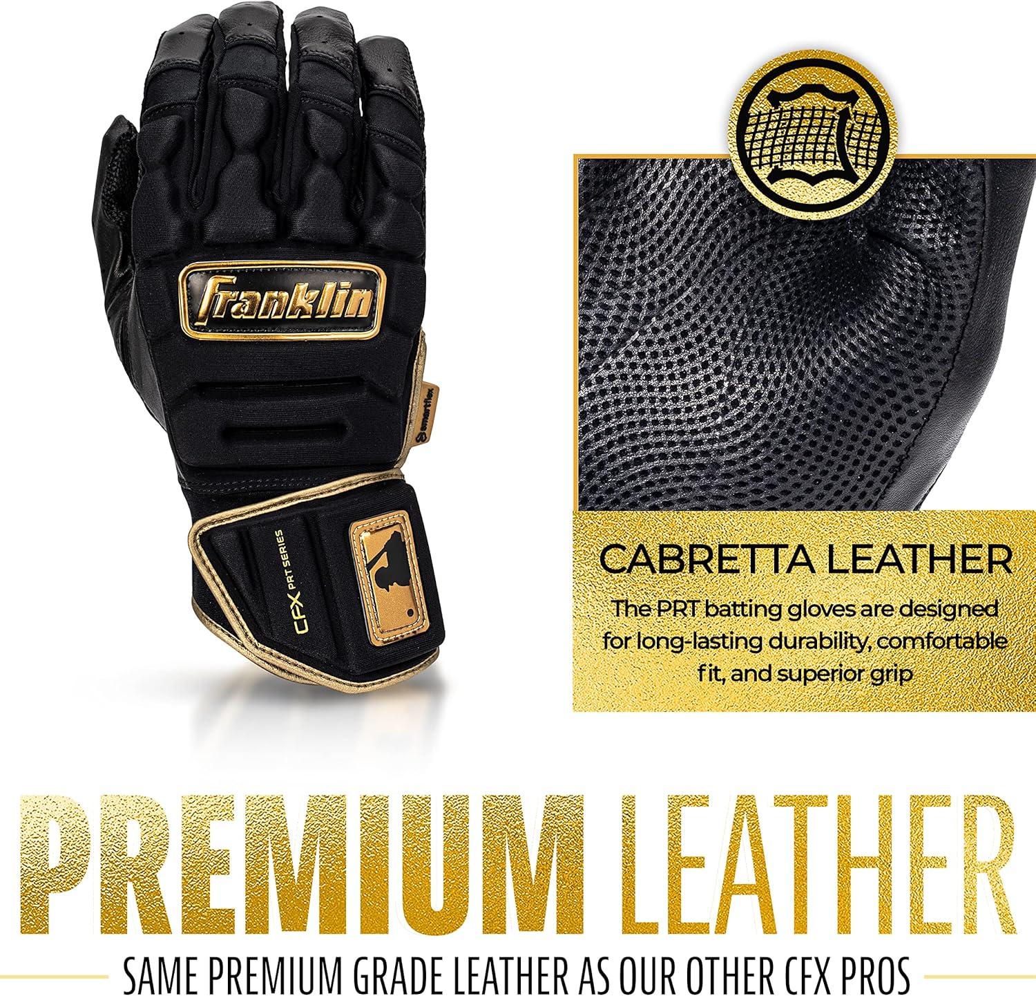 Franklin Sports MLB Batting Gloves – CFX Pro PRT Heavy Duty Protective Baseball + Softball Batting Gloves – Adult Padded Reinforced Leather Batting Gloves(Black/Gold)