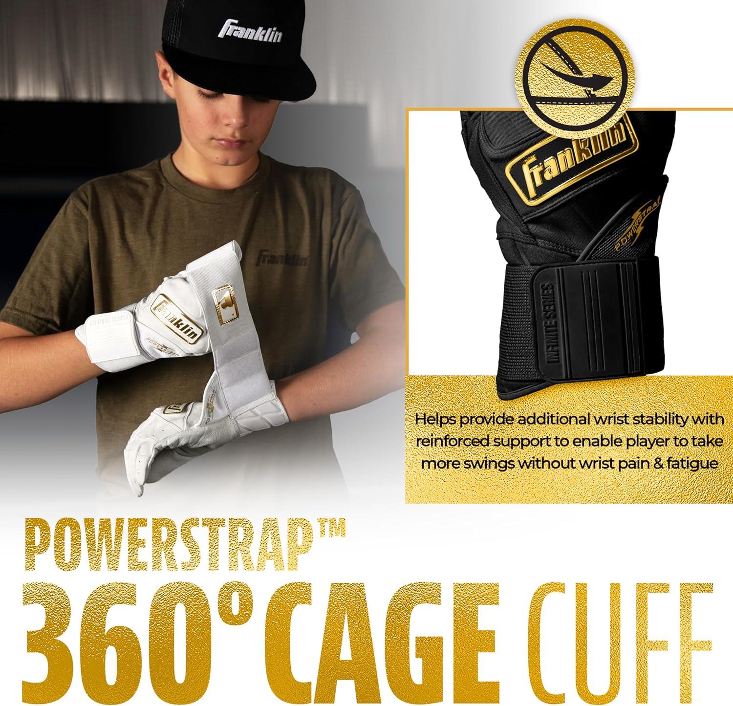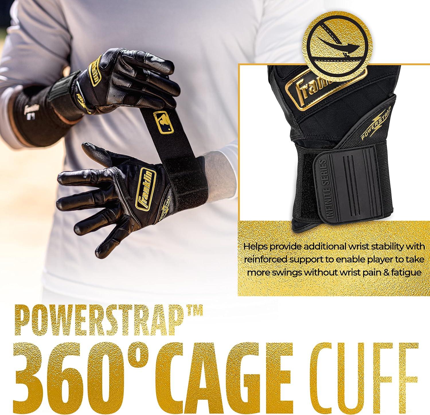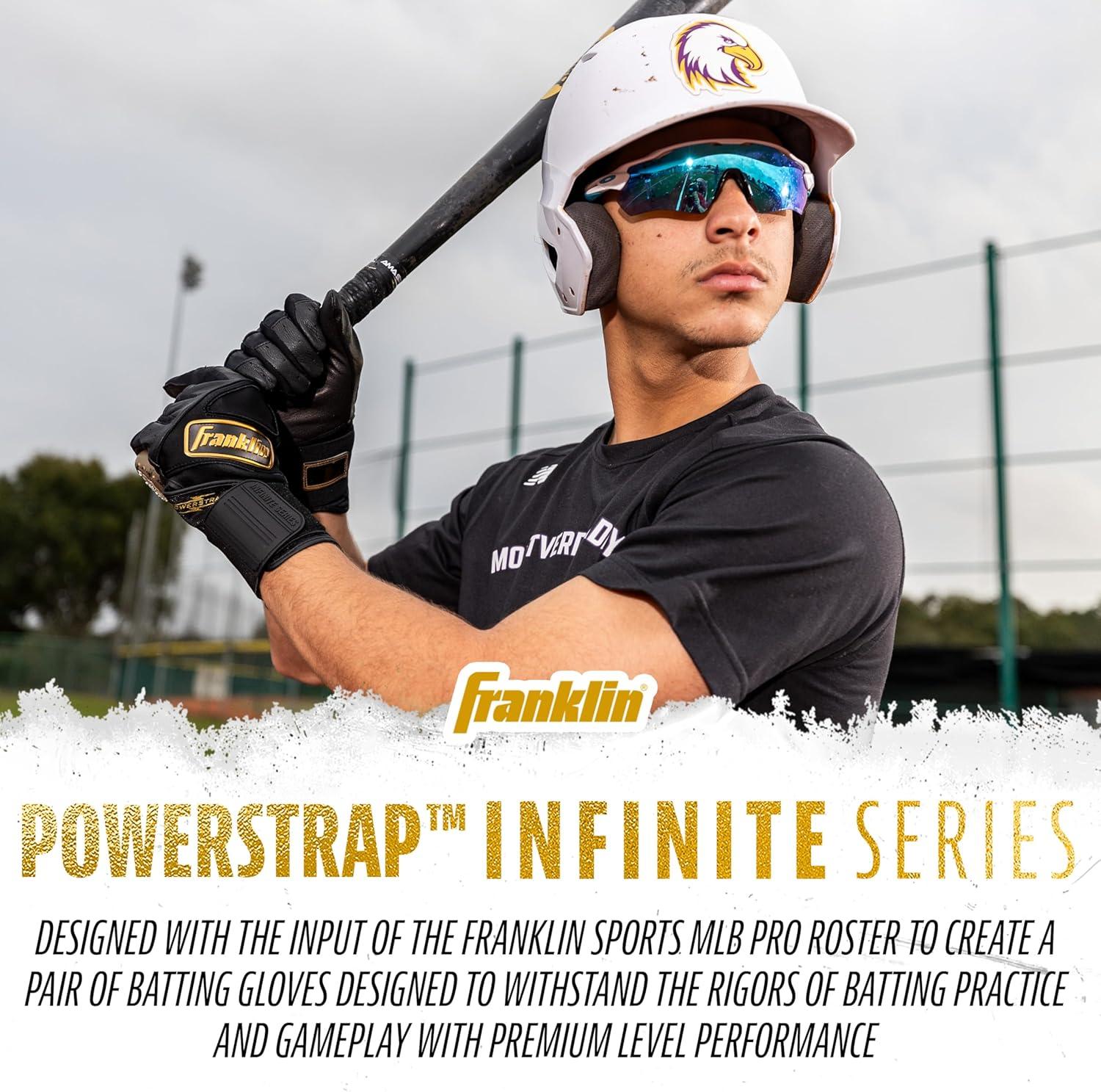 DESIGNED BY PROS: The Powerstrap Infinite batting gloves were designed with the input of the Franklin Sports MLB pro roster to create a pair of batting gloves designed to withstand the rigors of batting practice and gameplay with premium level performance