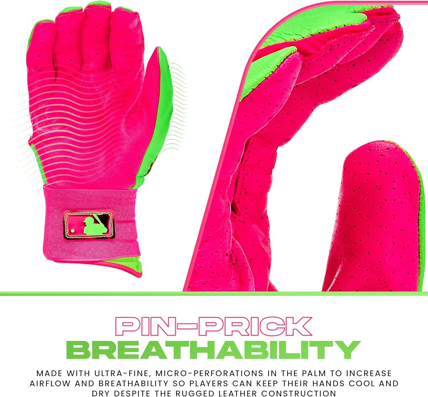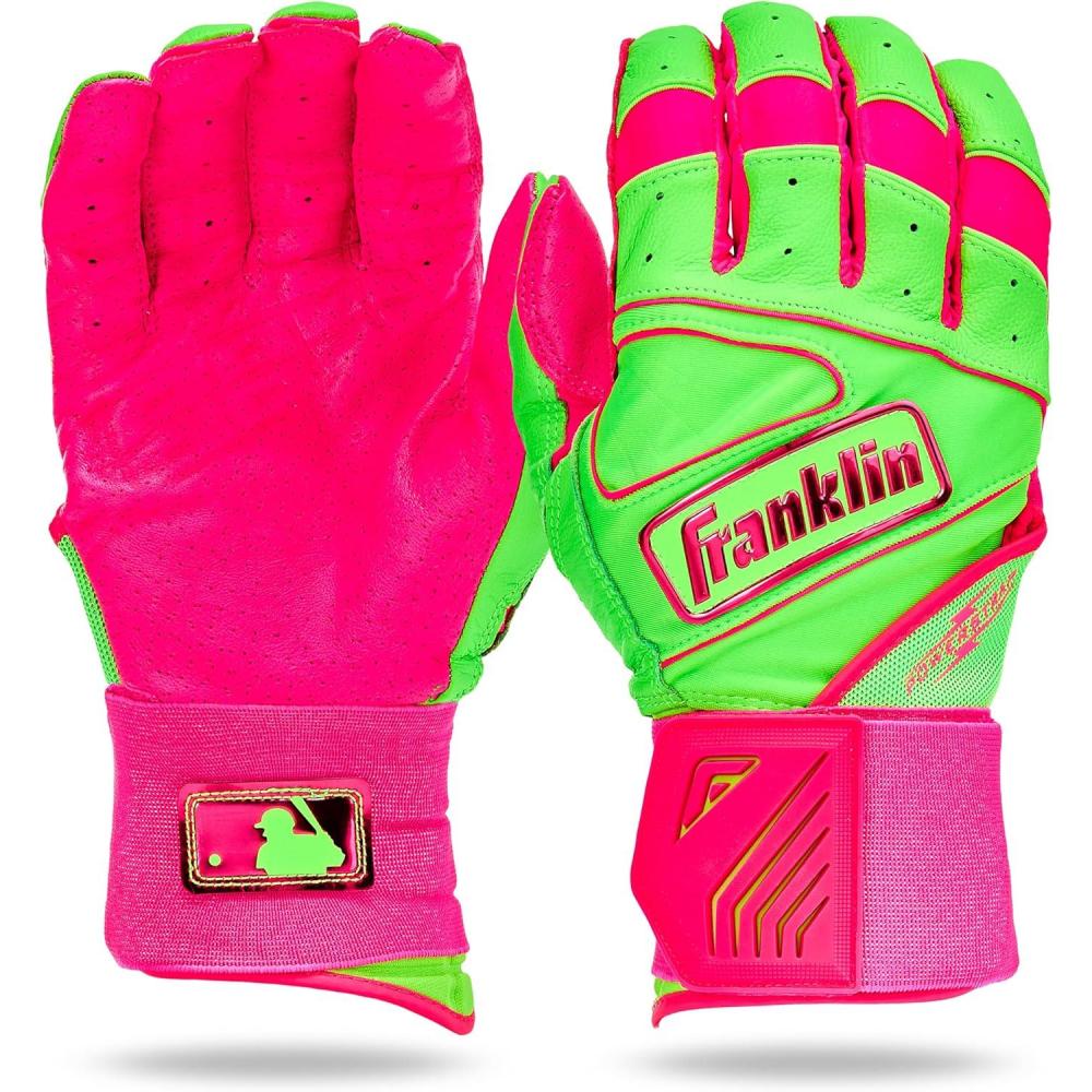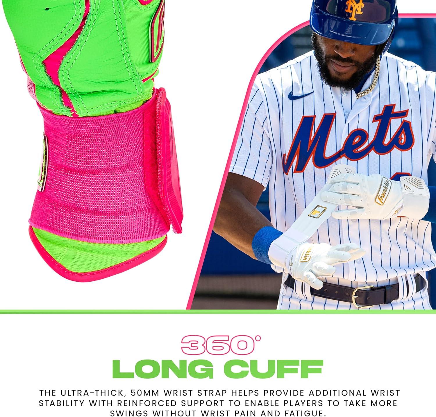 Franklin Sports MLB Batting Gloves – Infinite Powerstrap Baseball + Softball Long Cuff Batting Gloves – Adult + Youth(Pink/Apple Green)