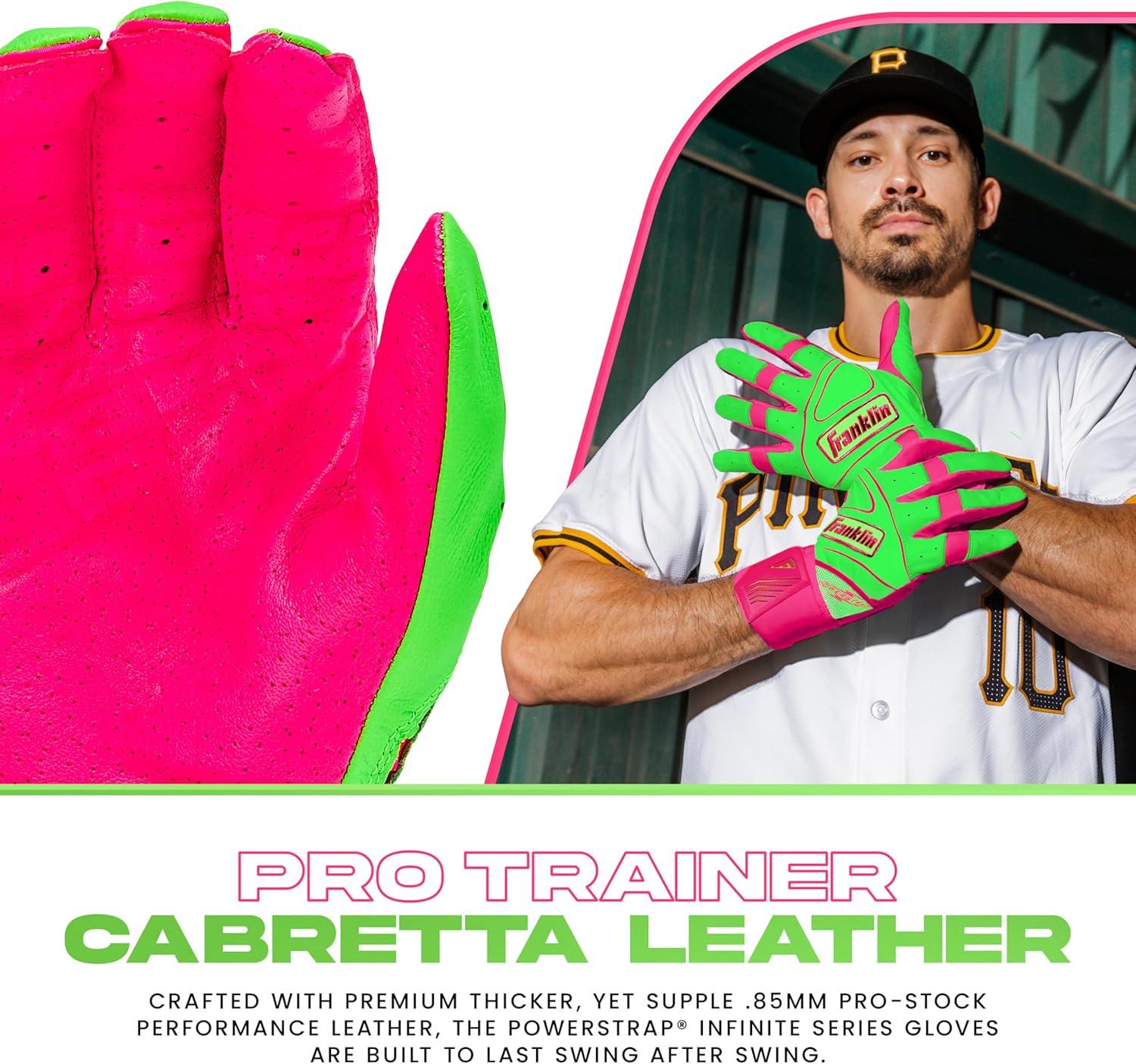 DESIGNED BY PROS: The Powerstrap Infinite batting gloves were designed with the input of the Franklin Sports MLB pro roster to create a pair of batting gloves designed to withstand the rigors of batting practice and gameplay with premium level performance