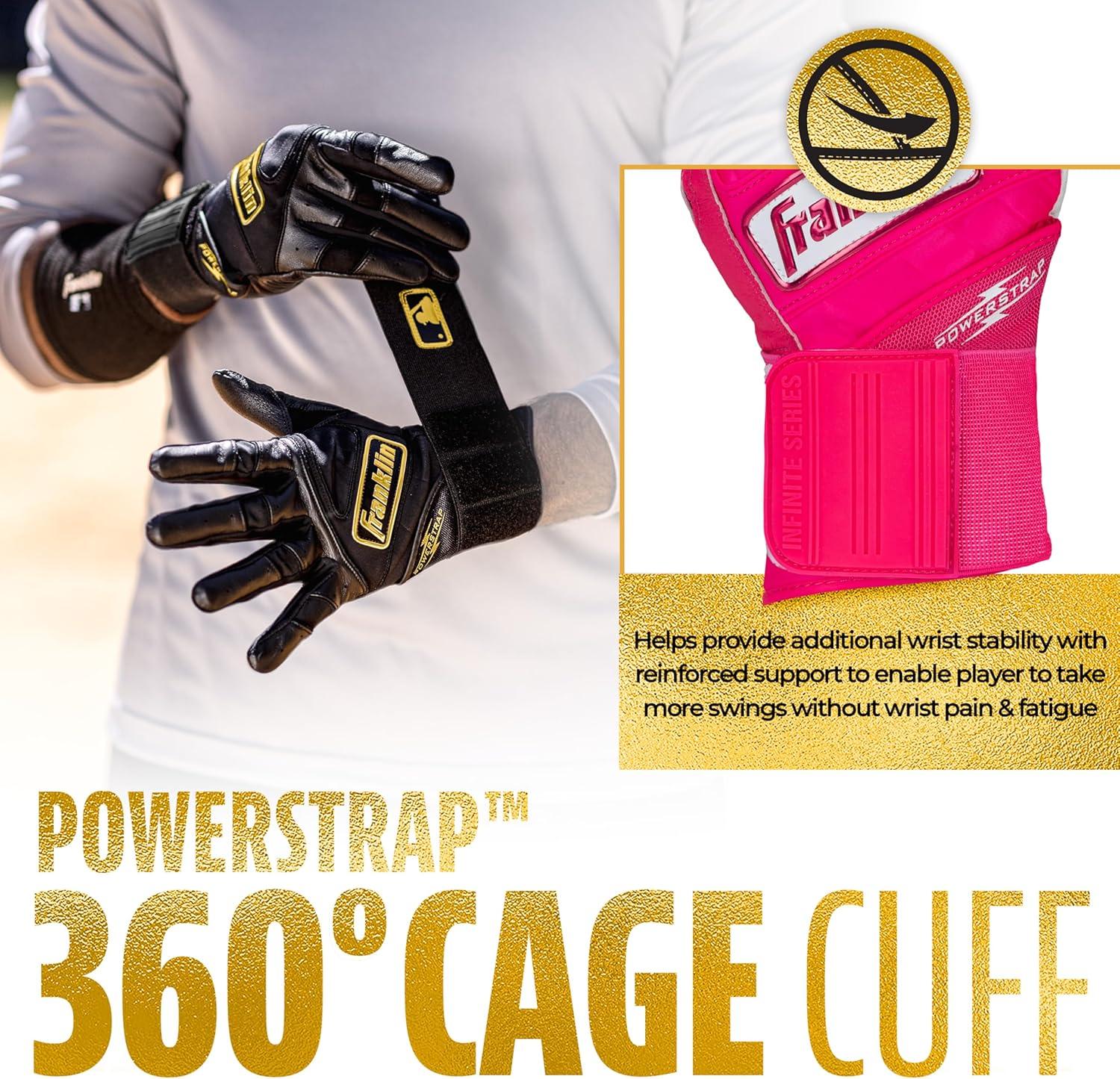 DESIGNED BY PROS: The Powerstrap Infinite batting gloves were designed with the input of the Franklin Sports MLB pro roster to create a pair of batting gloves designed to withstand the rigors of batting practice and gameplay with premium level performance