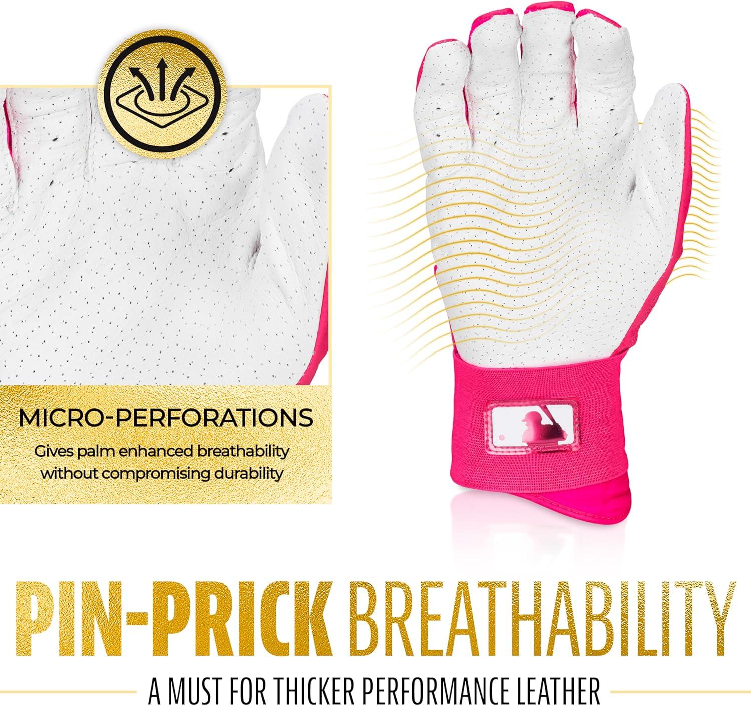 Franklin Sports MLB Batting Gloves – Infinite Powerstrap Baseball + Softball Long Cuff Batting Gloves – Adult + Youth(Pink Hi-Lite)