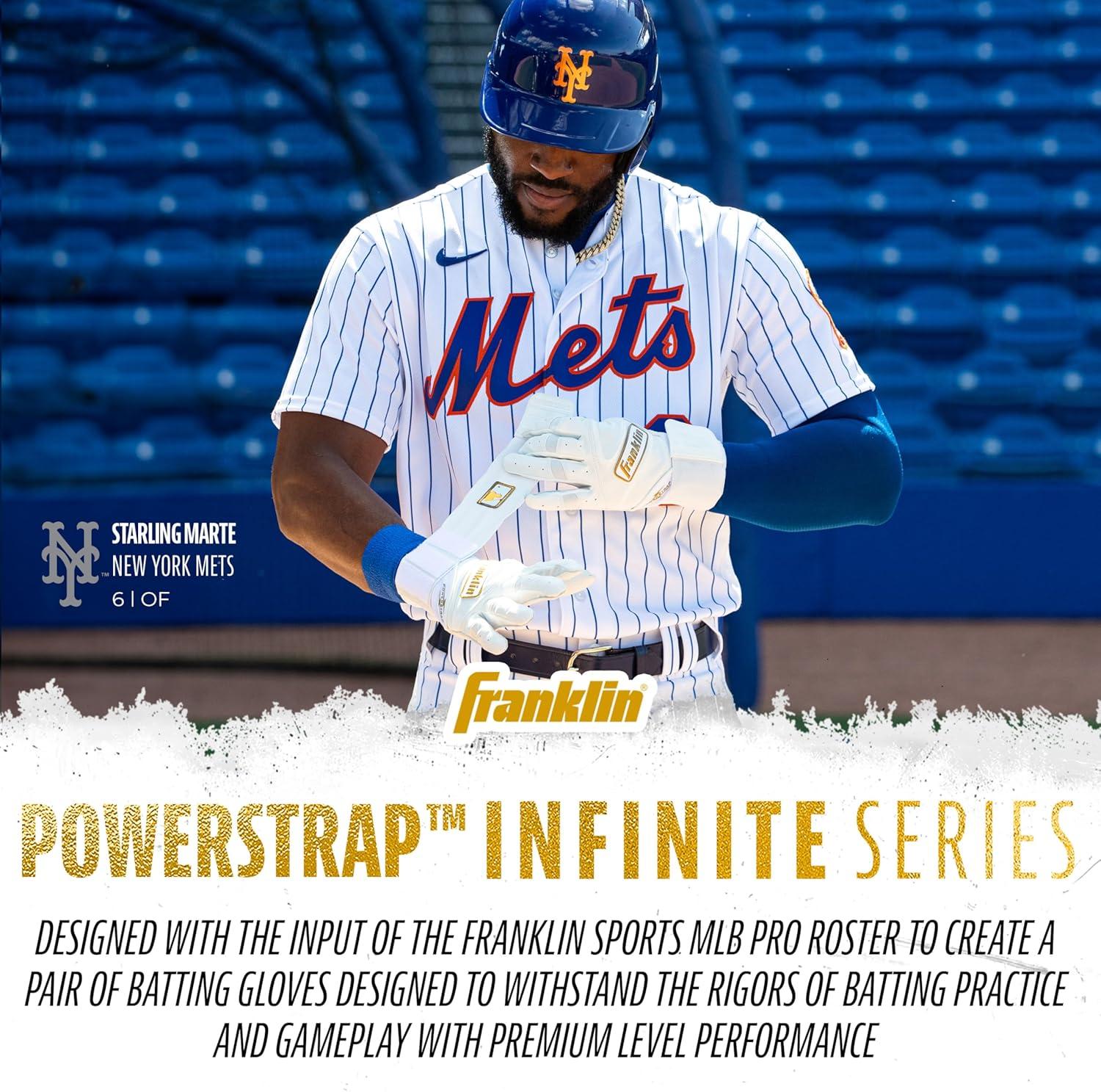 DESIGNED BY PROS: The Powerstrap Infinite batting gloves were designed with the input of the Franklin Sports MLB pro roster to create a pair of batting gloves designed to withstand the rigors of batting practice and gameplay with premium level performance