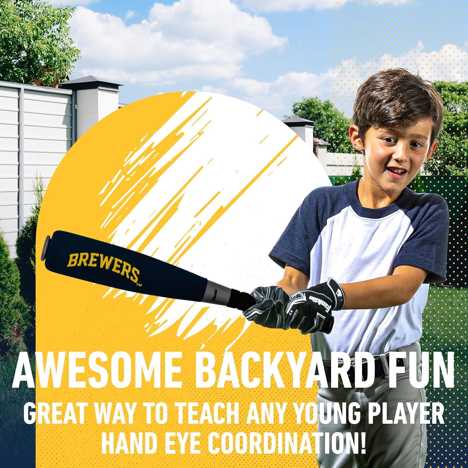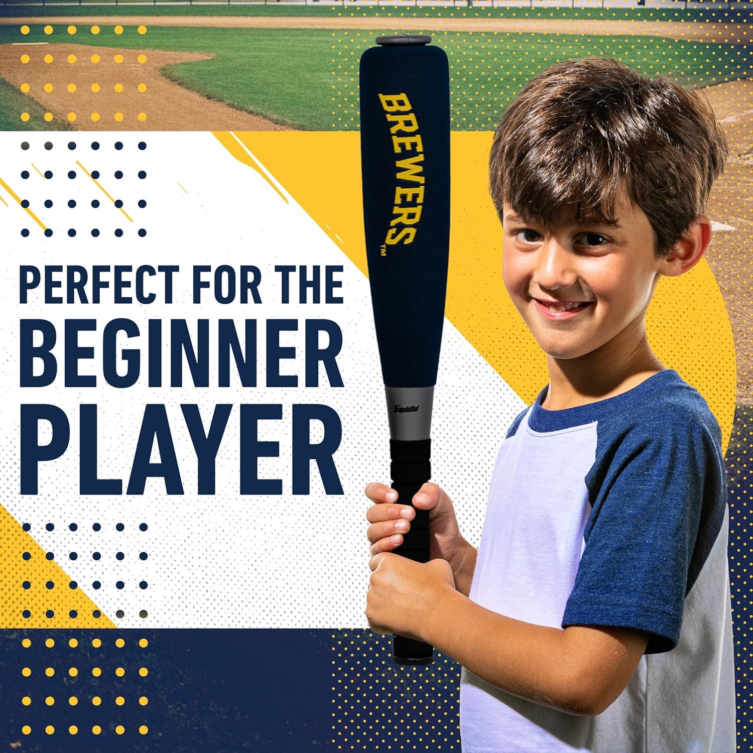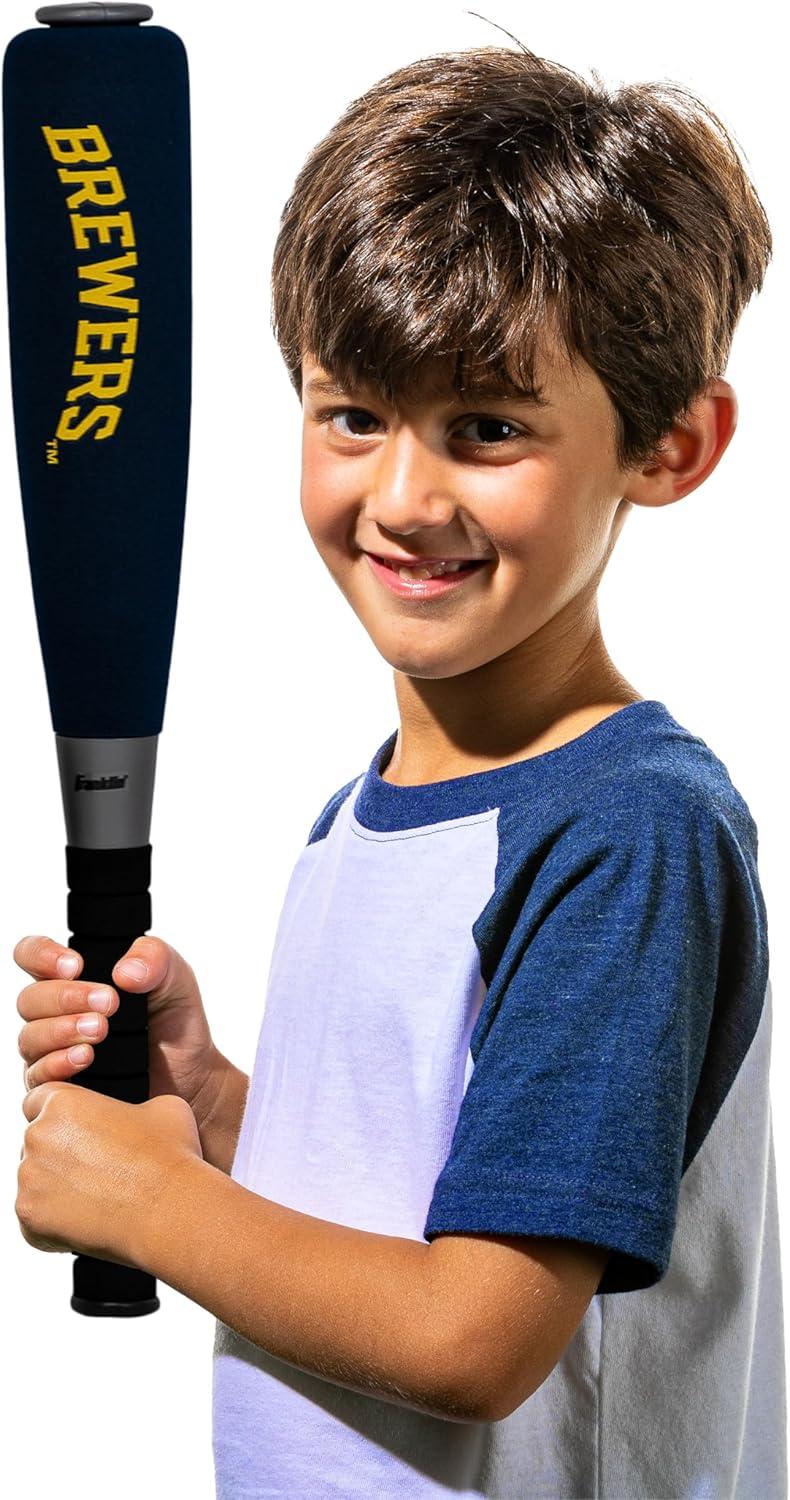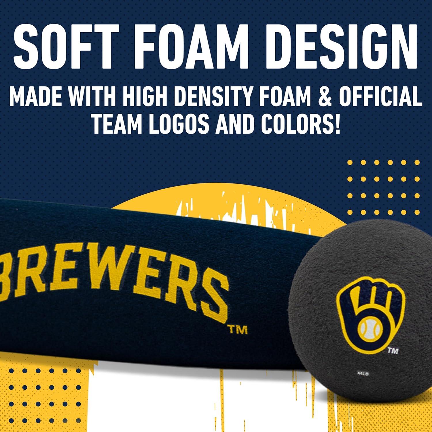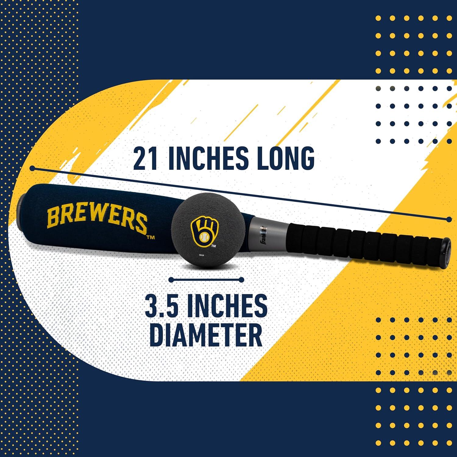 Franklin Sports MLB Jumbo Foam Baseball Bat + Ball Sets – Kids Oversize Foam Baseball Bats + Soft Baseballs – Indoor + Outdoor Youth Baseball Toy – MLB Team Baseball Bat + Ball Sets(Milwaukee Brewers)