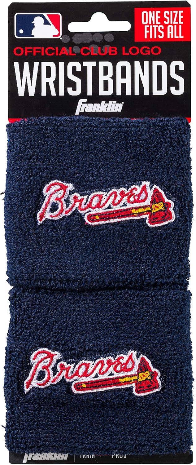 Franklin Sports MLB Team Licensed Baseball Wristbands – MLB Team Logo Sweat Wristbands – Great for Costumes + Uniforms – Pair(Atlanta Braves)