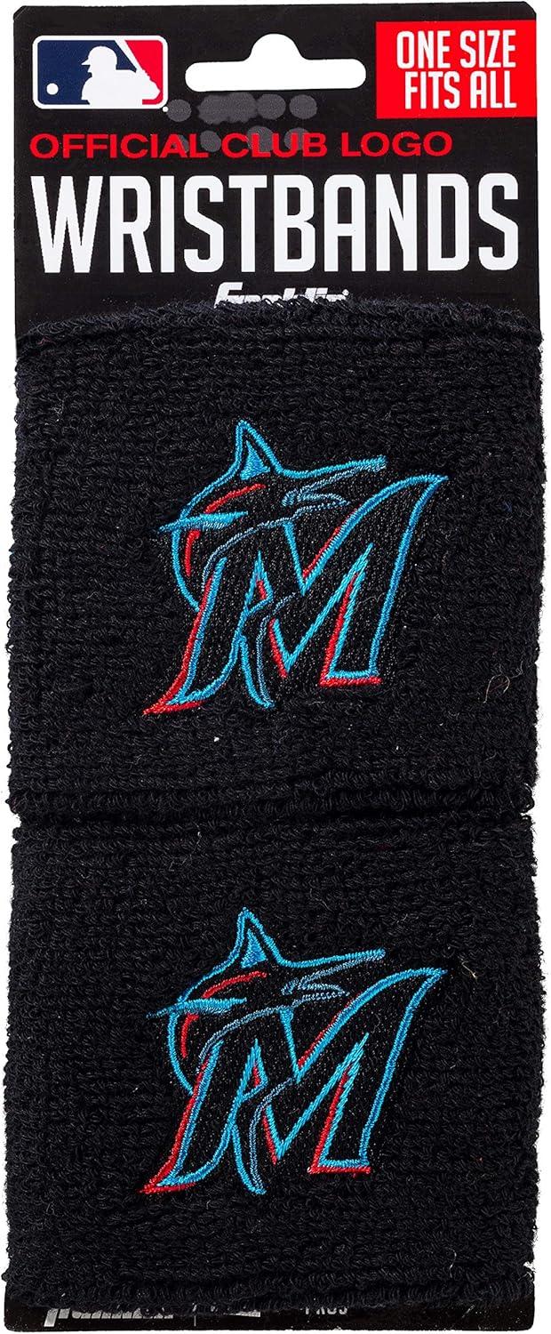 Franklin Sports MLB Team Licensed Baseball Wristbands – MLB Team Logo Sweat Wristbands – Great for Costumes + Uniforms – Pair(Miami Marlins)