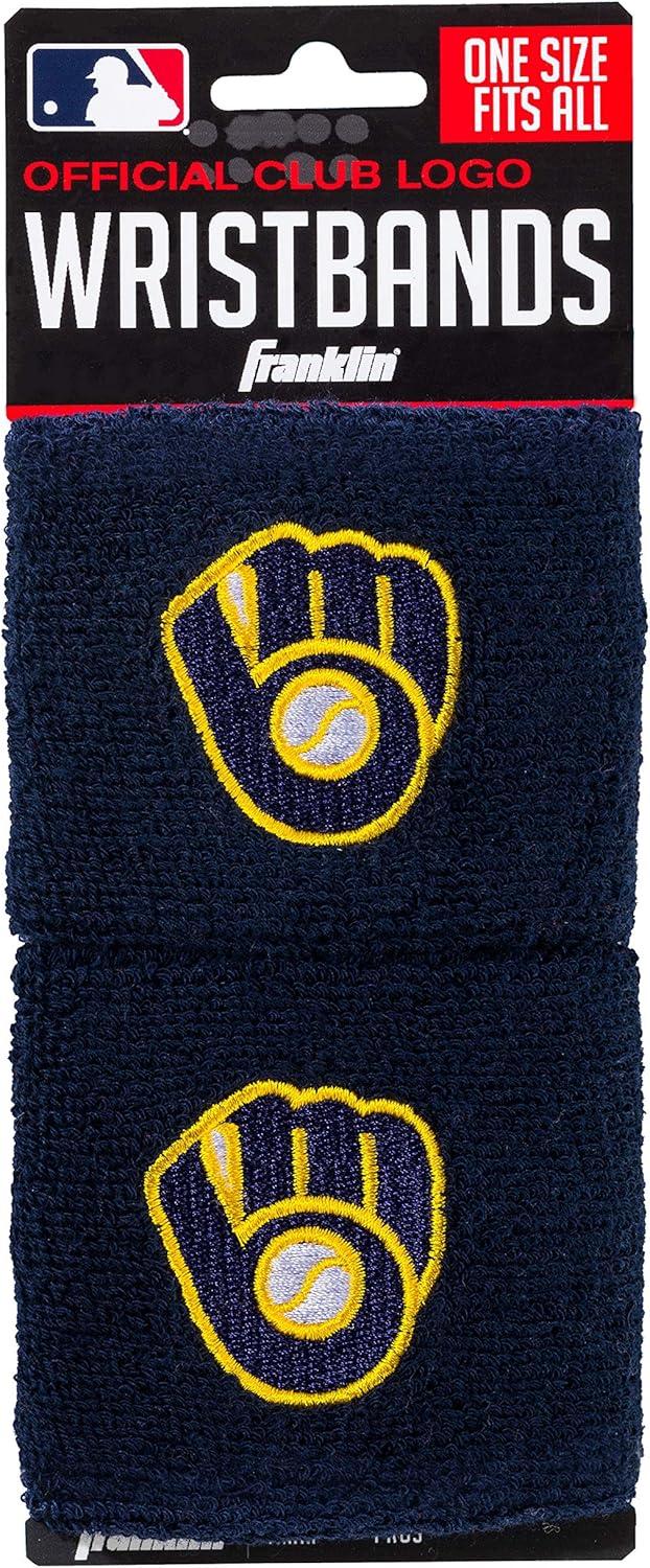 Franklin Sports MLB Team Licensed Baseball Wristbands – MLB Team Logo Sweat Wristbands – Great for Costumes + Uniforms – Pair(Milwaukee Brewers)