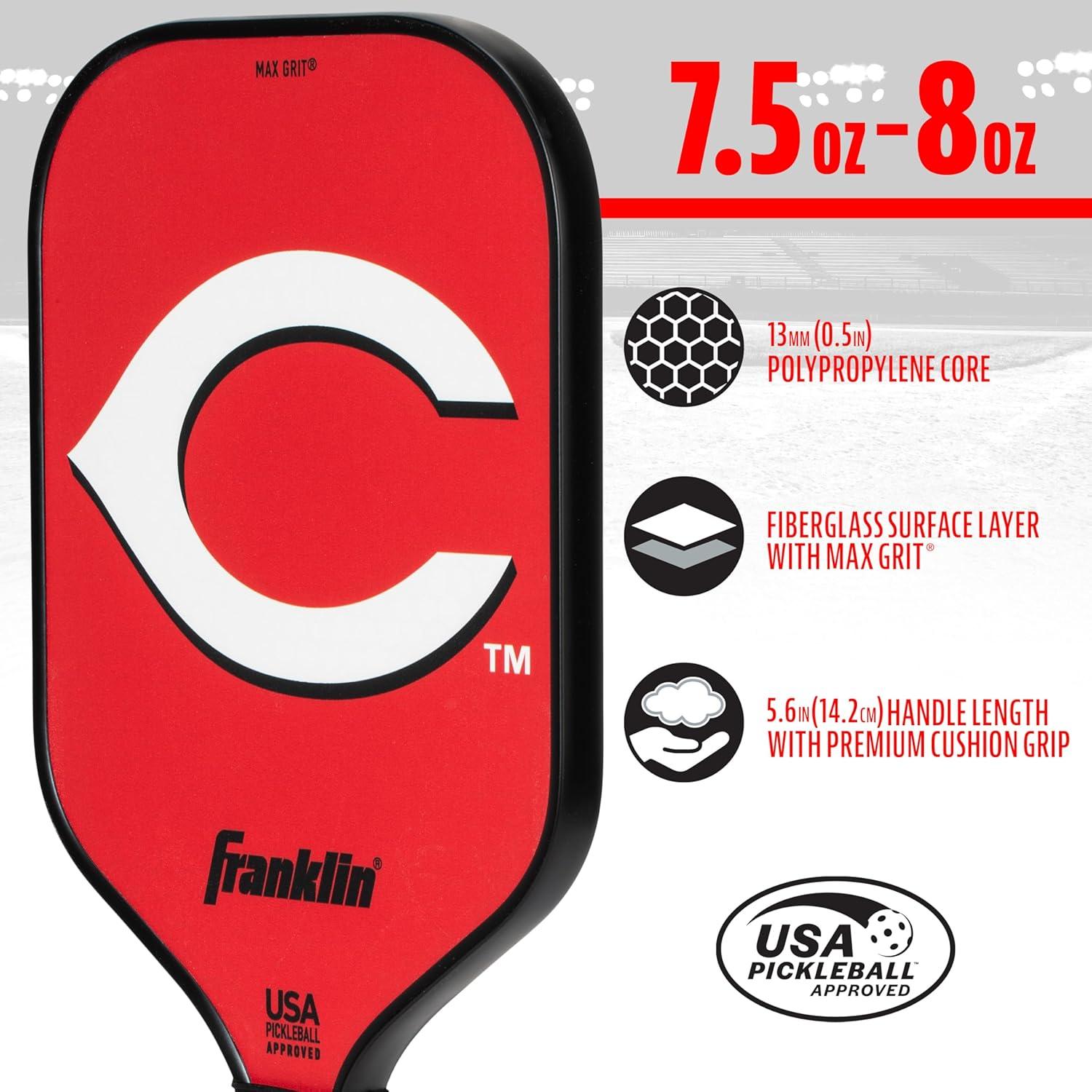 Franklin Sports MLB Team Pickleball Paddles – Official MLB Baseball Team Logo + Colors Pickleball Paddles – Signature Series 13MM Pickleball Paddle with MaxGrit – USA Pickleball (USAPA) Approved(Cincinnati Reds)
