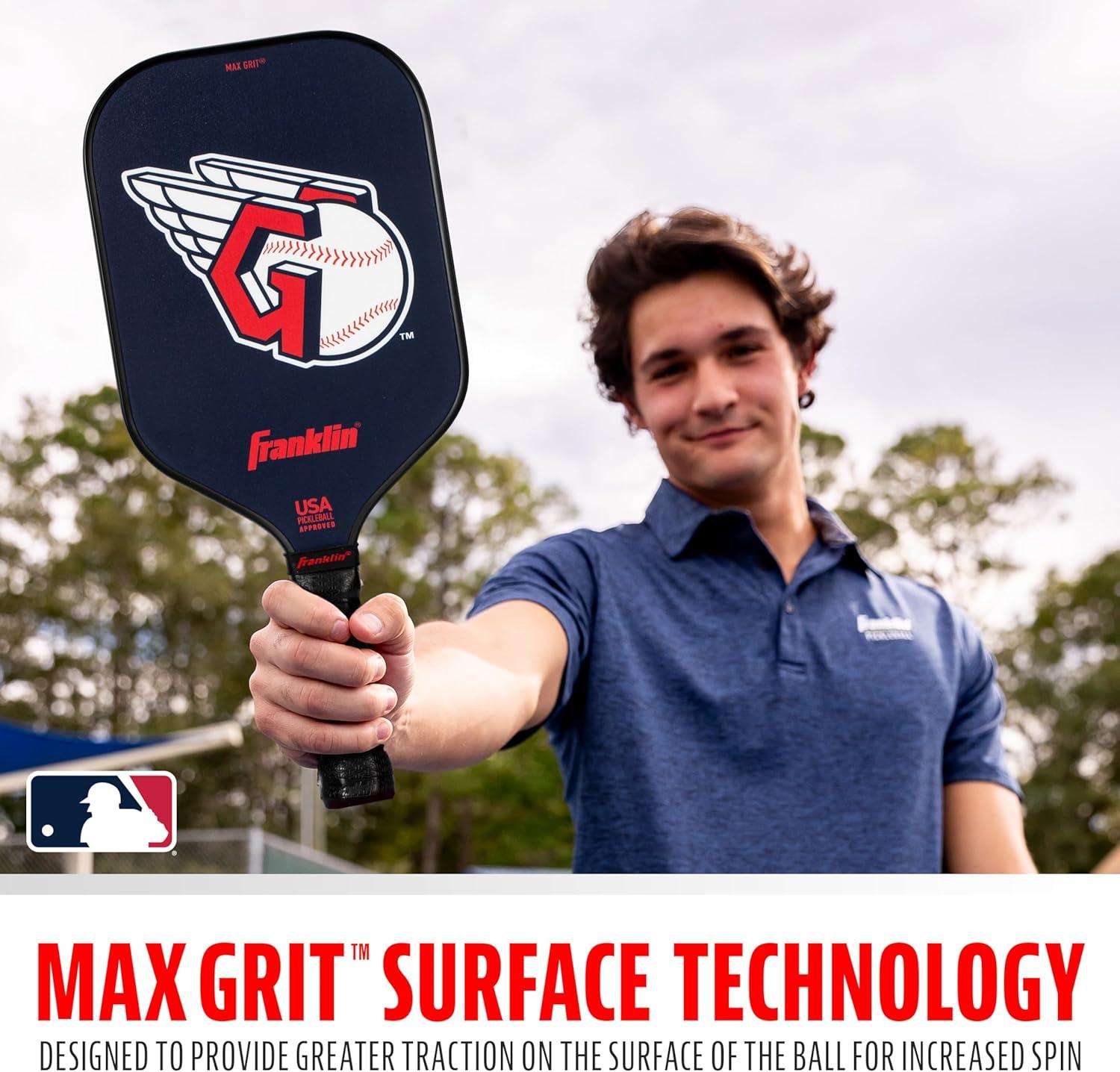 Franklin Sports MLB Team Pickleball Paddles – Official MLB Baseball Team Logo + Colors Pickleball Paddles – Signature Series 13MM Pickleball Paddle with MaxGrit – USA Pickleball (USAPA) Approved(Cleveland Guardians)