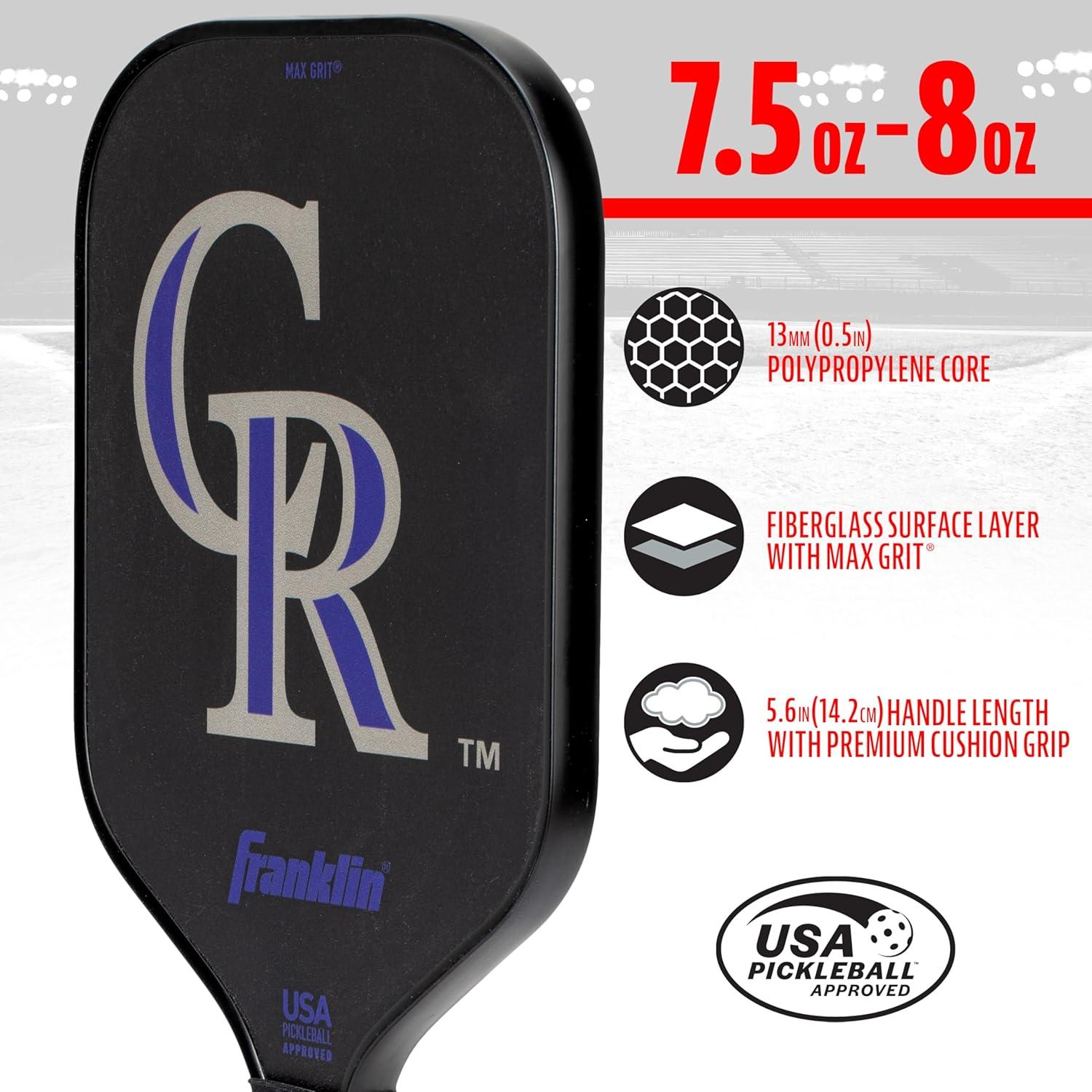 Franklin Sports MLB Team Pickleball Paddles – Official MLB Baseball Team Logo + Colors Pickleball Paddles – Signature Series 13MM Pickleball Paddle with MaxGrit – USA Pickleball (USAPA) Approved(Colorado Rockies)