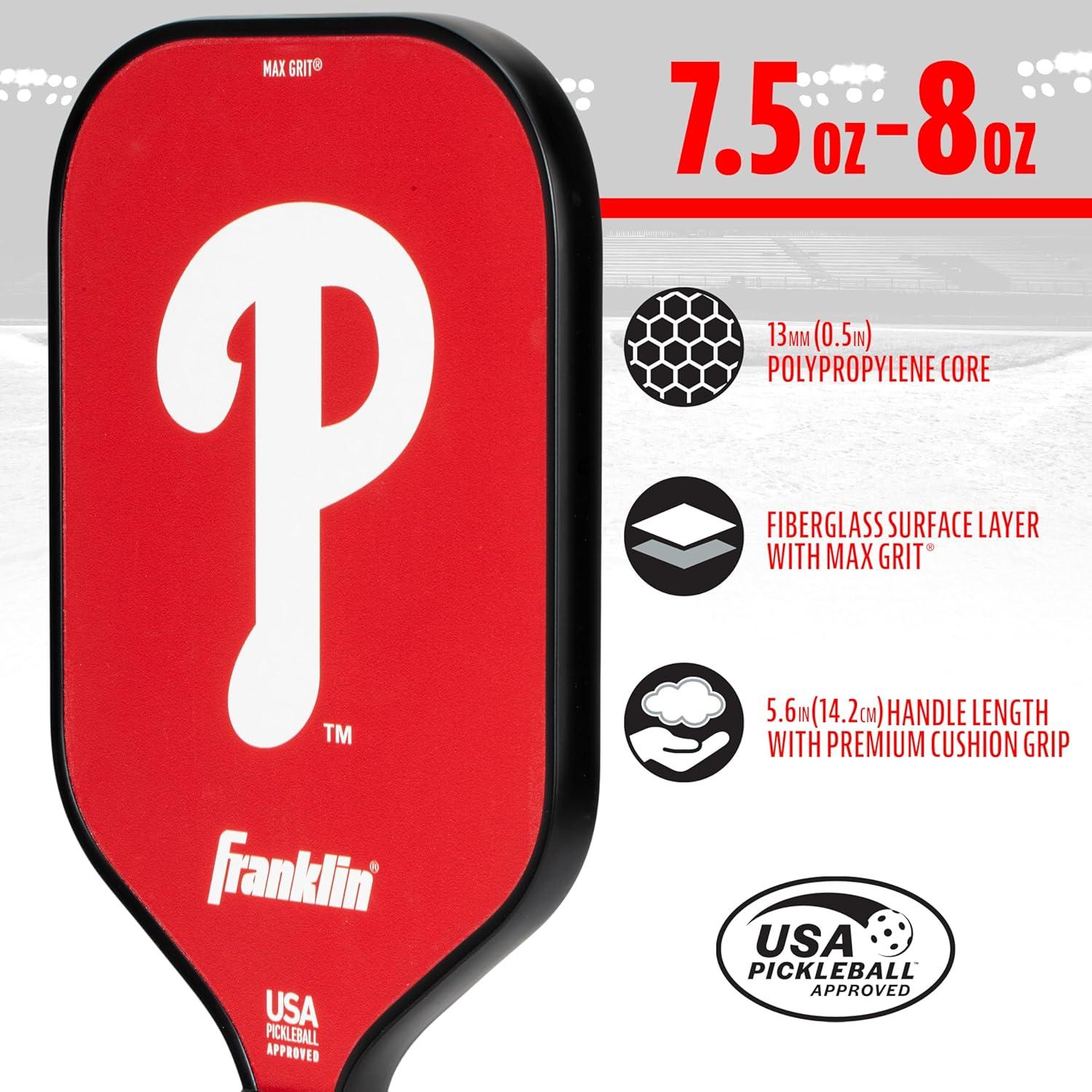 Franklin Sports MLB Team Pickleball Paddles – Official MLB Baseball Team Logo + Colors Pickleball Paddles – Signature Series 13MM Pickleball Paddle with MaxGrit – USA Pickleball (USAPA) Approved(Philadelphia Phillies)