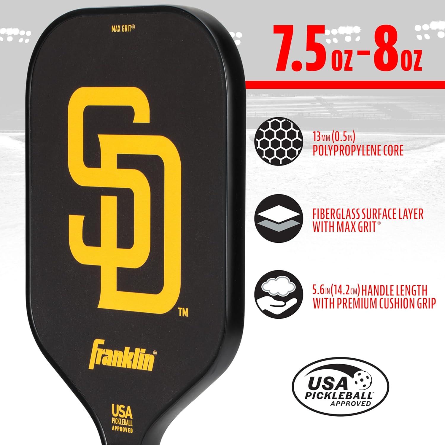 Franklin Sports MLB Team Pickleball Paddles – Official MLB Baseball Team Logo + Colors Pickleball Paddles – Signature Series 13MM Pickleball Paddle with MaxGrit – USA Pickleball (USAPA) Approved(San Diego Padres)